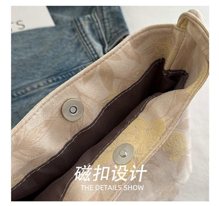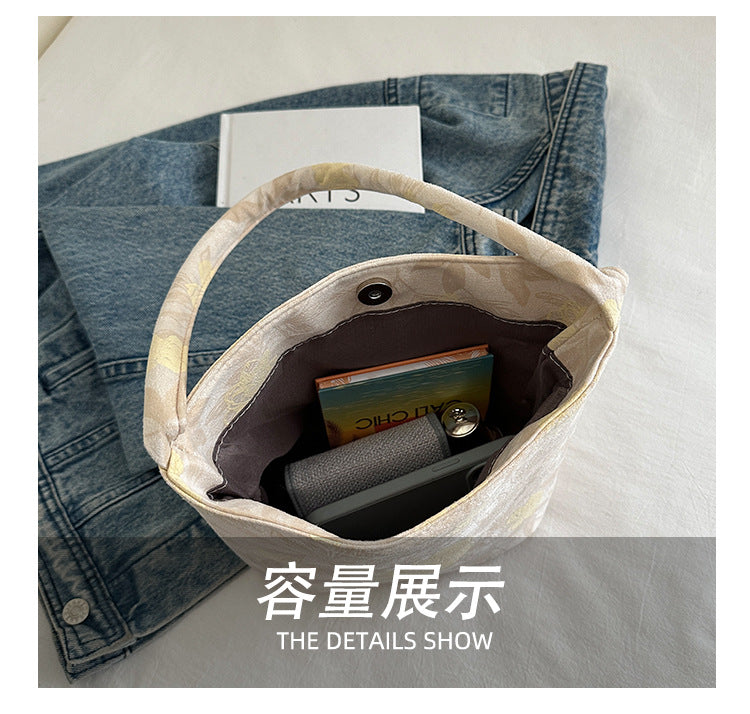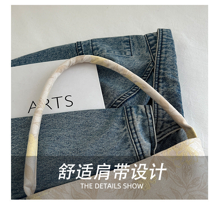 Lady's New Chinese Style Starlight Dream Tote Bag Black Shoulder Bag Embroidered Flower Vintage Handbag