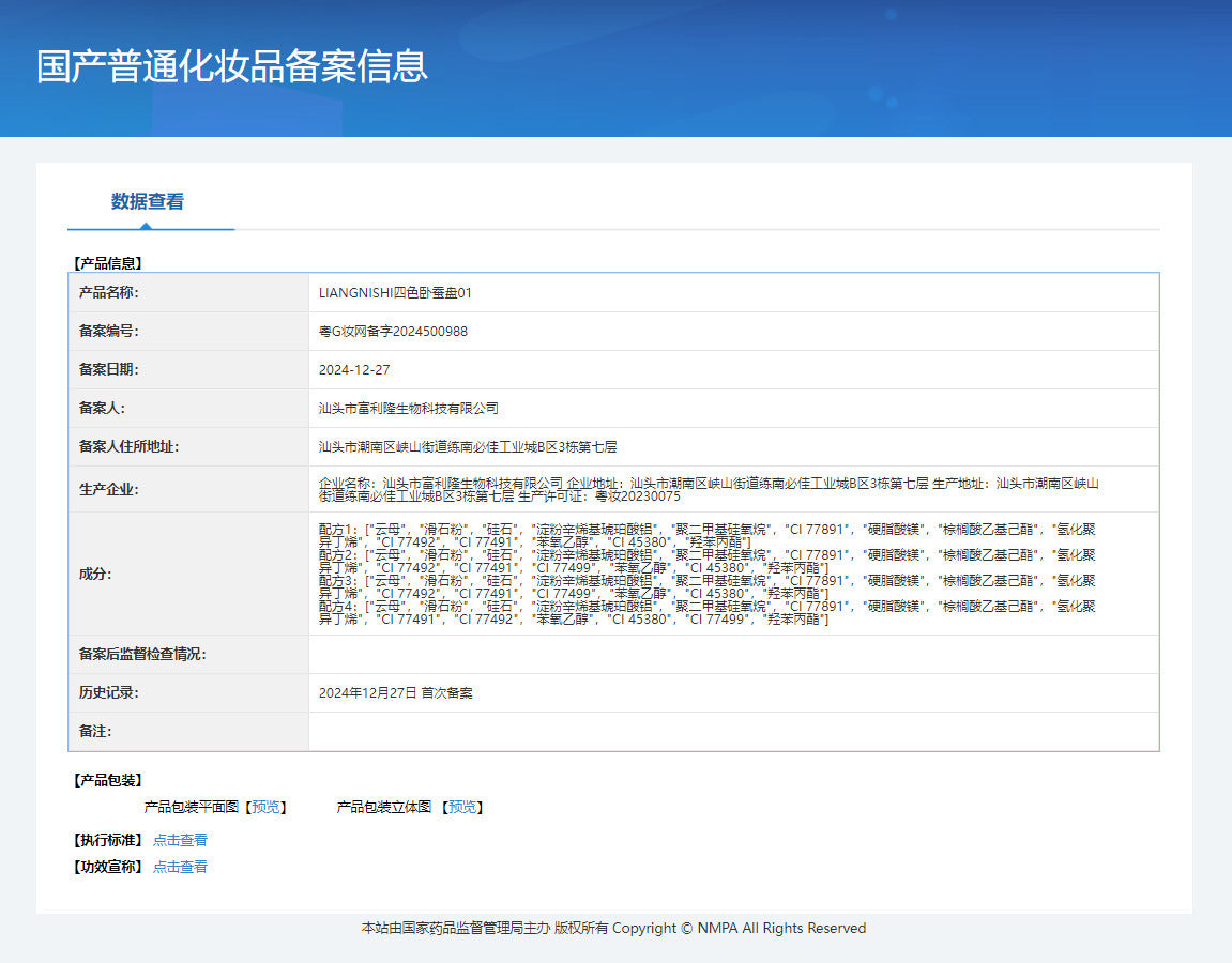 Liangni Shi Four-Color Eyeshadow Palette for Brightening, Pearlescent Glitter, Contouring, and Eyeliner Rouge2437