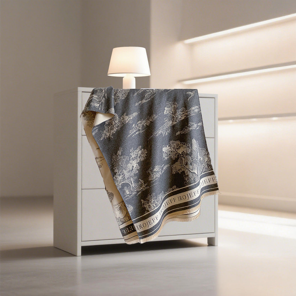 Light Luxury Style Imitation Cashmere Jacquard Shawl for Women Winter Warm Double-Sided Printed Landscape Scarf Outerwear Layering Neck Warmer