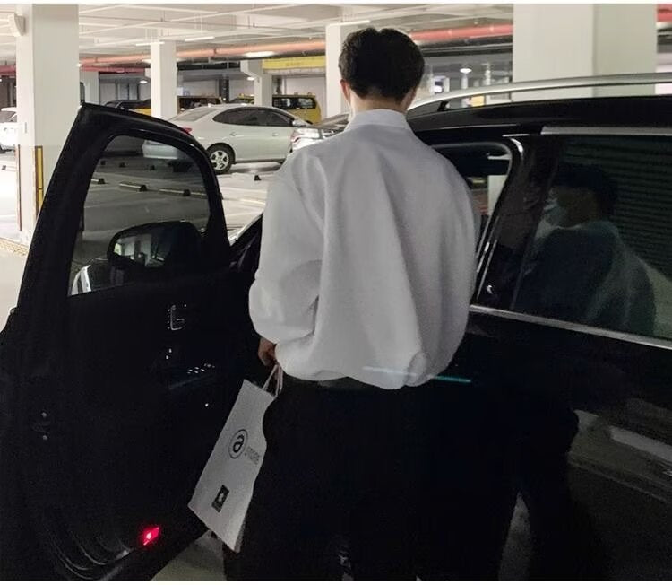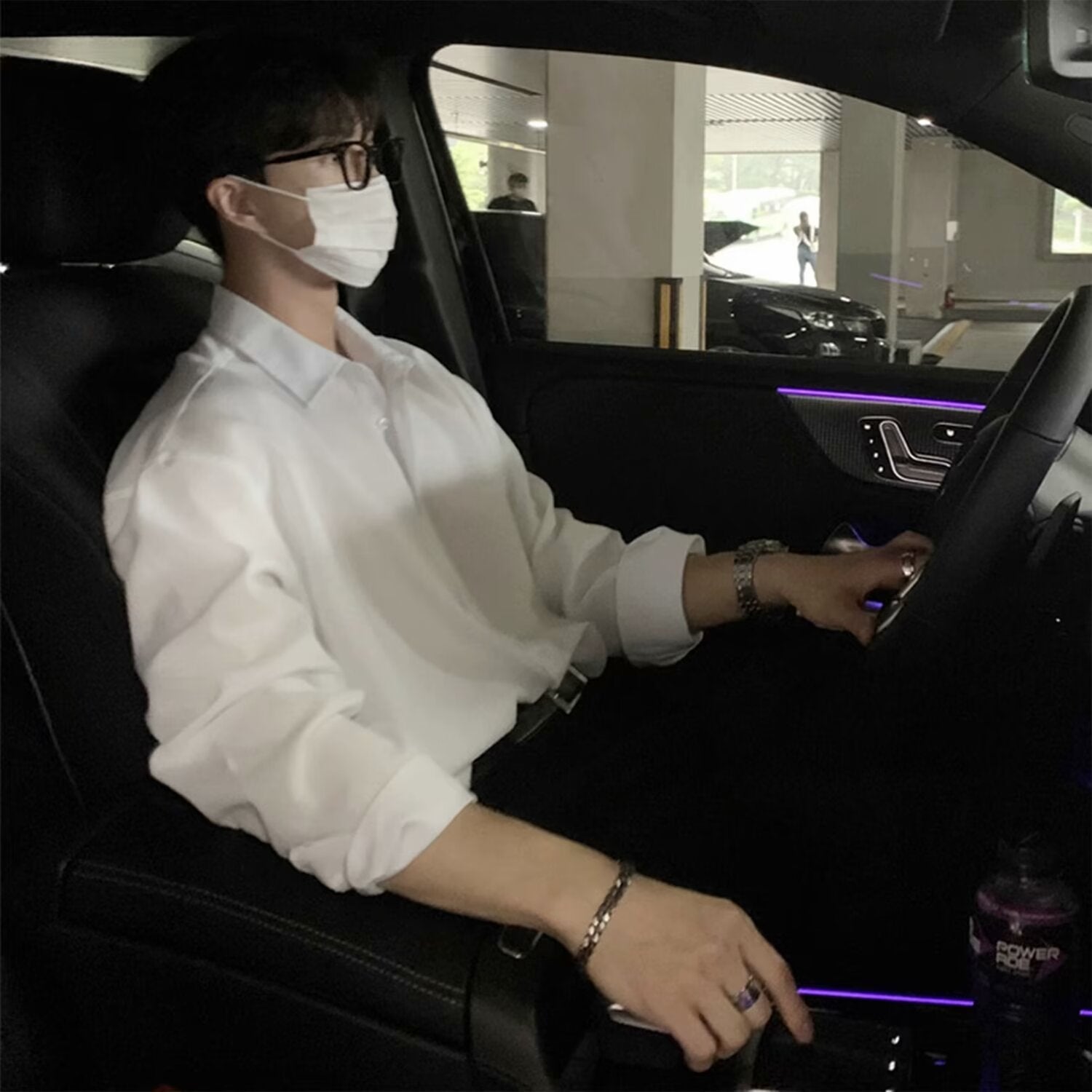 Light Mature High-End Feel Non-Iron Solid White Shirt Men's Draped Korean Style Loose Plus Size Casual Long Sleeve Base Shirt