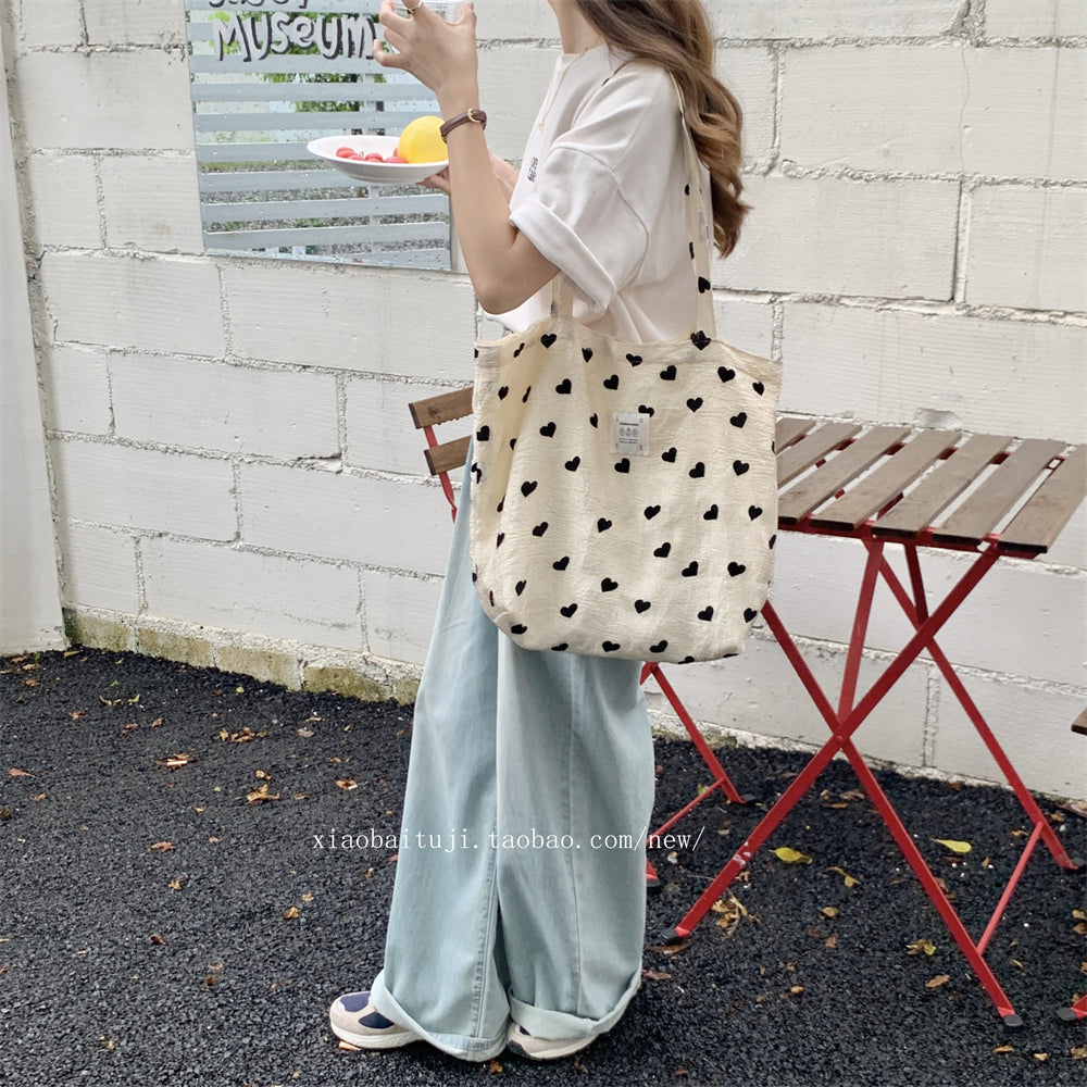 Little White Rabbit Desk New Textured Heart Canvas Single Shoulder Vest Bag Large Capacity Handbag for Women Underarm Small Win Shuo