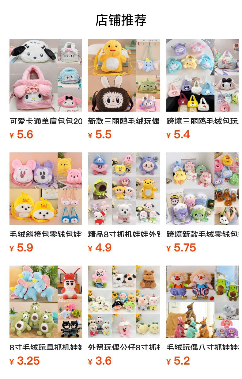 Manufacturer Wholesale Plush Handbag81-inch Claw Machine Doll Cartoon Cute Plush Toy 8inch Claw Machine Toy