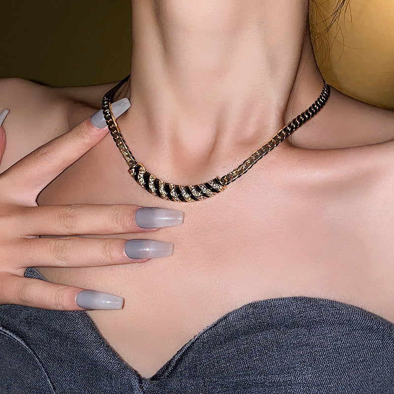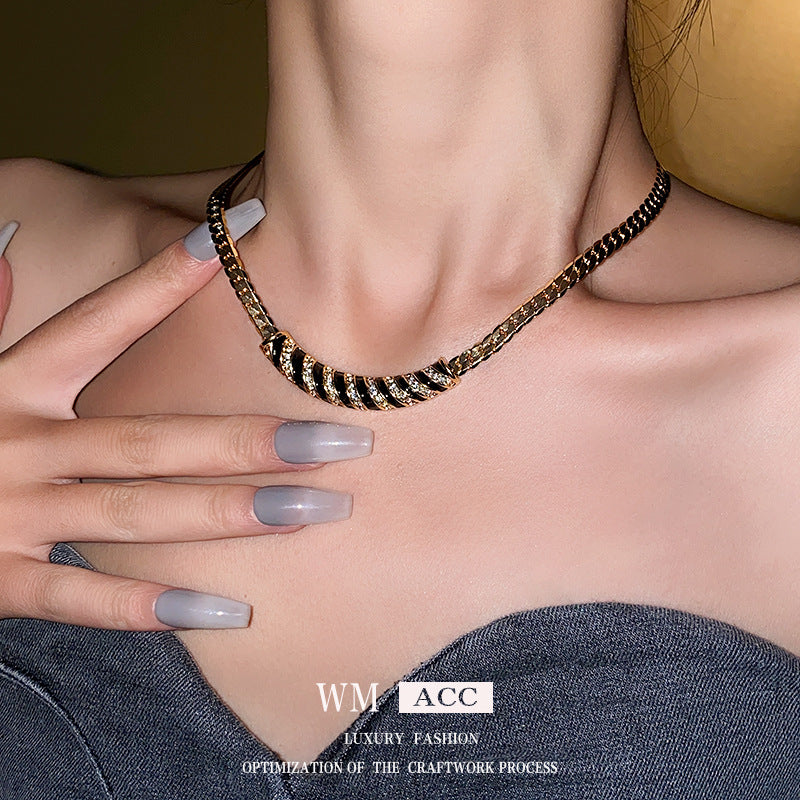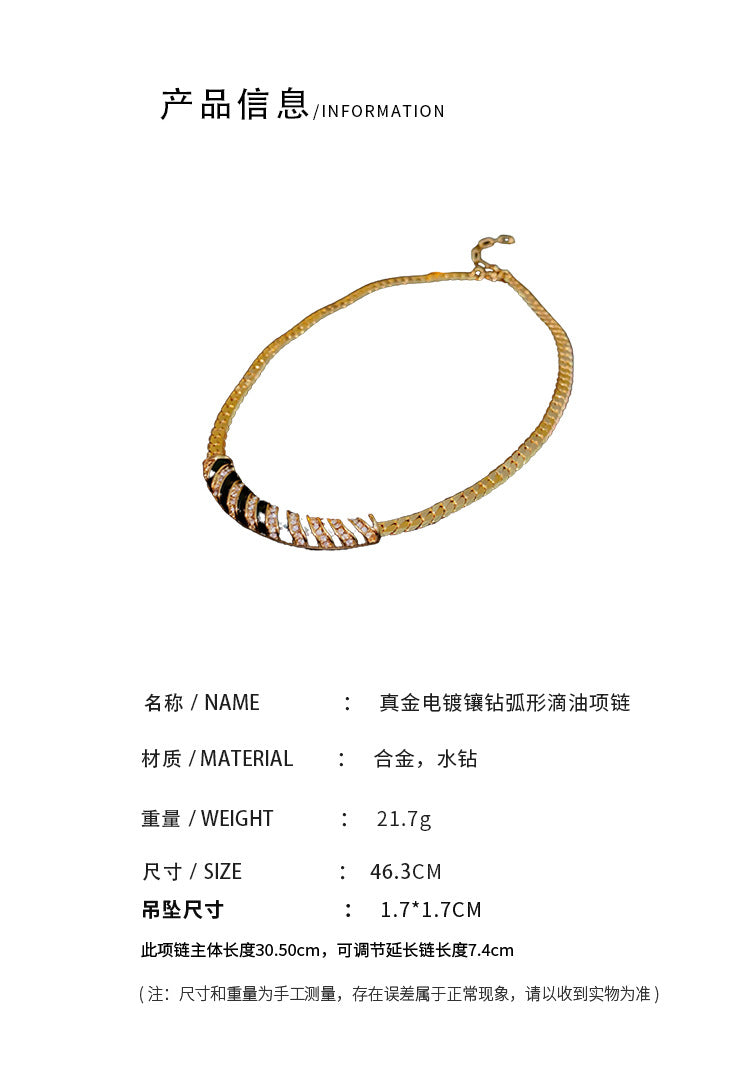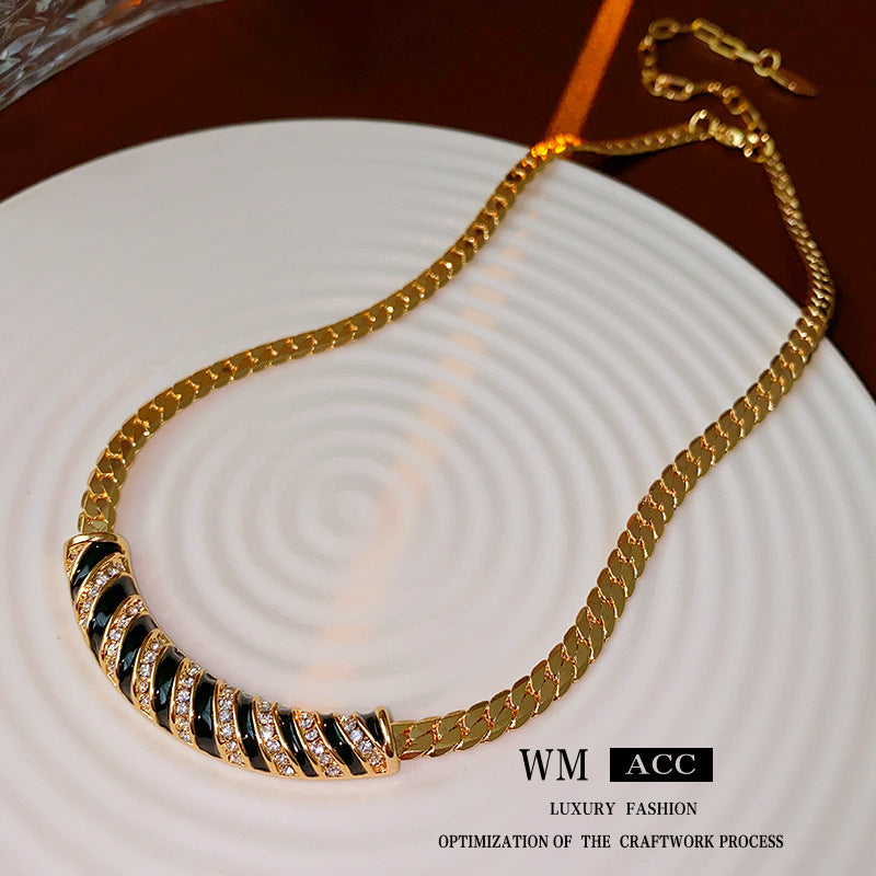Medieval vintage Necklace Real Gold Plated Diamond-Studded Curved Oil Drop Collarbone Chain Light Luxury High-End Necklace Wholesale