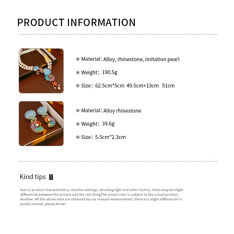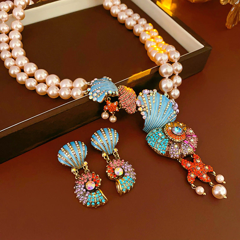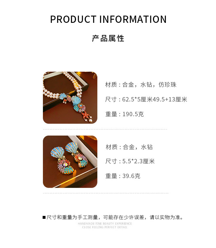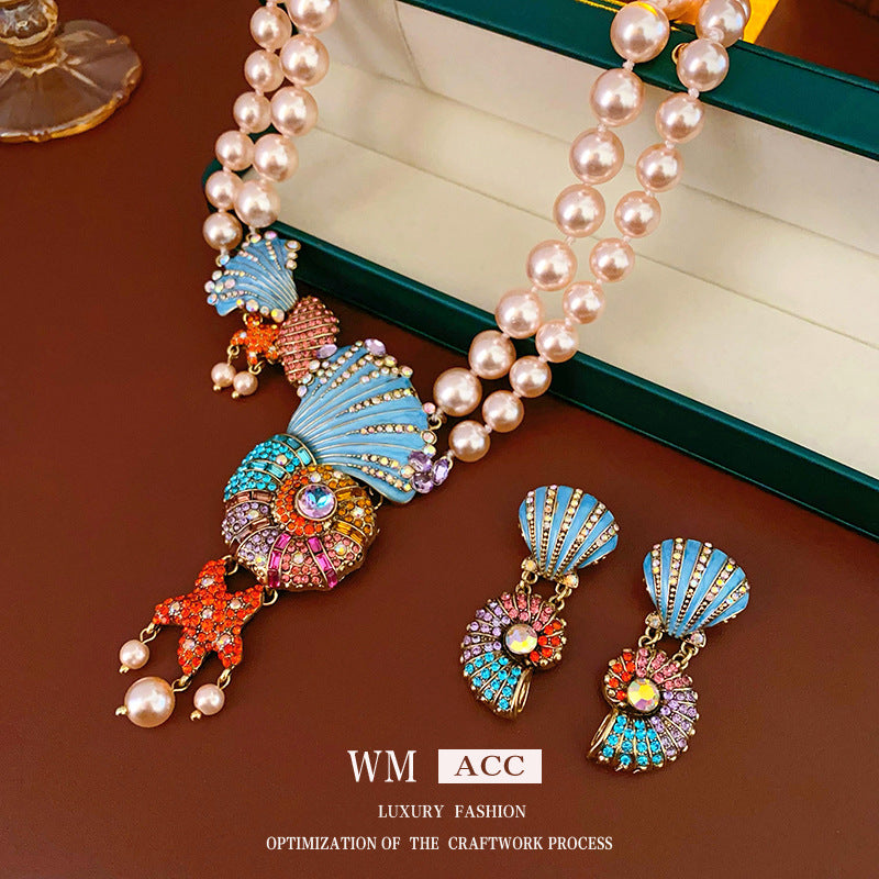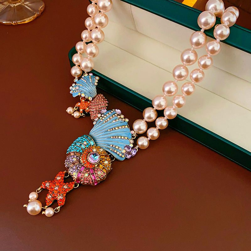 Medieval vintage Necklace with Inlaid Diamonds, Oil Drop Shell Conch Pearl Necklace, Exaggerated Vintage Jewelry Manufacturer Wholesale