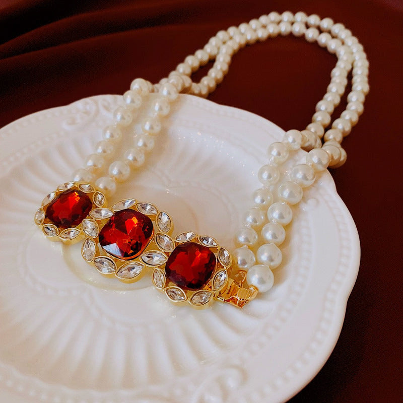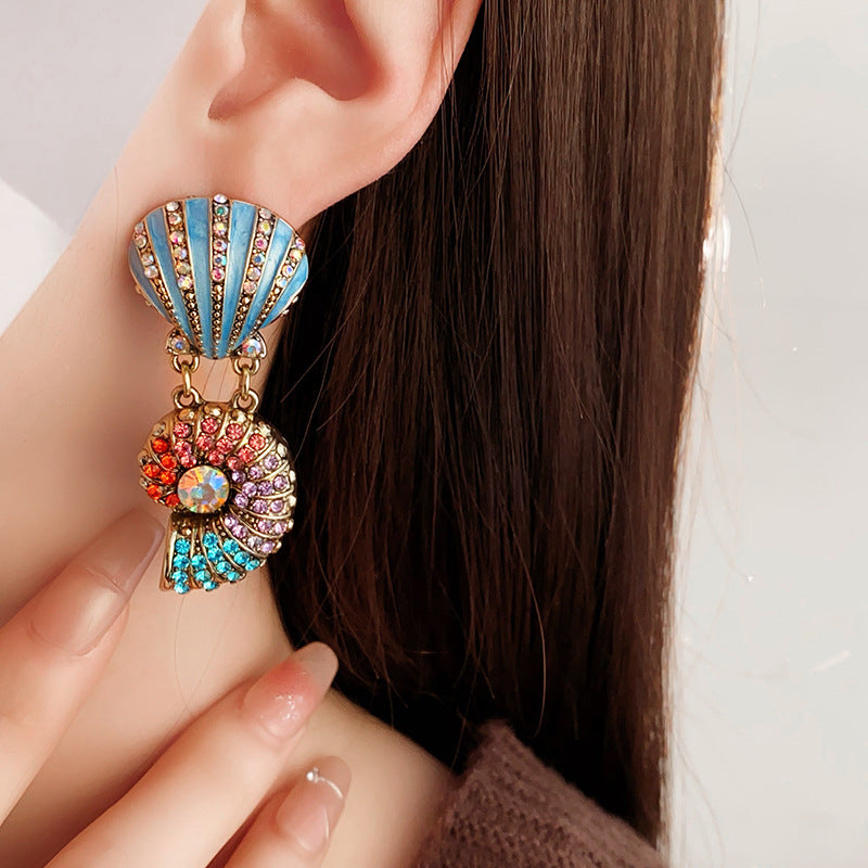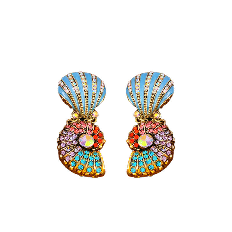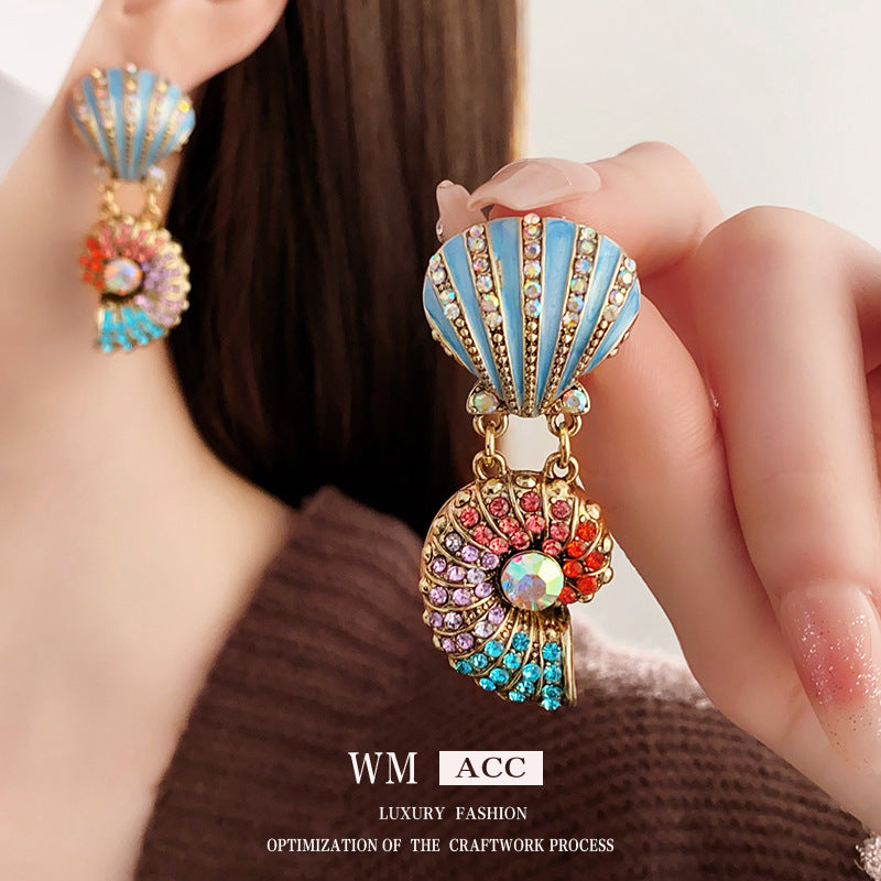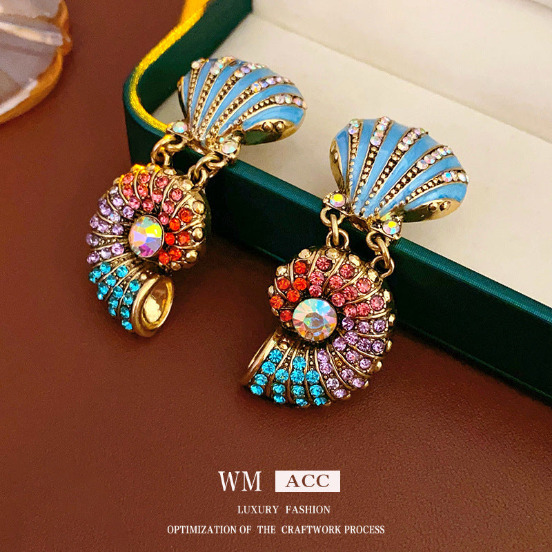 Medieval vintage Necklace with Inlaid Diamonds, Oil Drop Shell Conch Pearl Necklace, Exaggerated Vintage Jewelry Manufacturer Wholesale