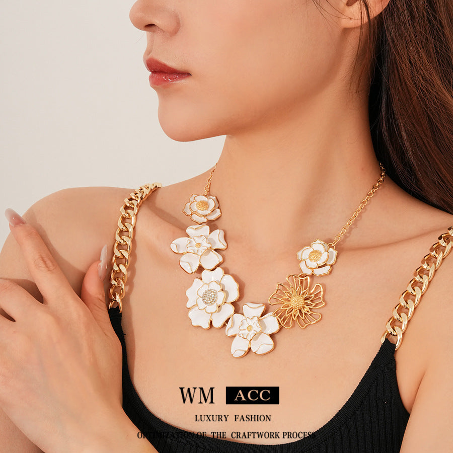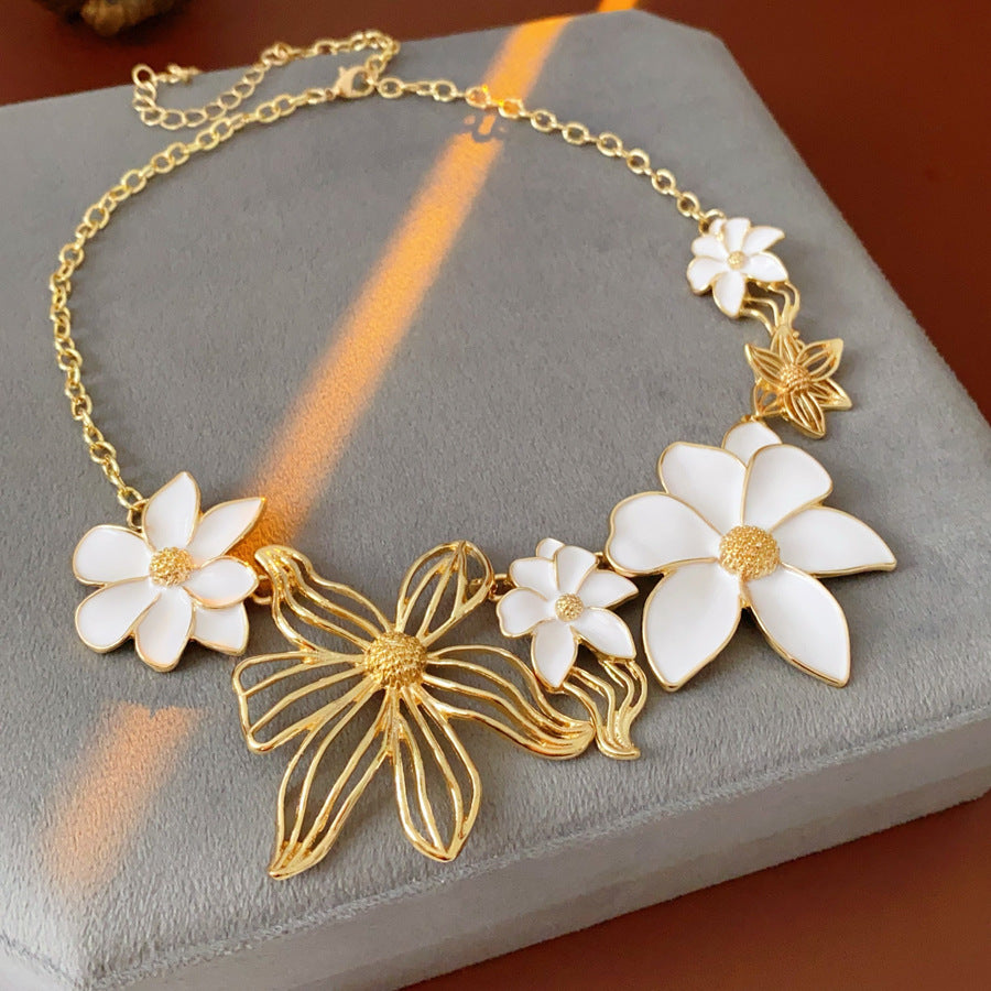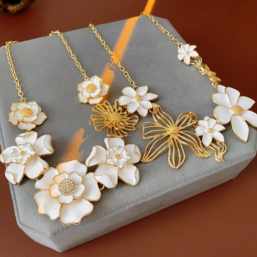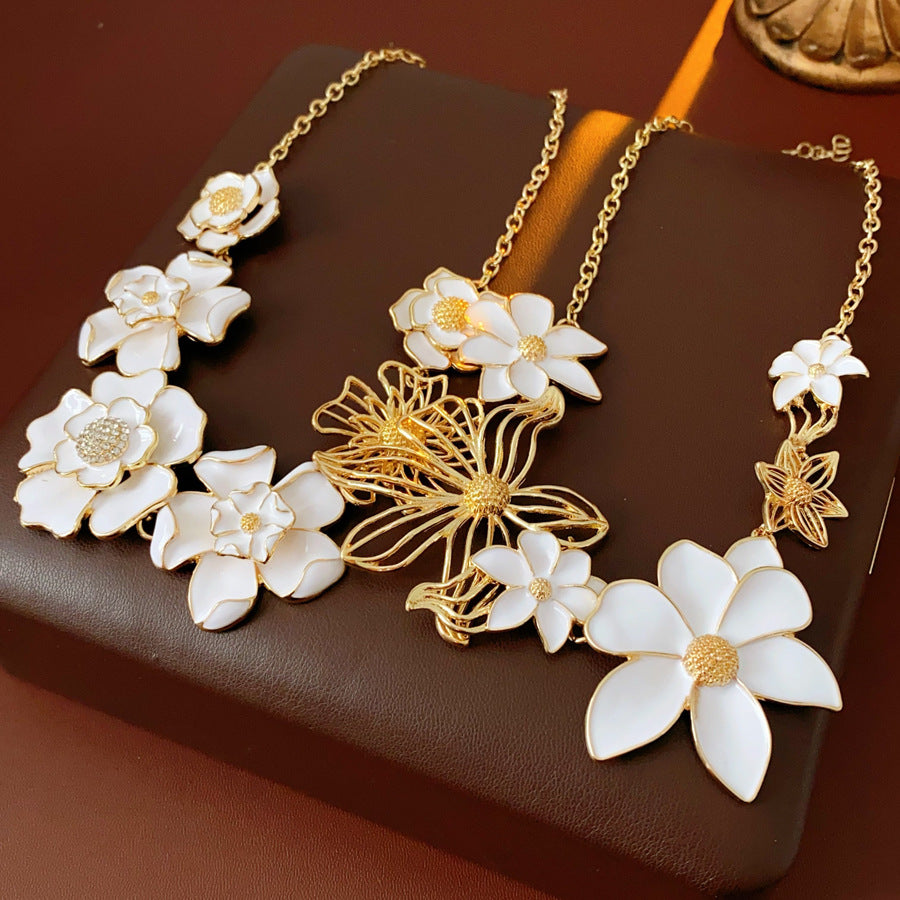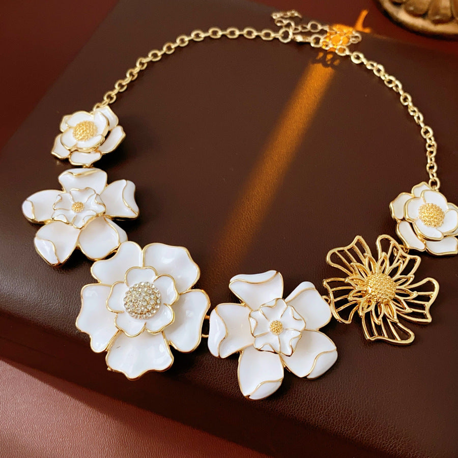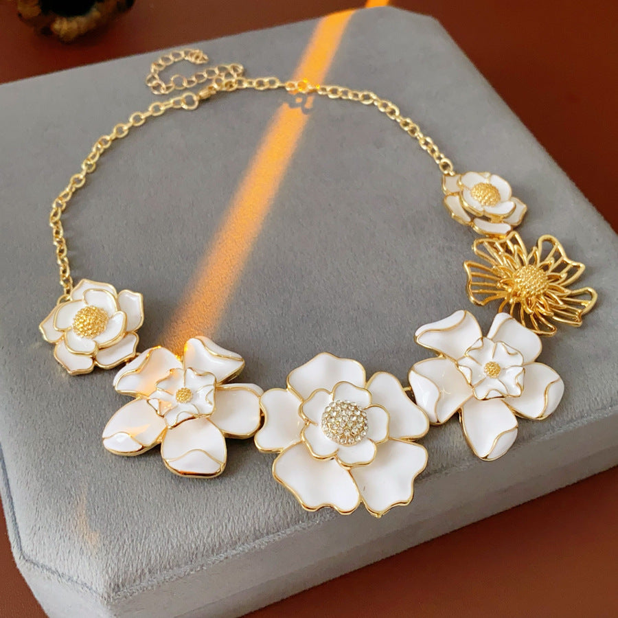 Medieval vintage Oil Drip Flower Necklace Vintage Court Style Fashion Versatile Collarbone Chain Exquisite Versatile Jewelry