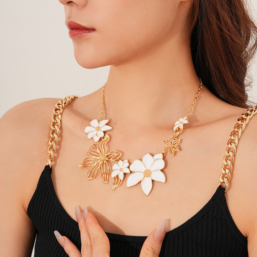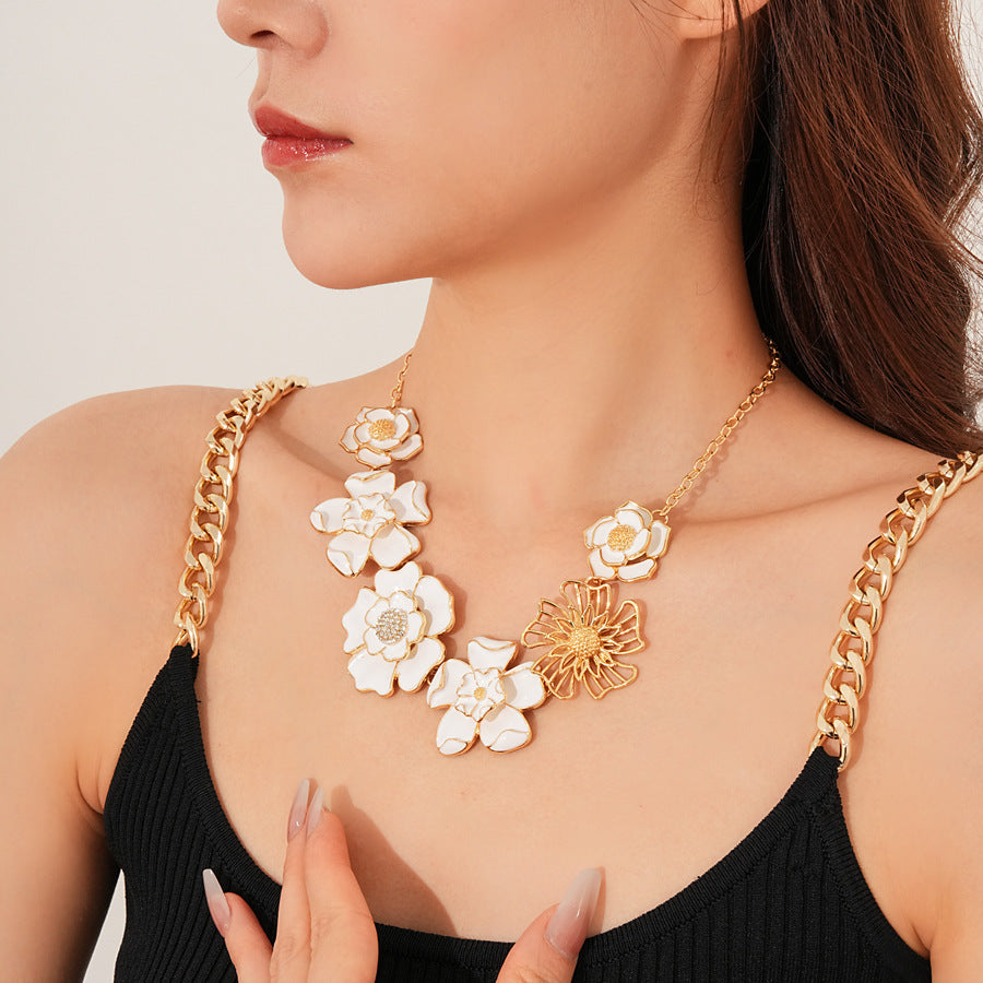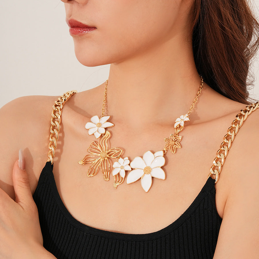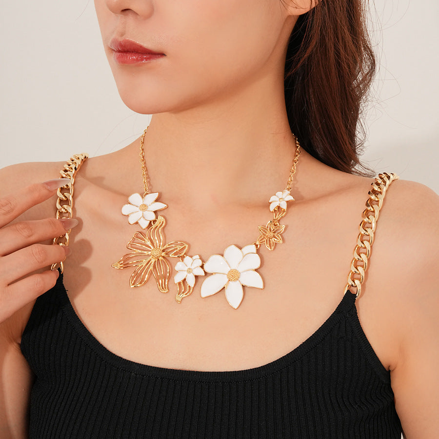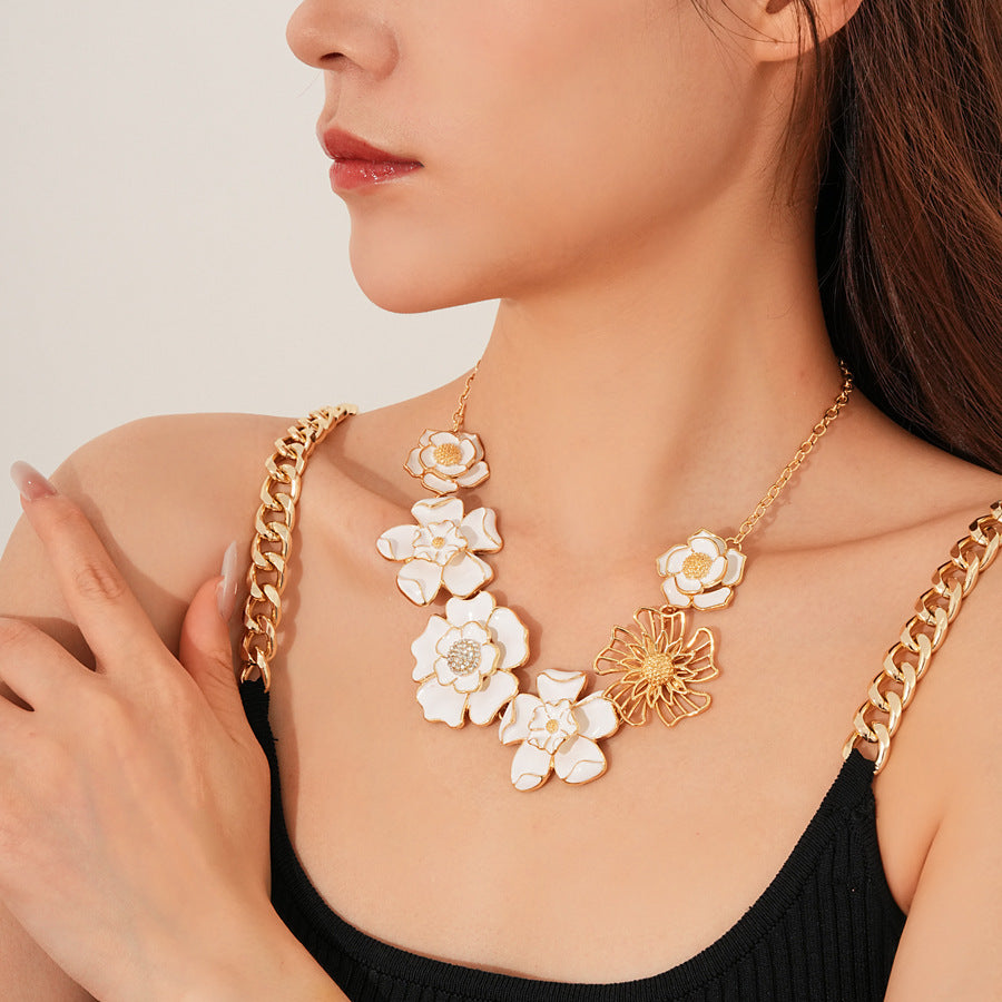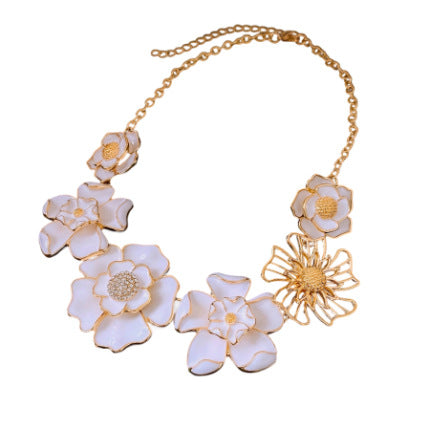 Medieval vintage Oil Drip Flower Necklace Vintage Court Style Fashion Versatile Collarbone Chain Exquisite Versatile Jewelry