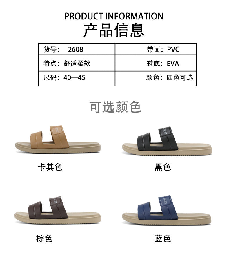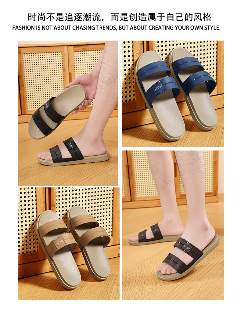 Men's New Summer Thick-Soled Slippers One-Word Outdoor Casual Comfortable Fashion Non-Slip Wear-Resistant Beach Shoes Soft