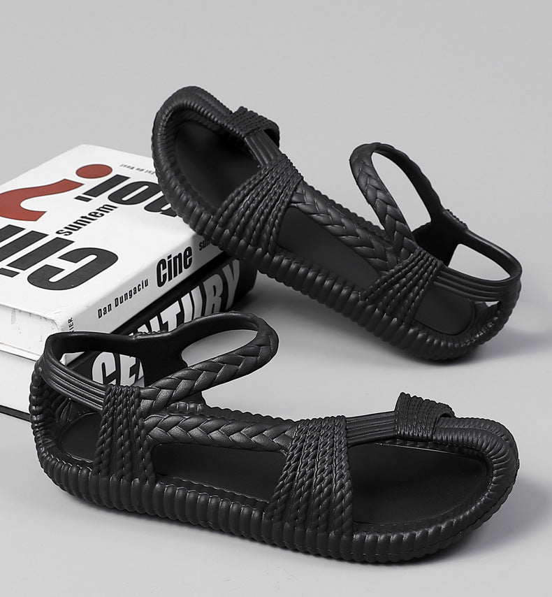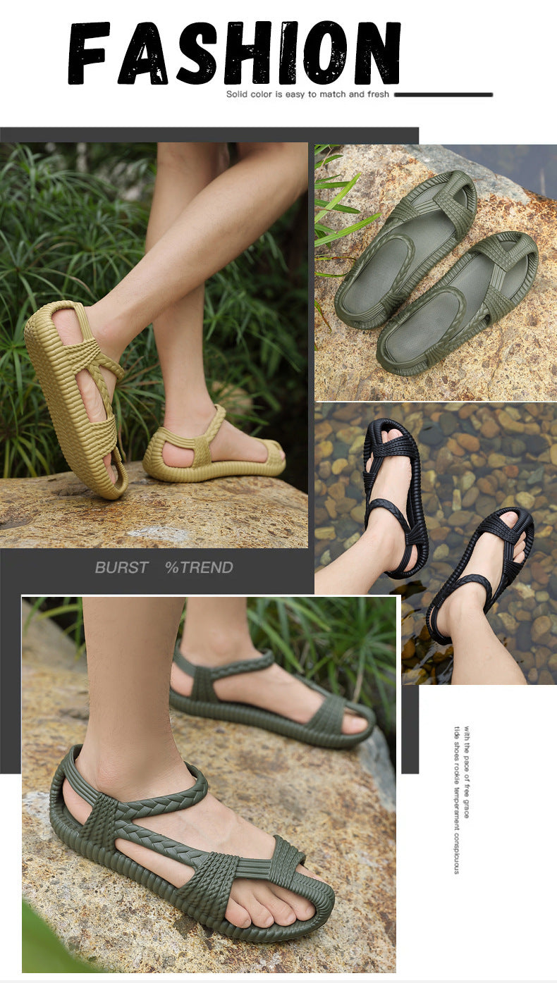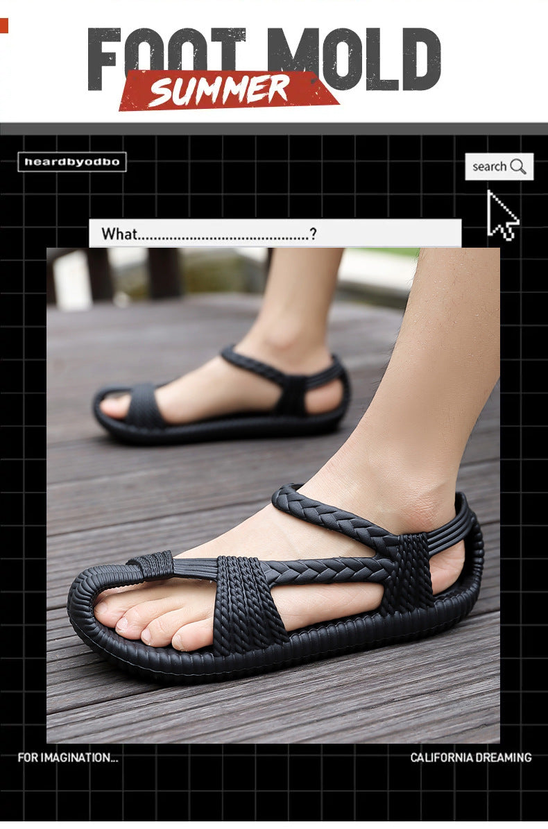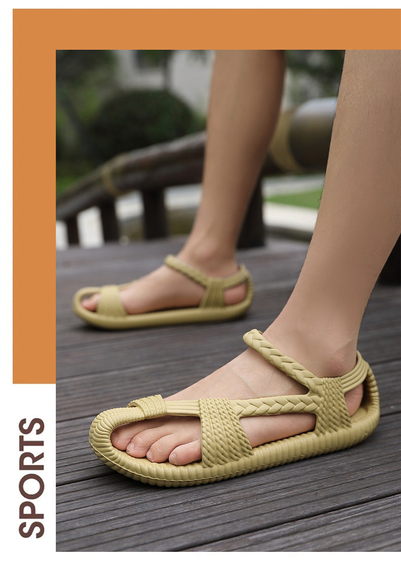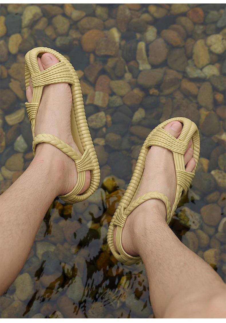 Men's Summer Straw Sandals Hollow Handmade Woven Roman Sandals Vietnamese Slippers Soft Sole Personality Beach Sandals