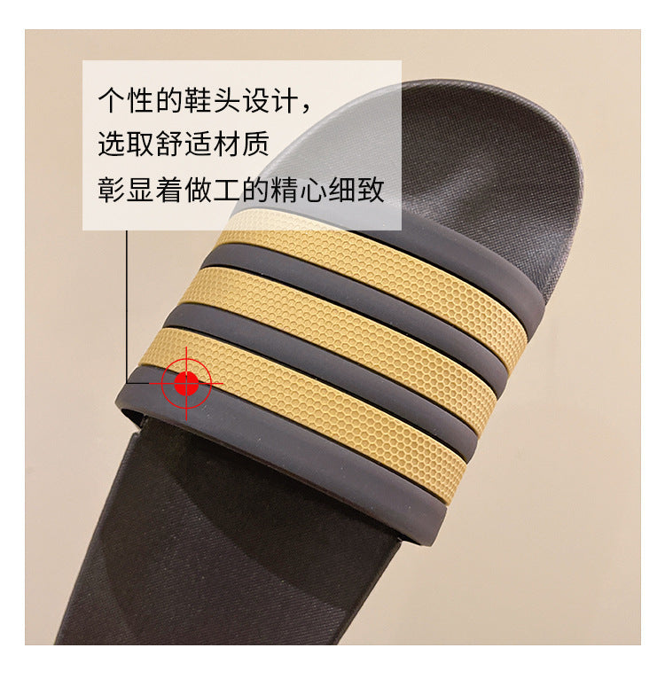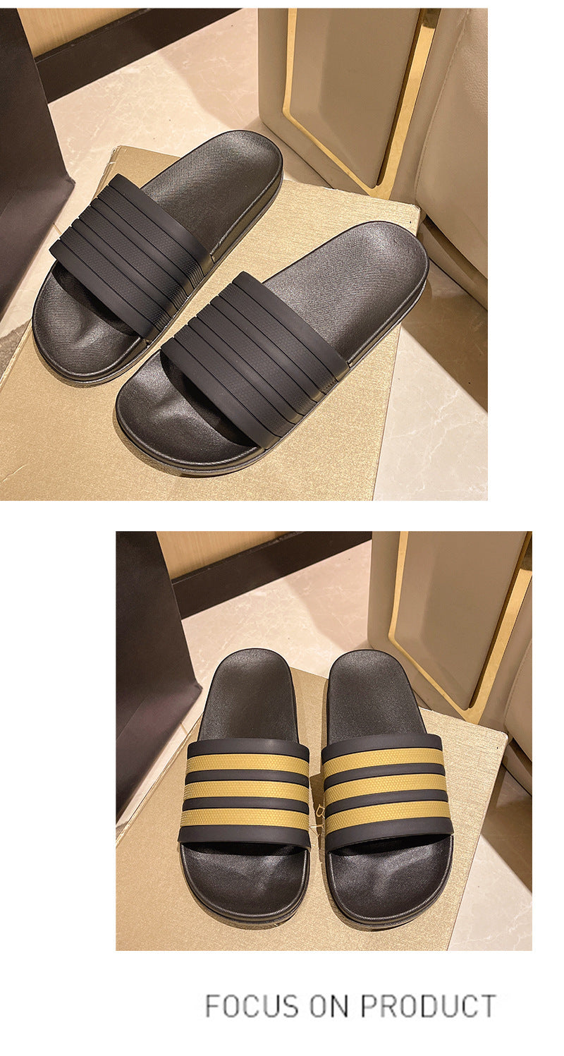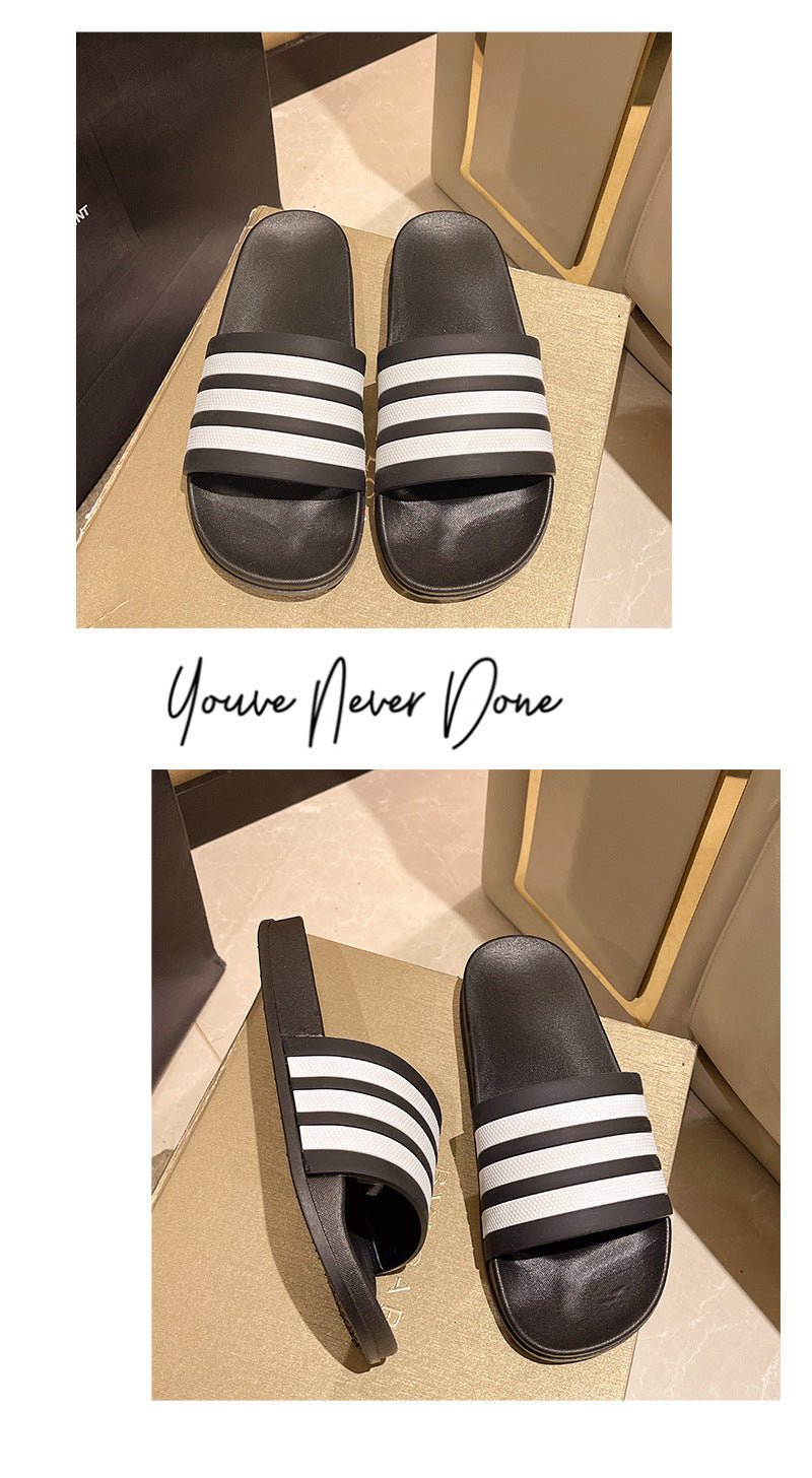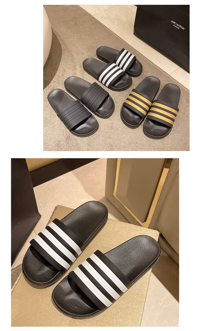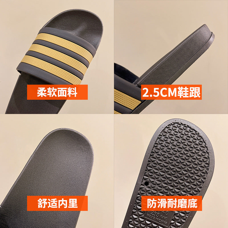 Men's Three-Stripe Slippers2024New Korean Style Outdoor Indoor Home Bathroom Non-Slip Beach Sandals