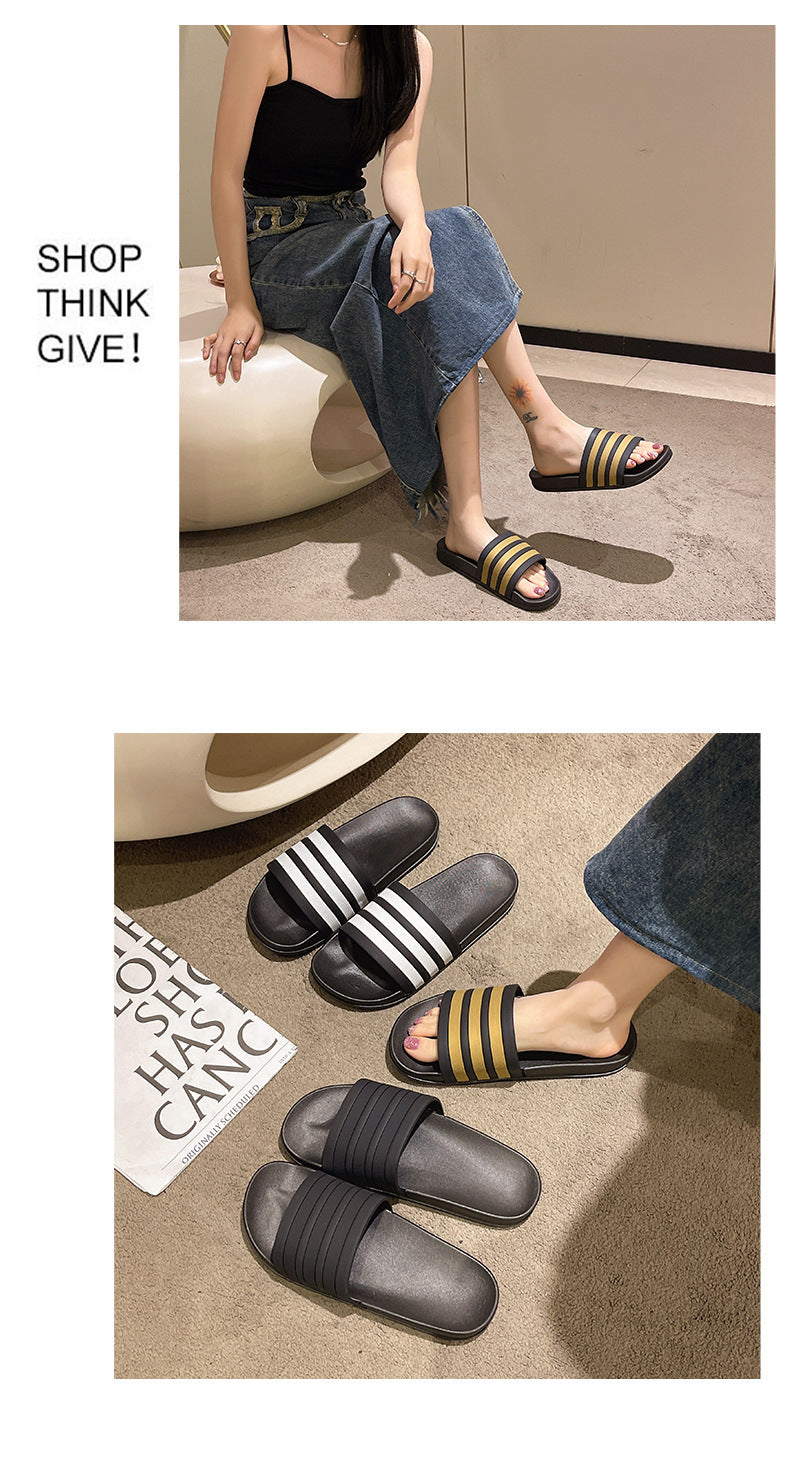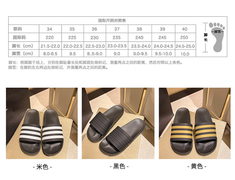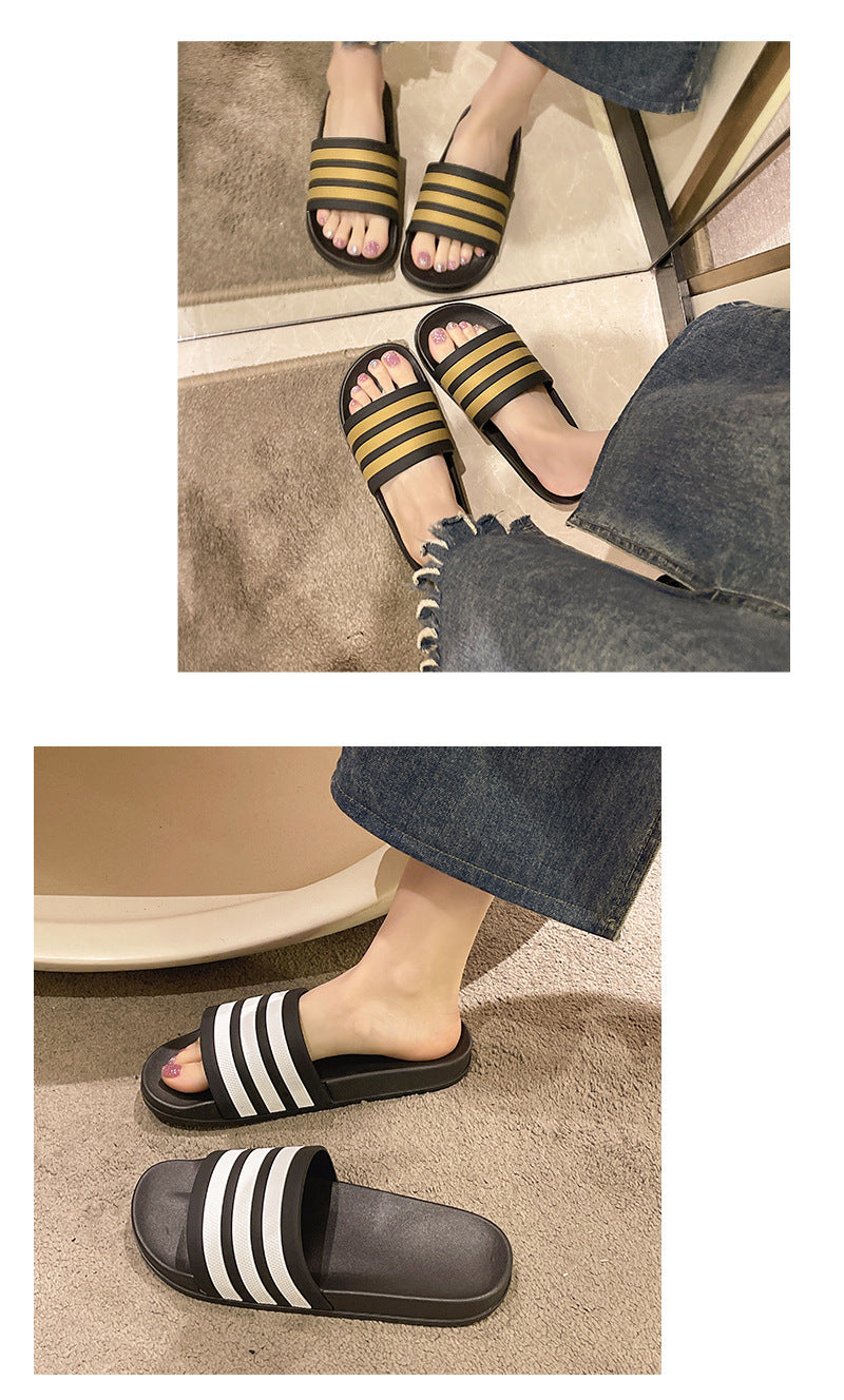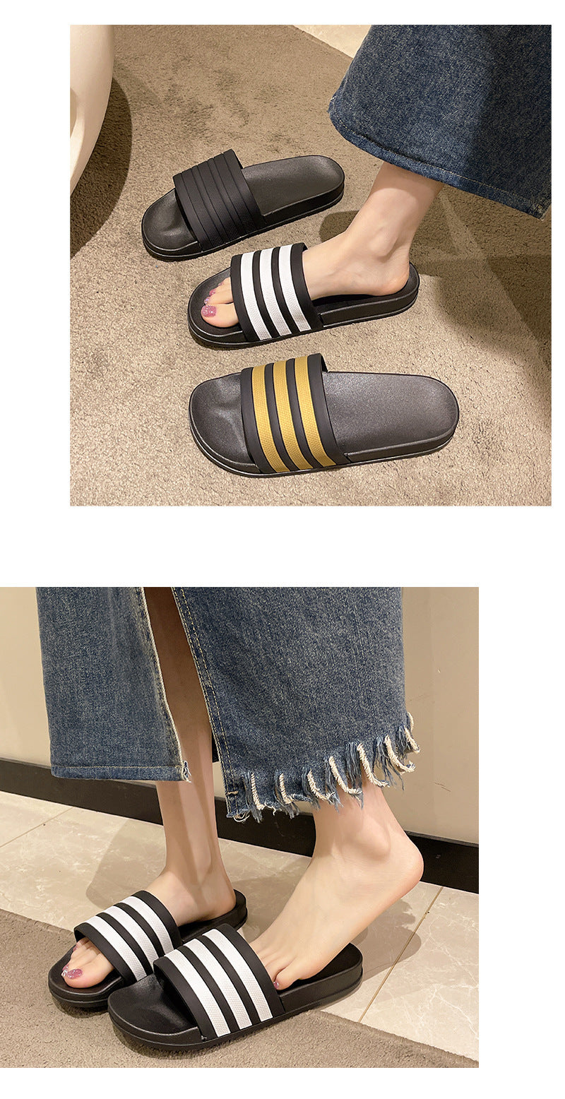 Men's Three-Stripe Slippers2024New Korean Style Outdoor Indoor Home Bathroom Non-Slip Beach Sandals