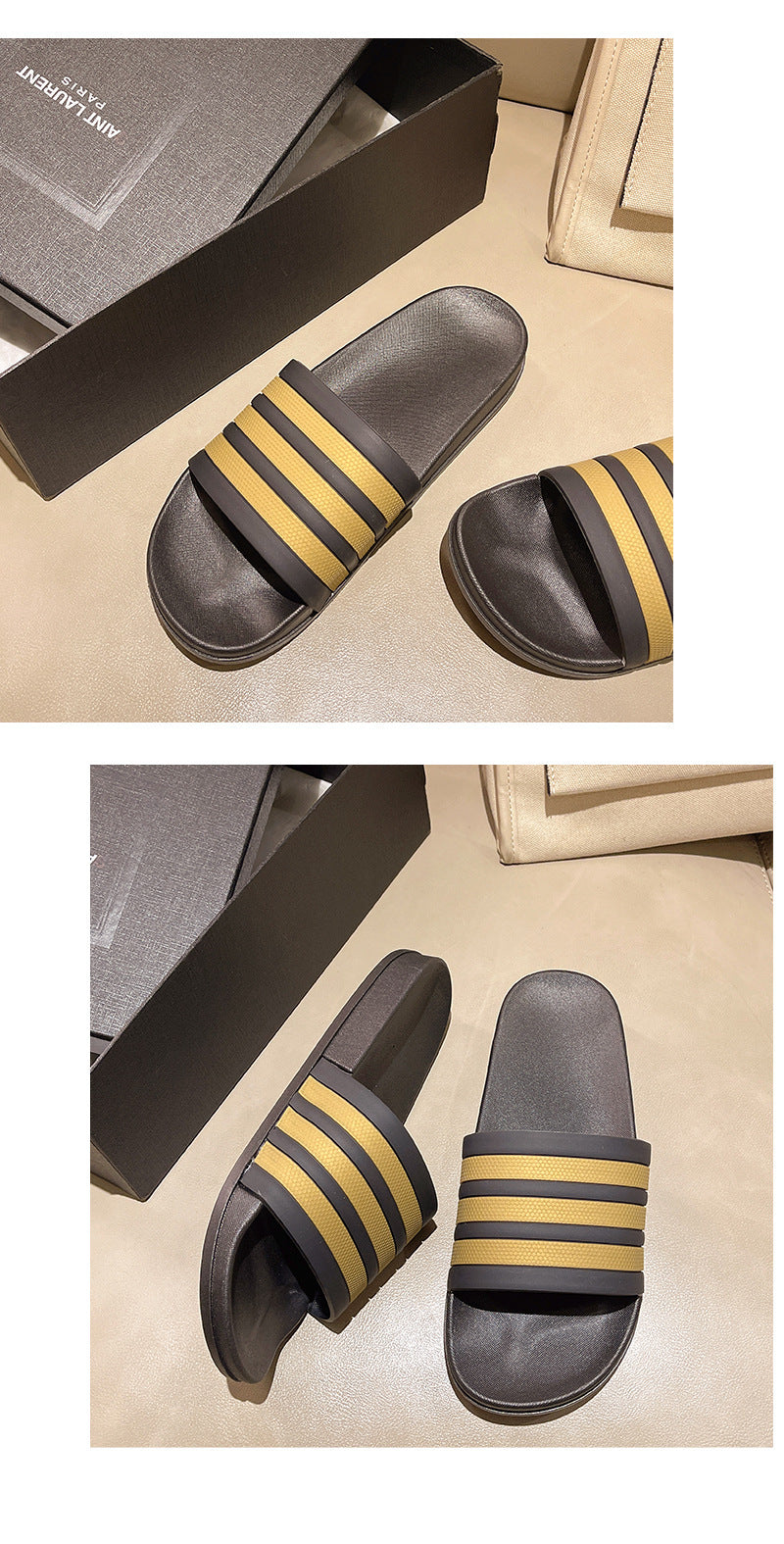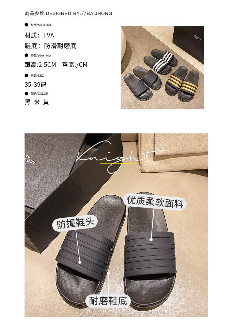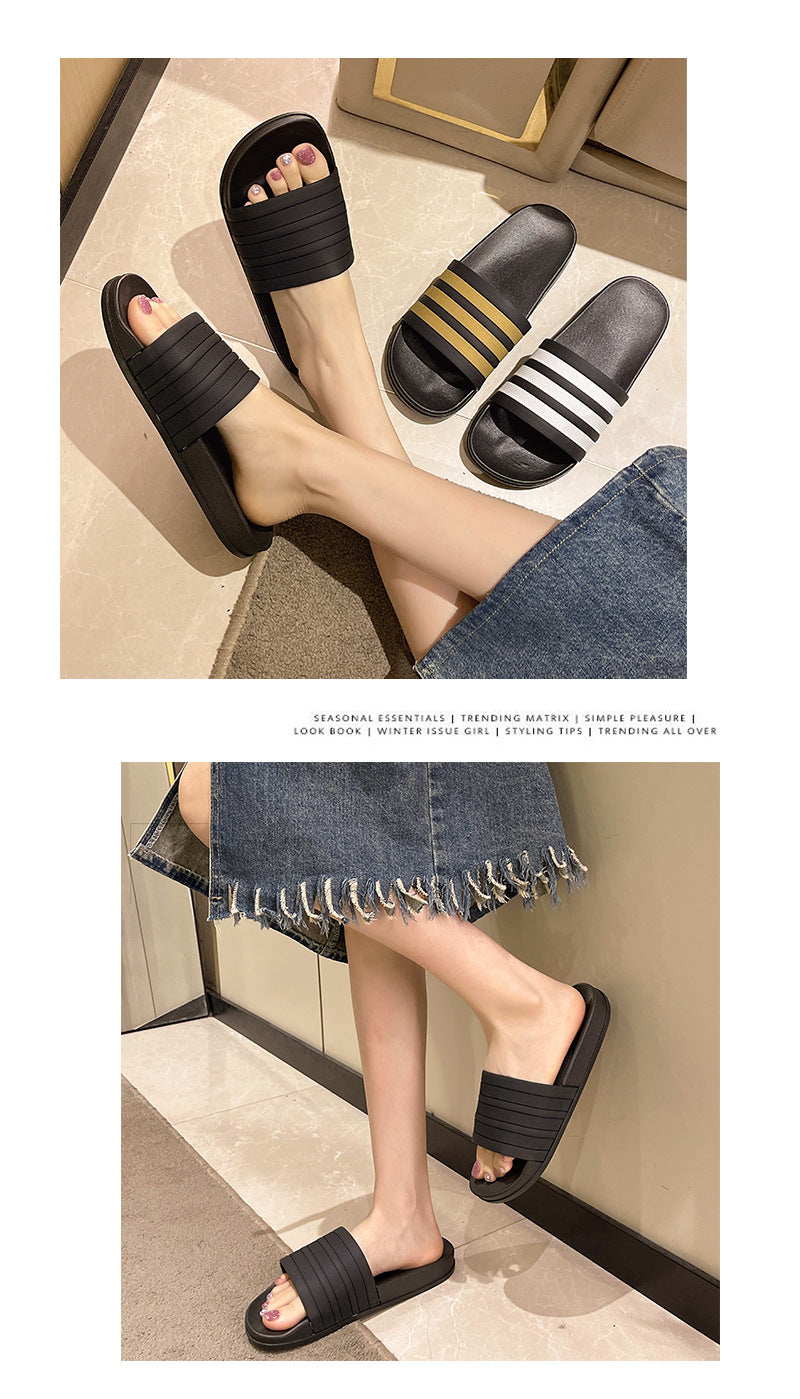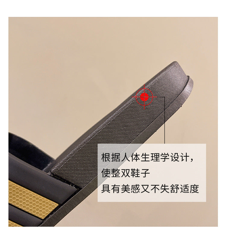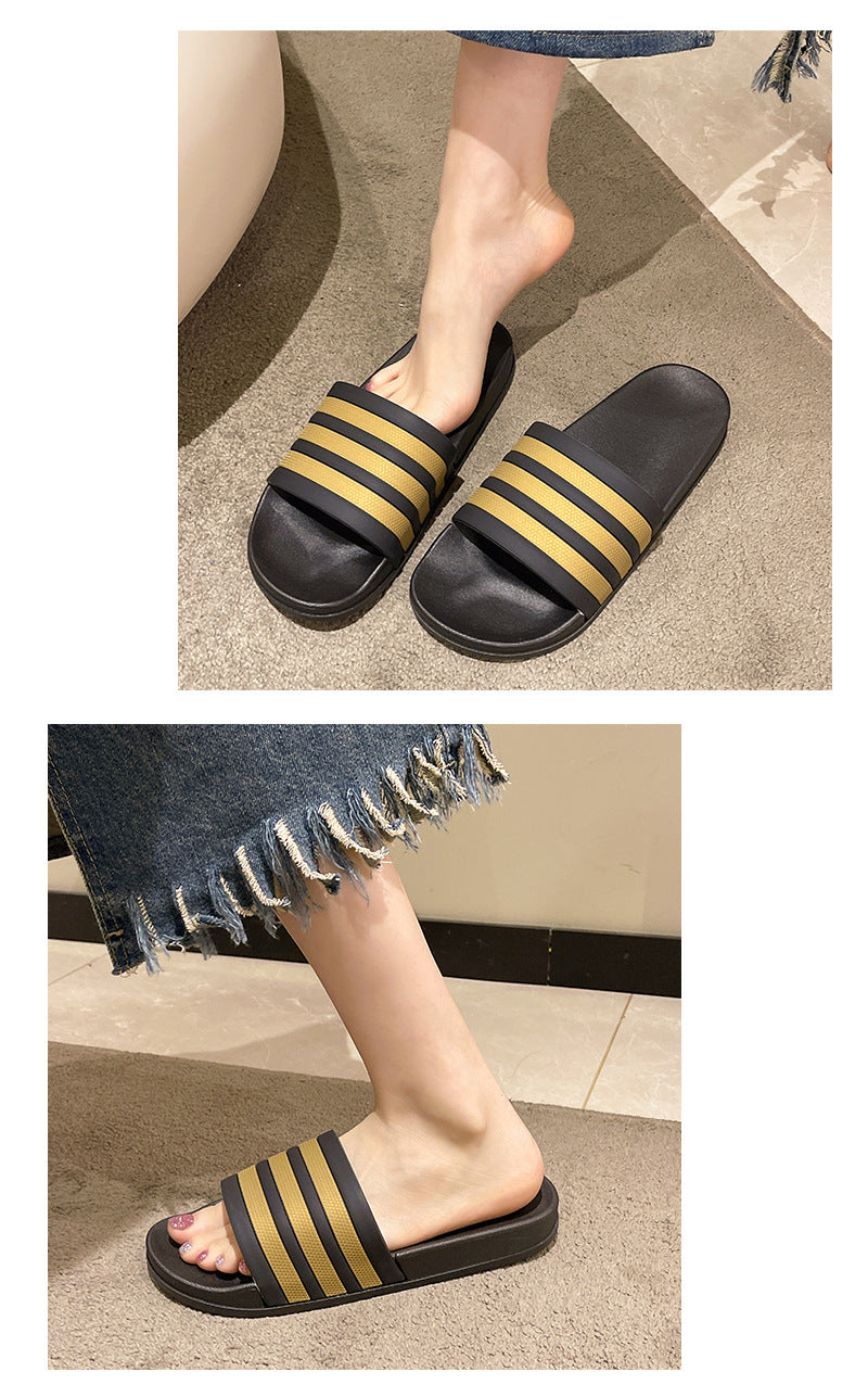 Men's Three-Stripe Slippers2024New Korean Style Outdoor Indoor Home Bathroom Non-Slip Beach Sandals