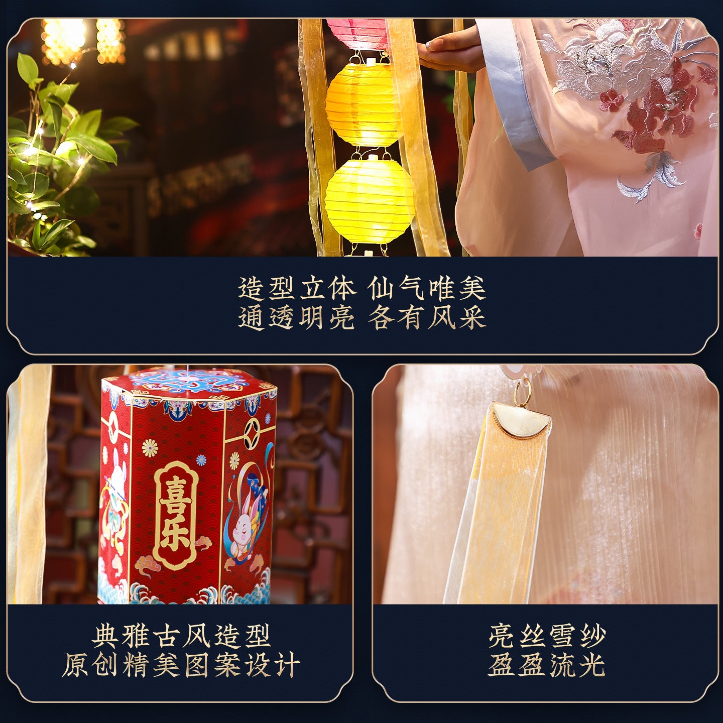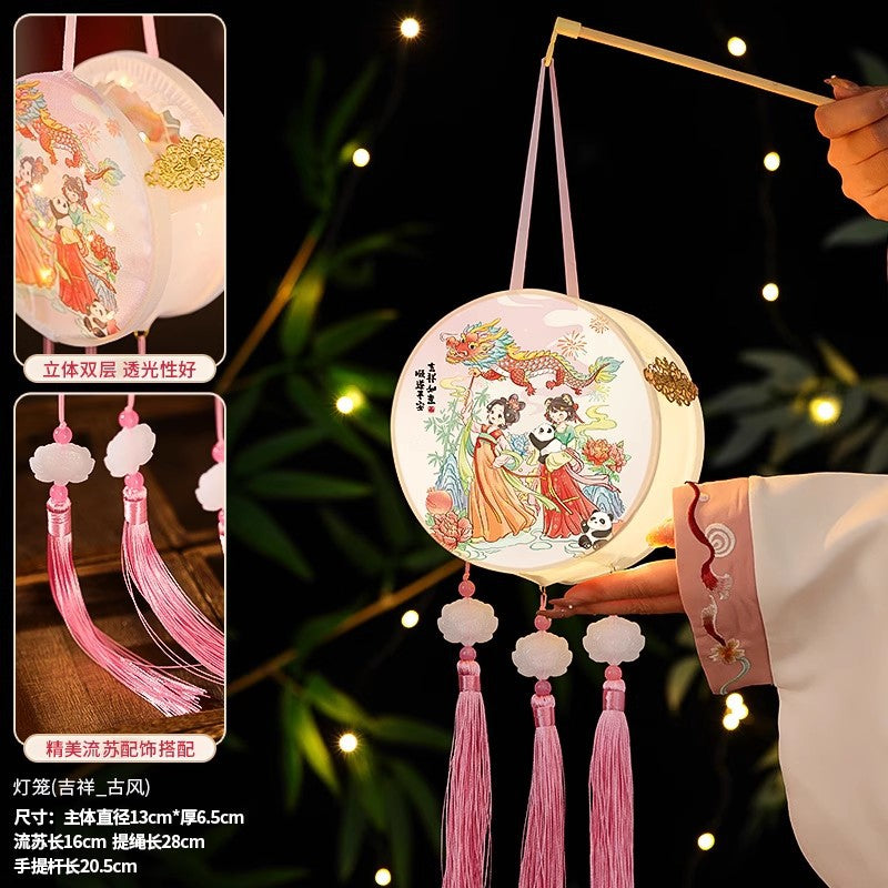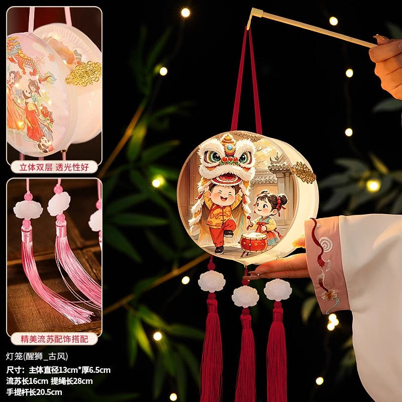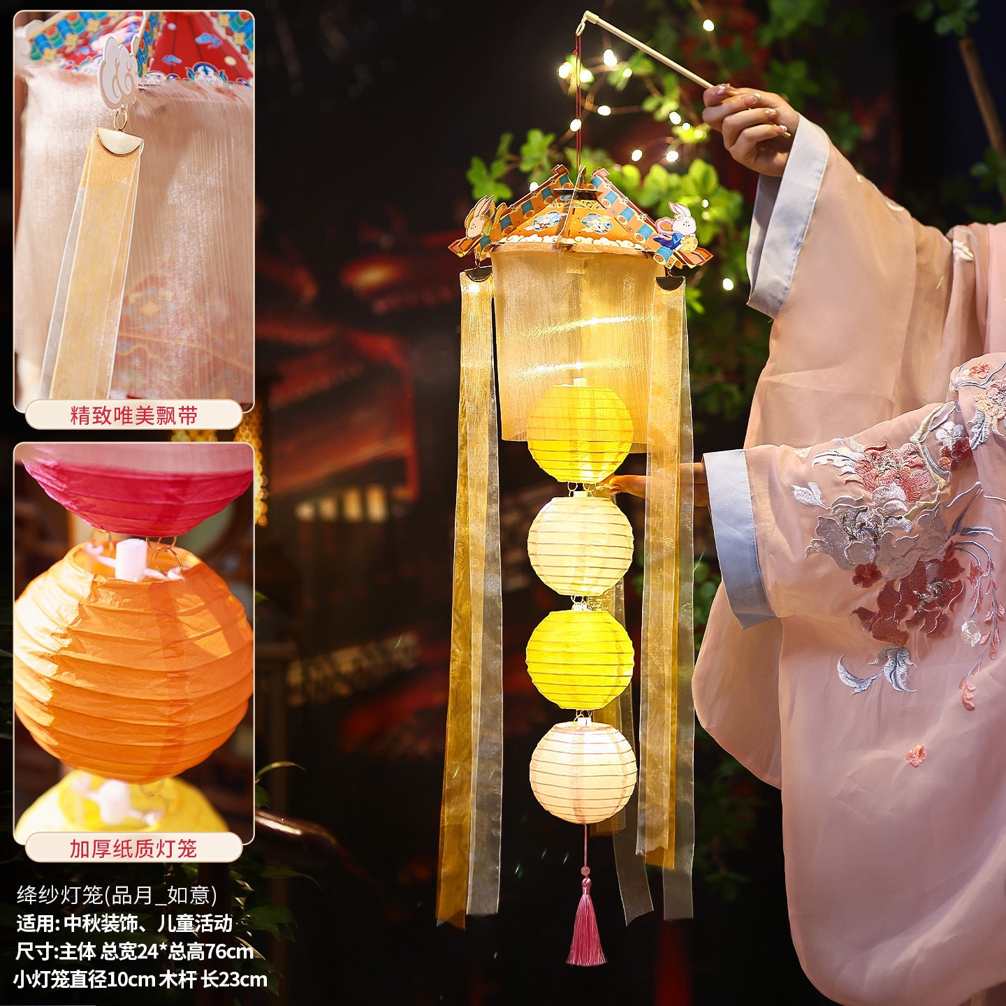 Mid-Autumn Festival Lanterns Handmade diy 2025New Creative Ancient Style Red Silk Lantern Children's Handheld Glowing Lantern for Stall Display