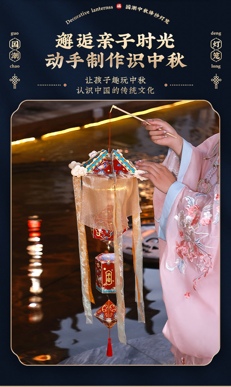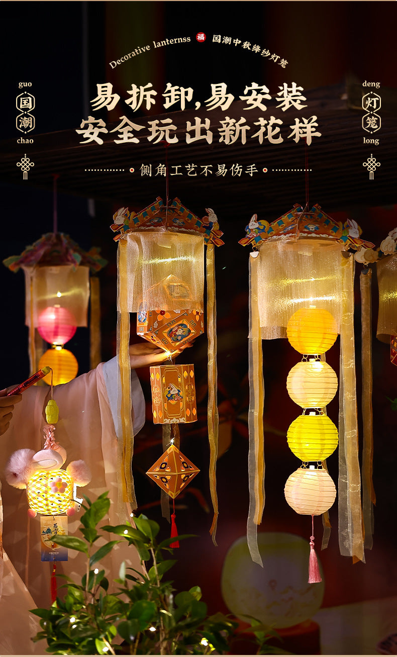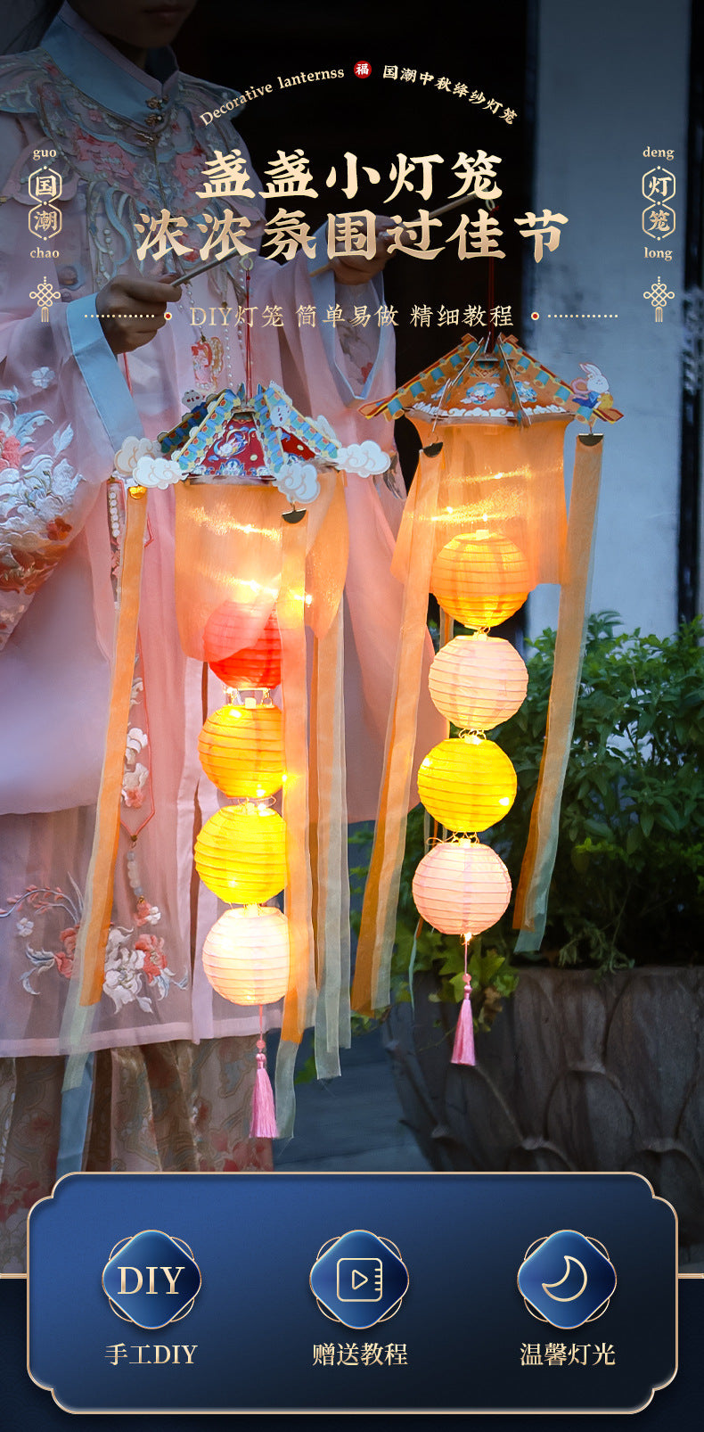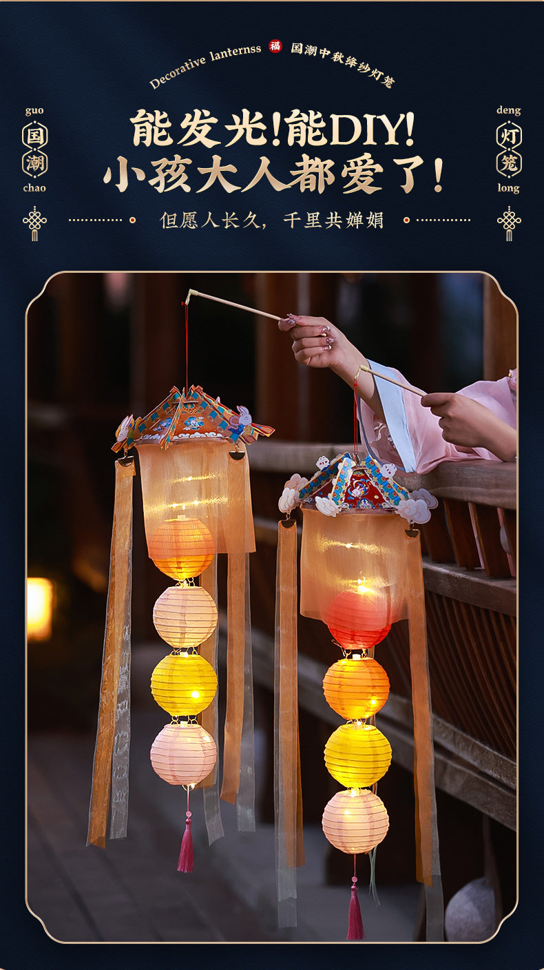 Mid-Autumn Festival Lanterns Handmade diy 2025New Creative Ancient Style Red Silk Lantern Children's Handheld Glowing Lantern for Stall Display