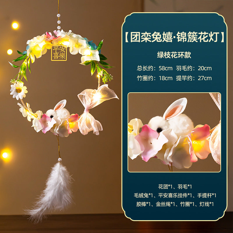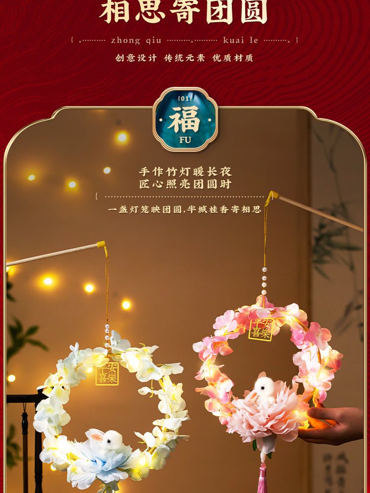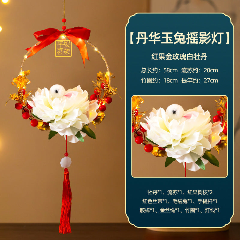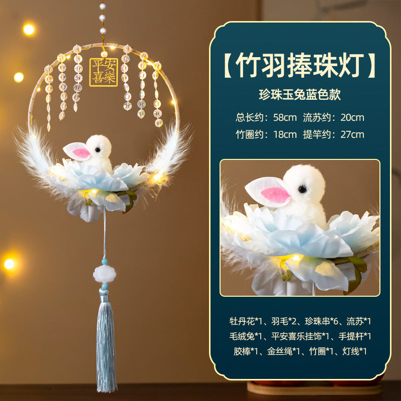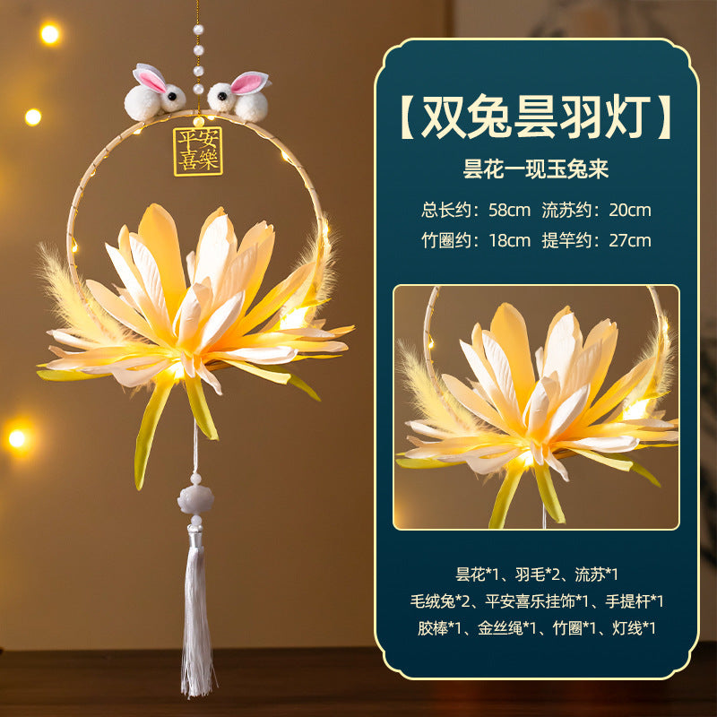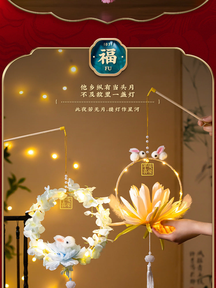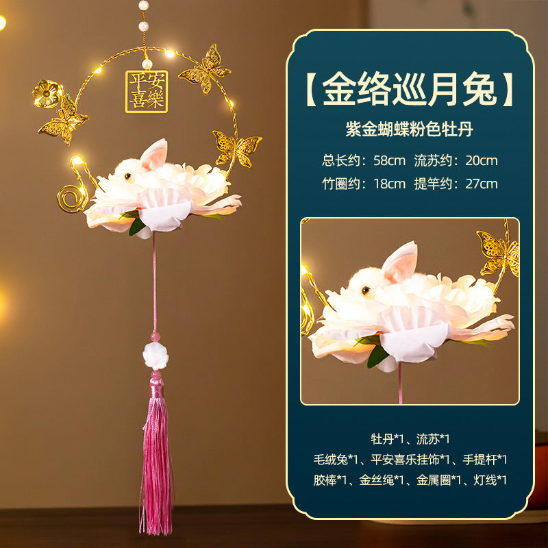 Mid-Autumn Festival Rabbit Lantern Finished Product Handheld Glowing Jade Rabbit Lantern Lotus Lantern Hanfu diy Handcrafted Ancient Style Props