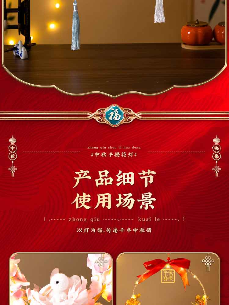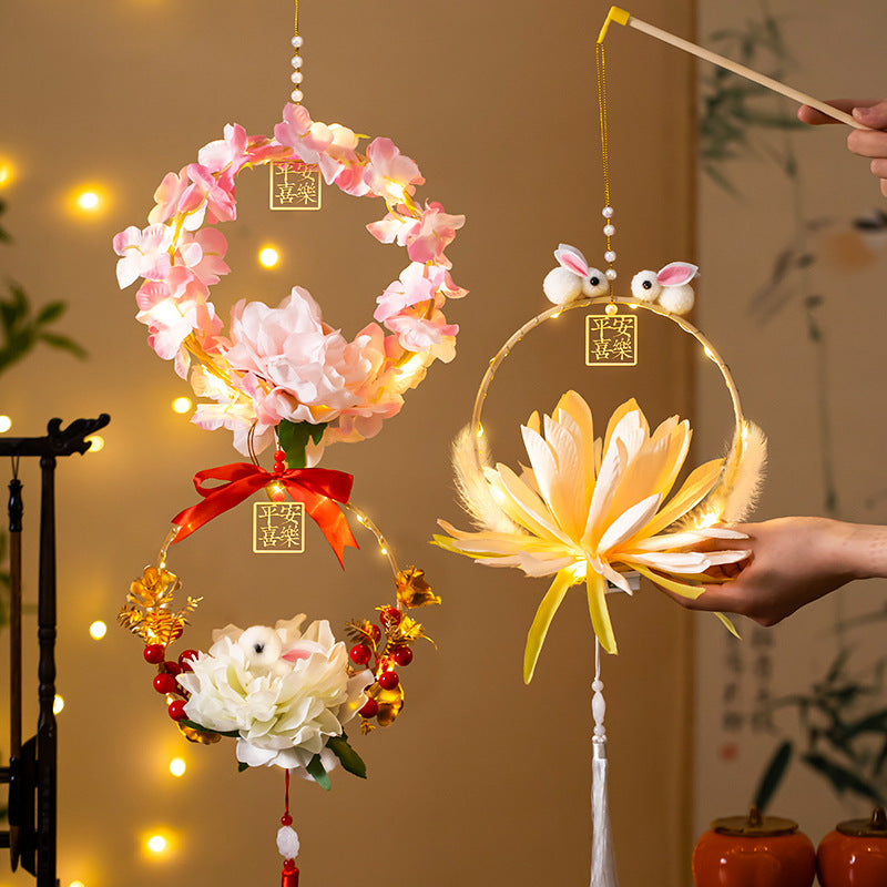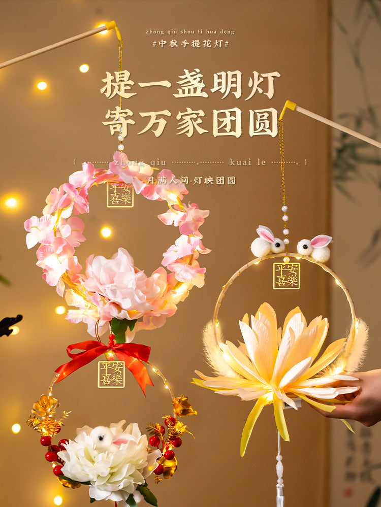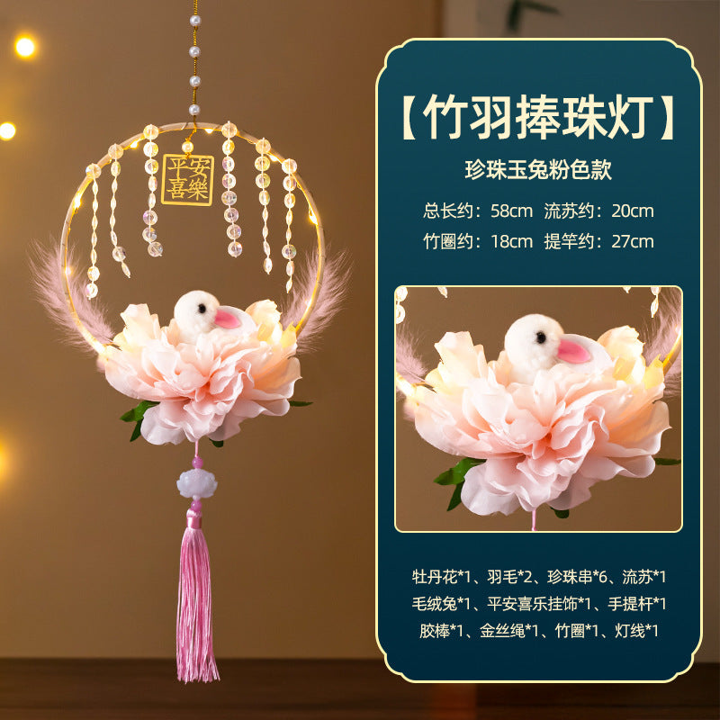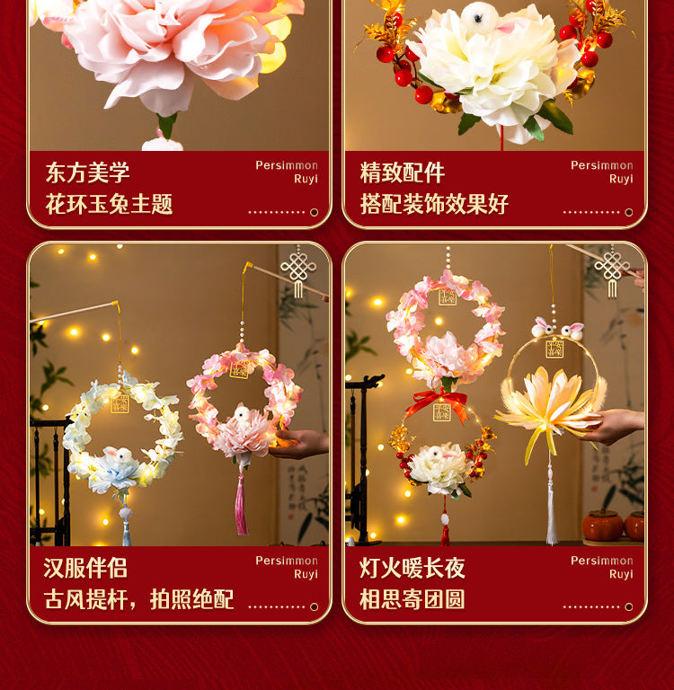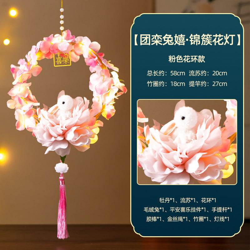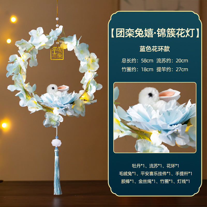 Mid-Autumn Festival Rabbit Lantern Finished Product Handheld Glowing Jade Rabbit Lantern Lotus Lantern Hanfu diy Handcrafted Ancient Style Props