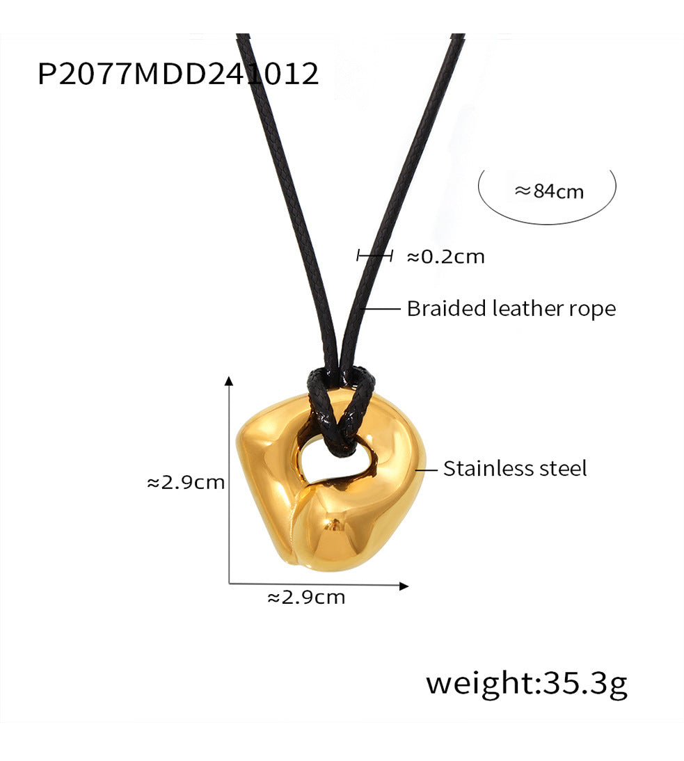 Mili Jewelry New Adjustable Leather Cord Necklace for Women Heavy Craft Curved Design Titanium Steel PVD Plating18k Genuine Gold In Stock