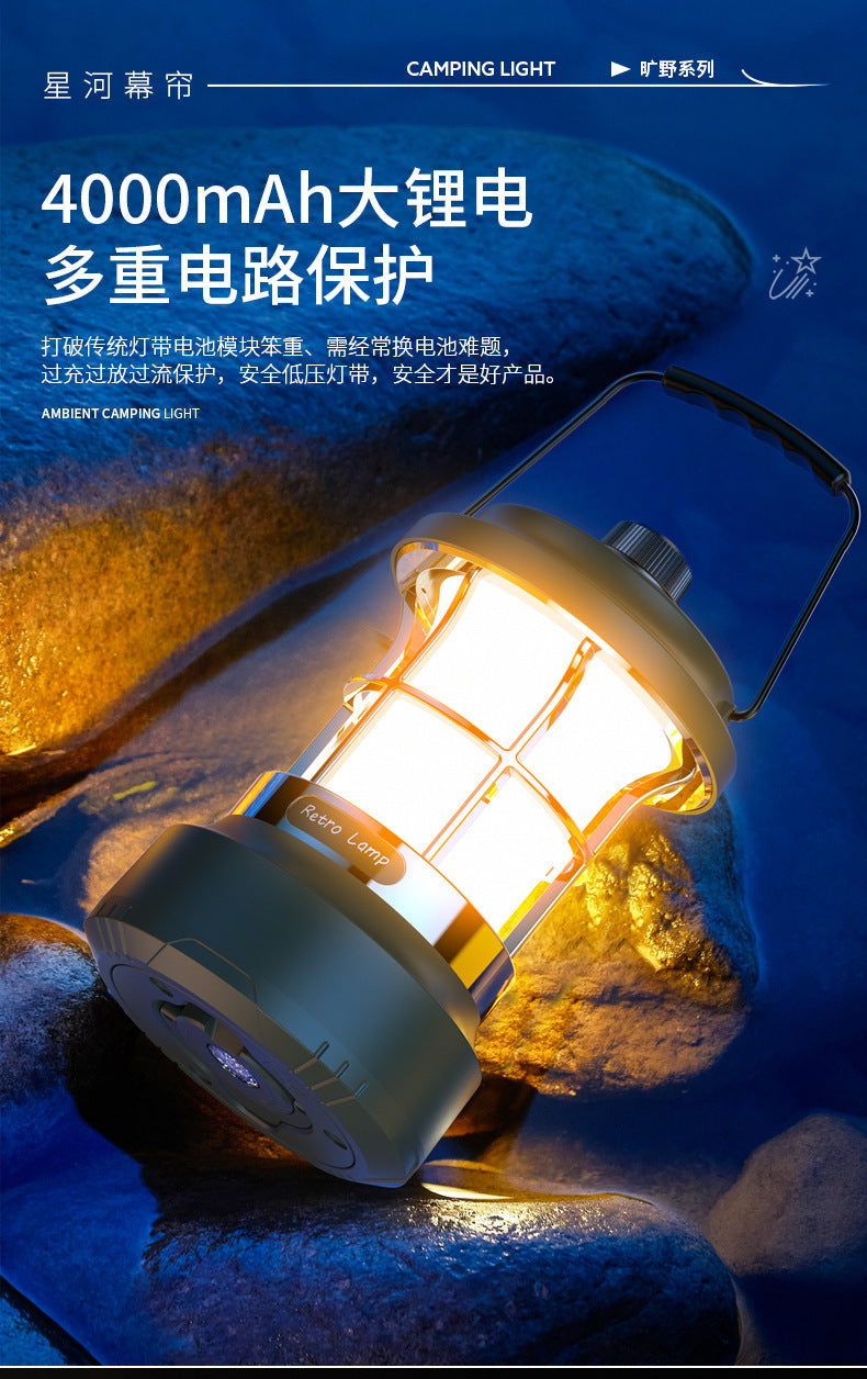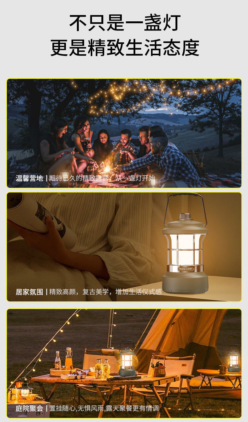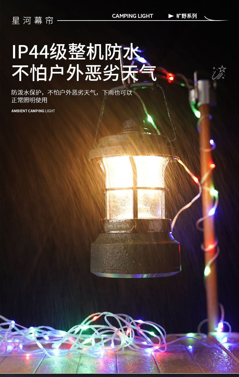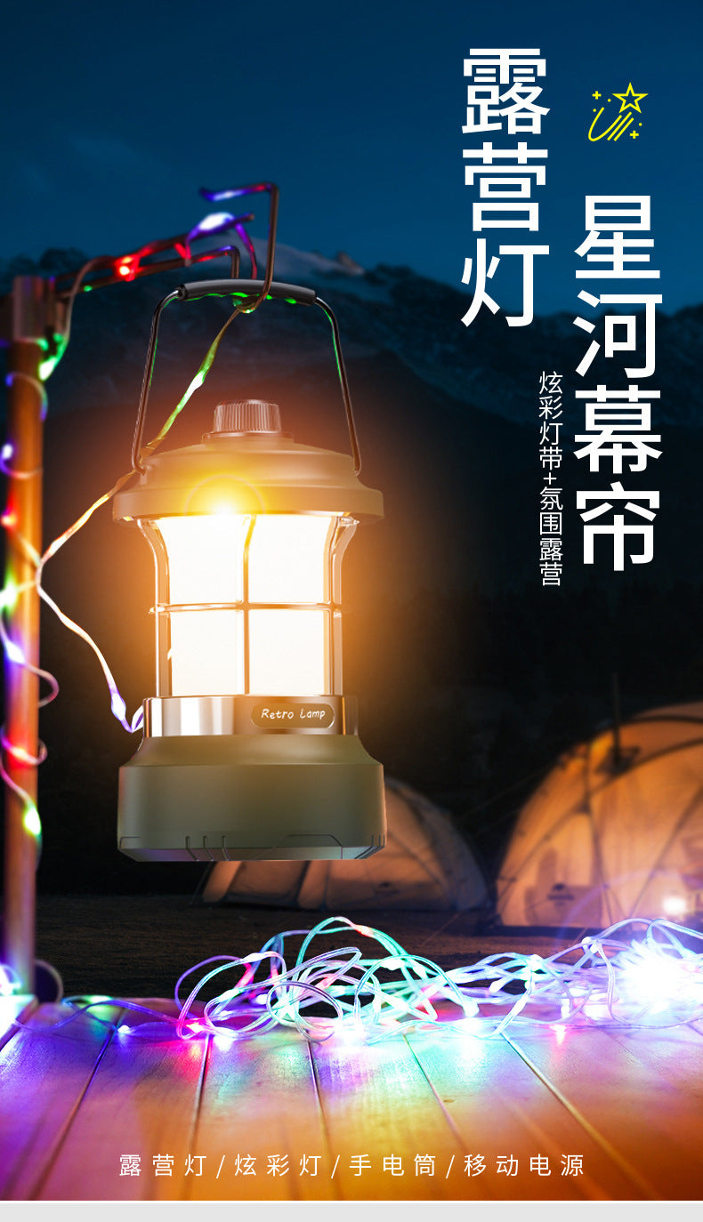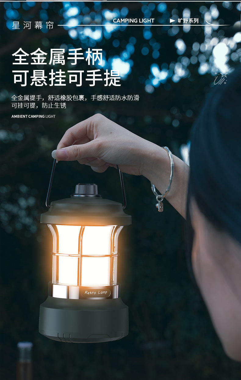 Multifunctional Retro Lantern String Light Camping Light Handheld Light Outdoor Lighting Stepless Dimming Rechargeable Tent Light