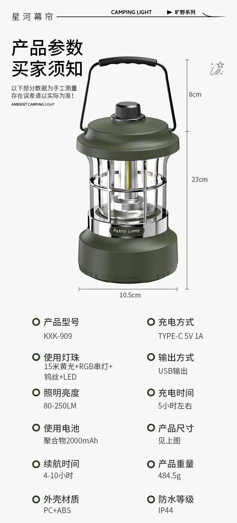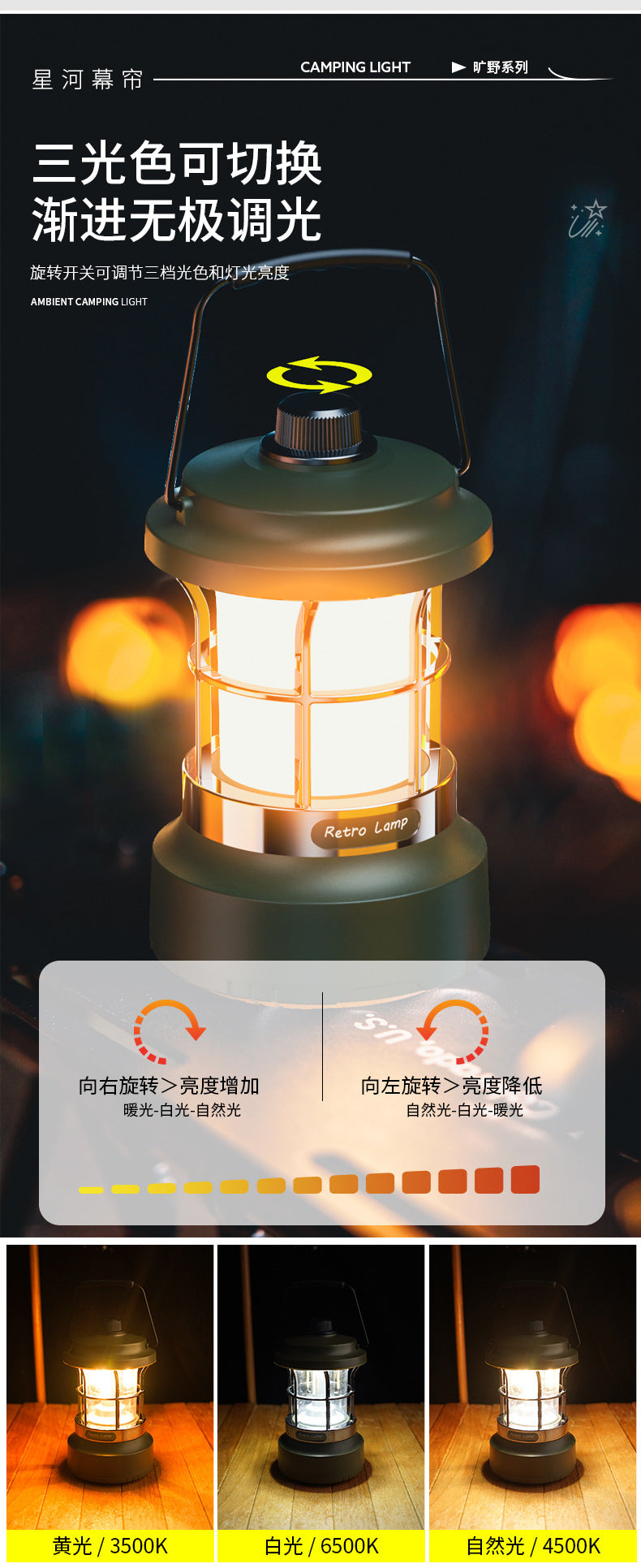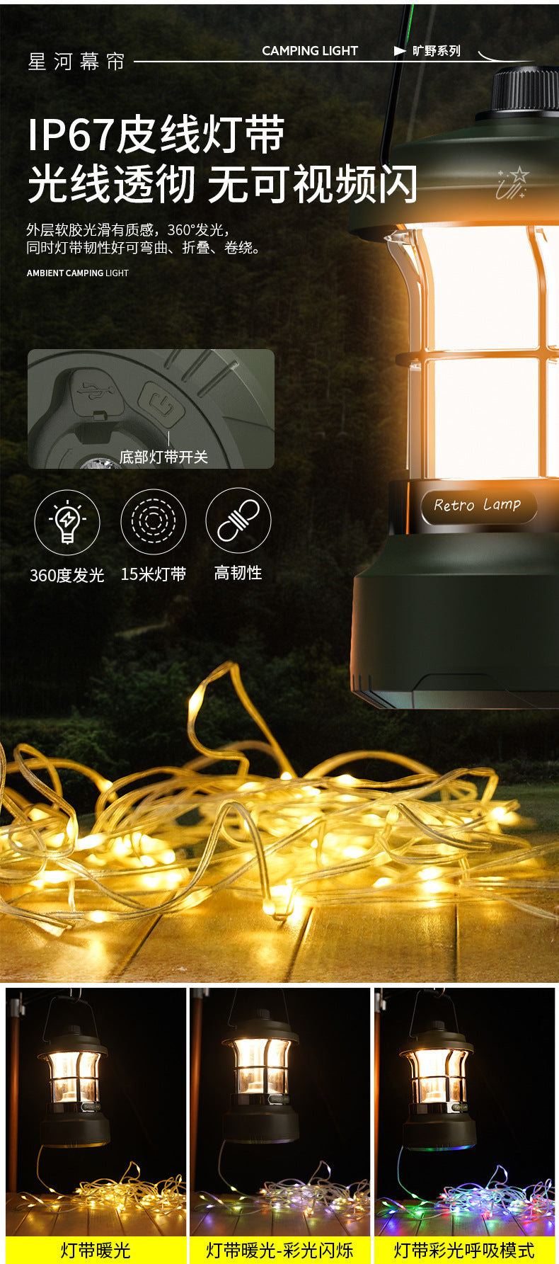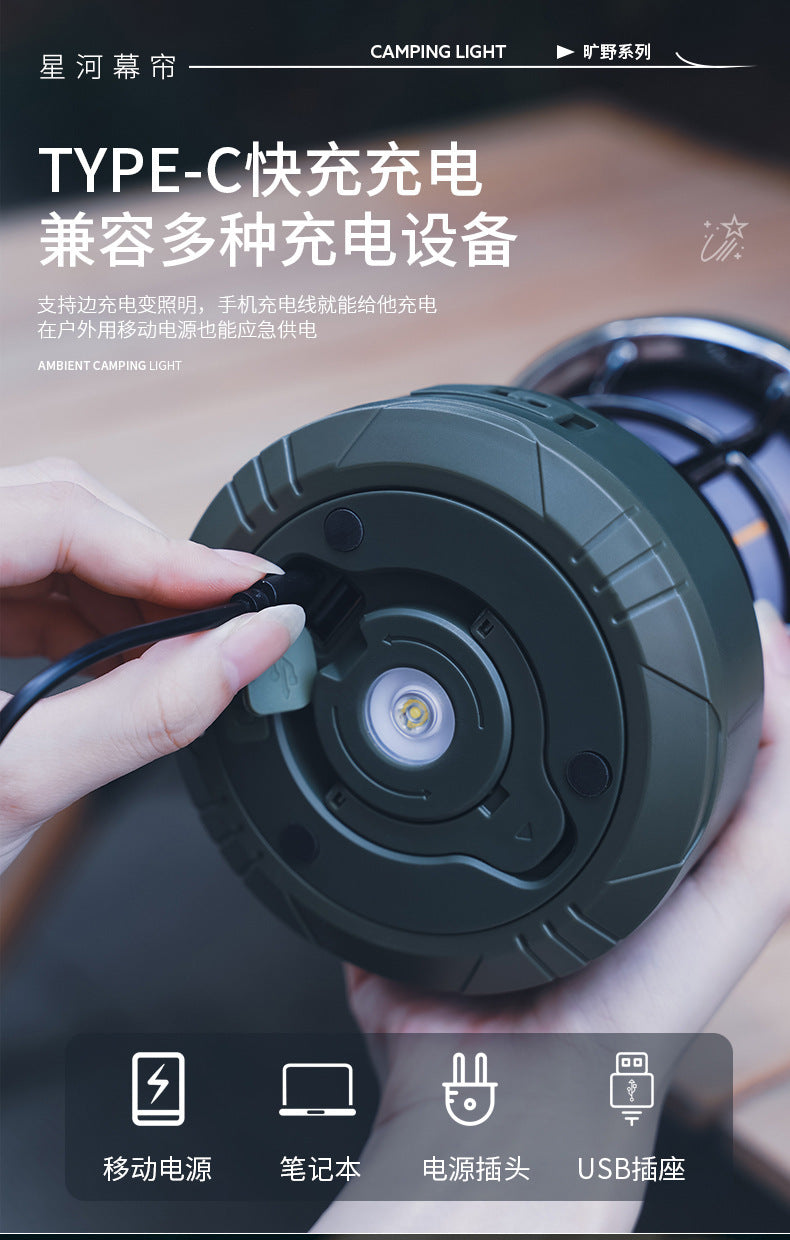 Multifunctional Retro Lantern String Light Camping Light Handheld Light Outdoor Lighting Stepless Dimming Rechargeable Tent Light