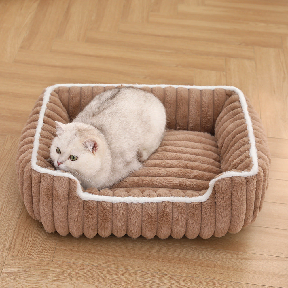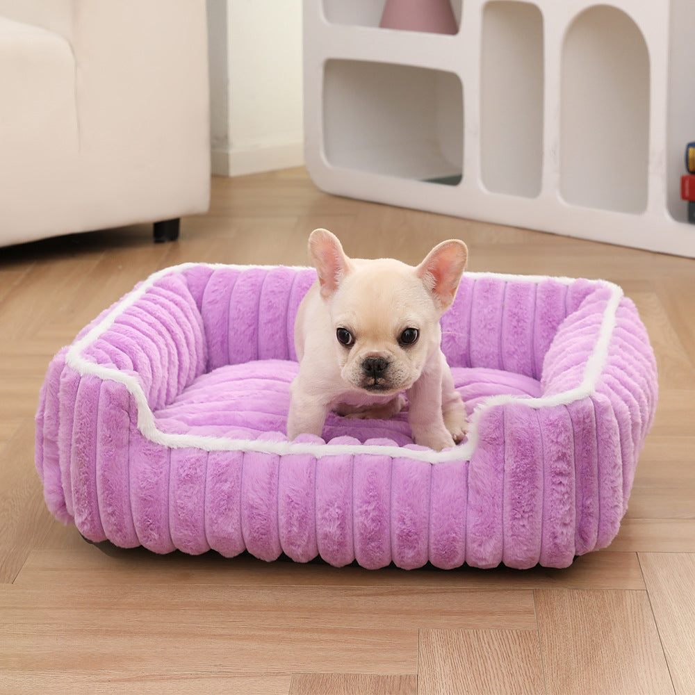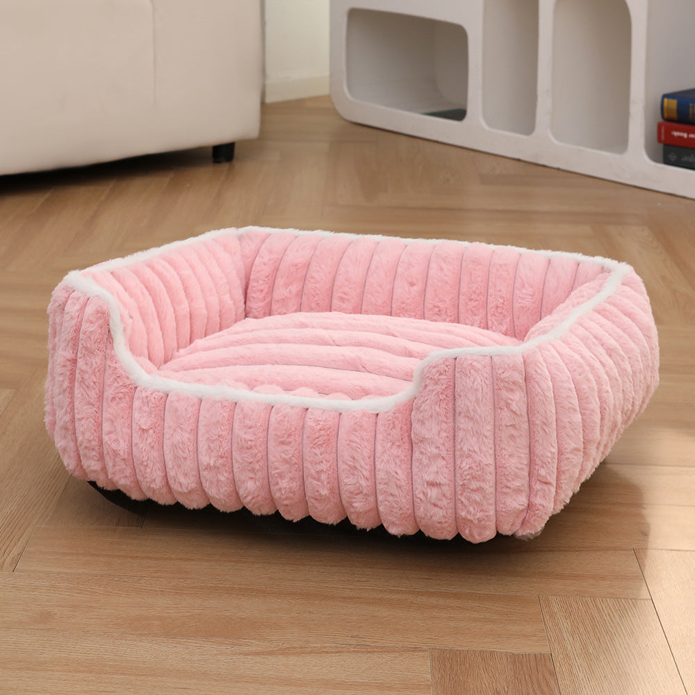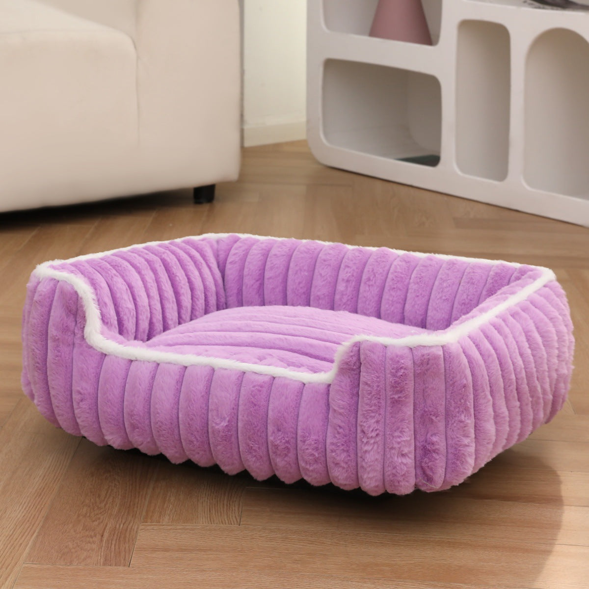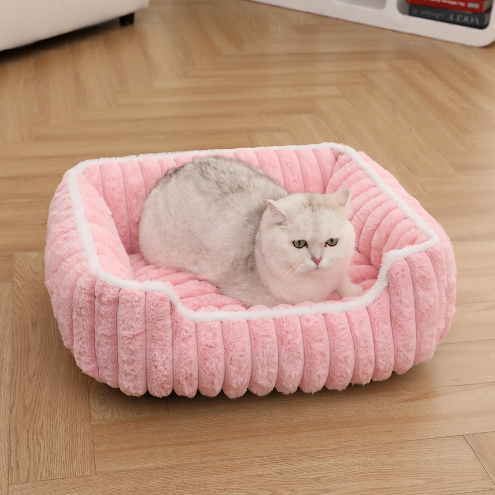New Thickened Straight Bar Square Nest Rabbit Plush Soft Comfortable Pet Bed Deep Sleep Cat Nest Four Seasons Dog Nest