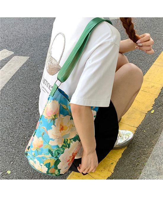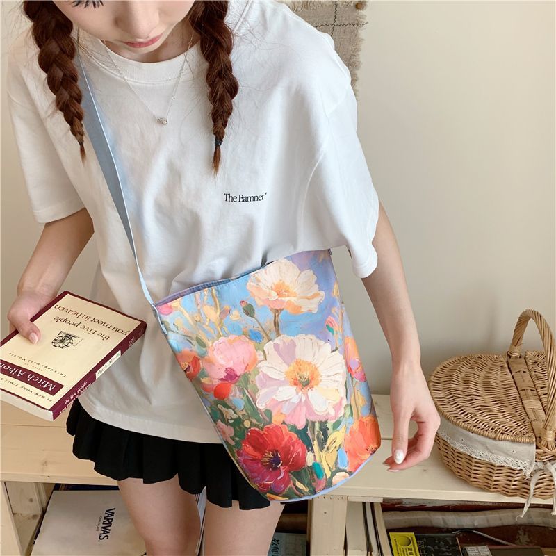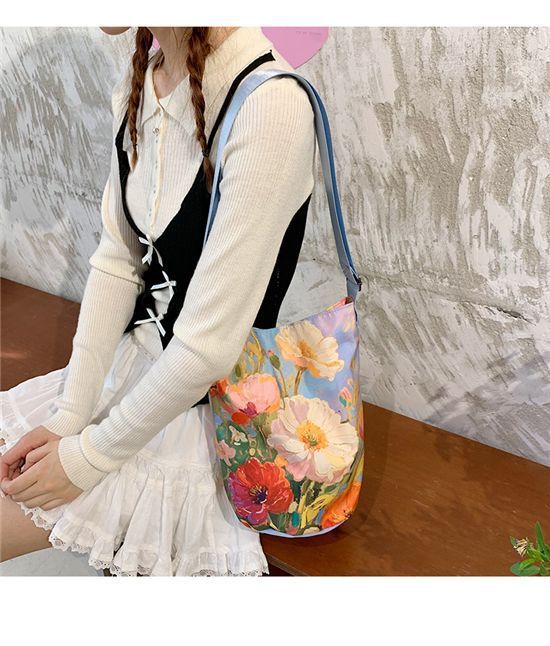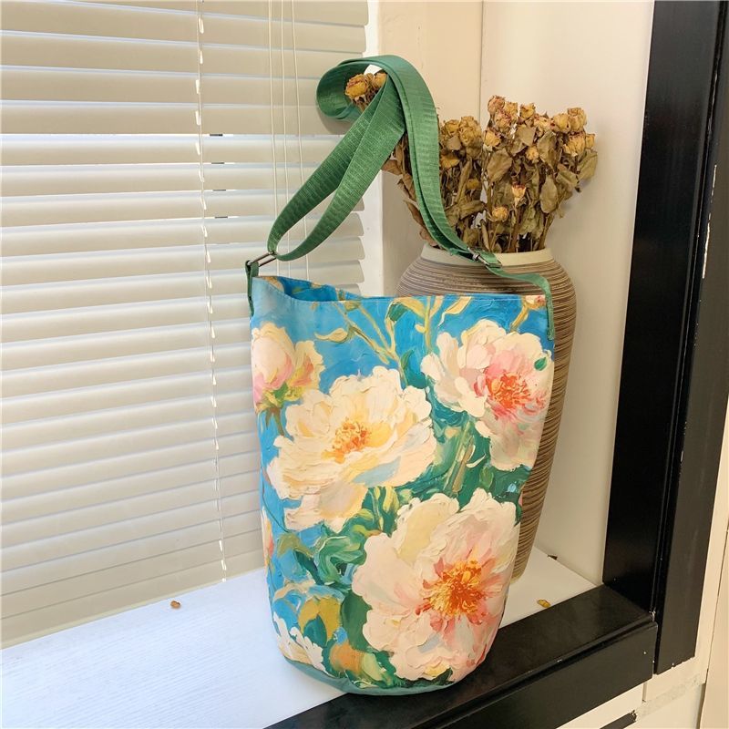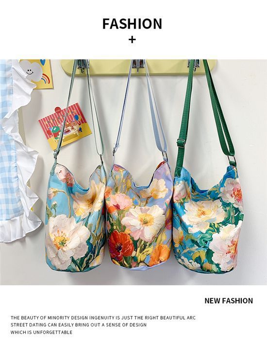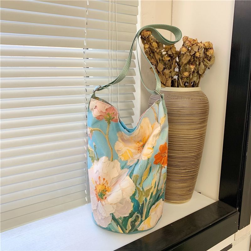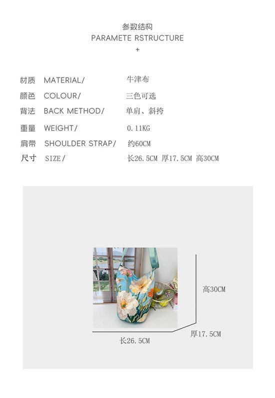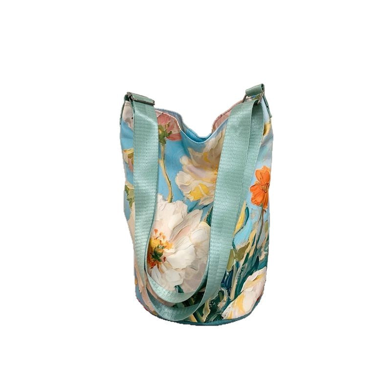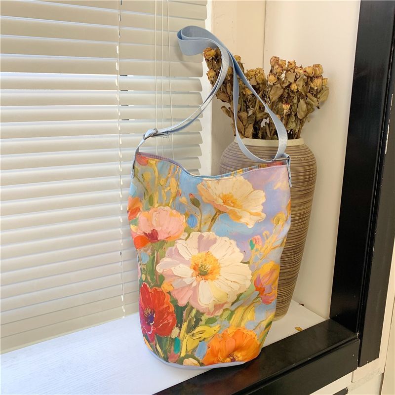New2025Floral Oil Painting Niche Large Capacity Versatile Commuter Bucket High-end Bag Women's Shoulder Bag Hot Item