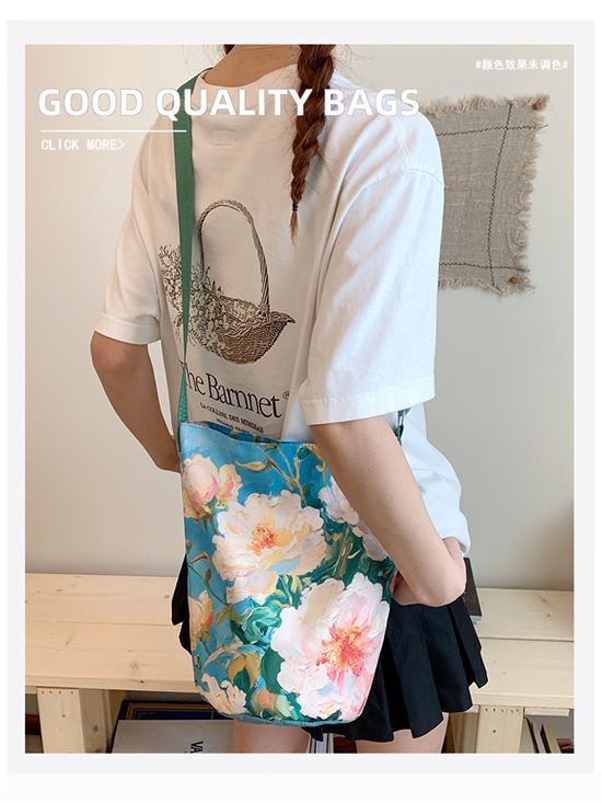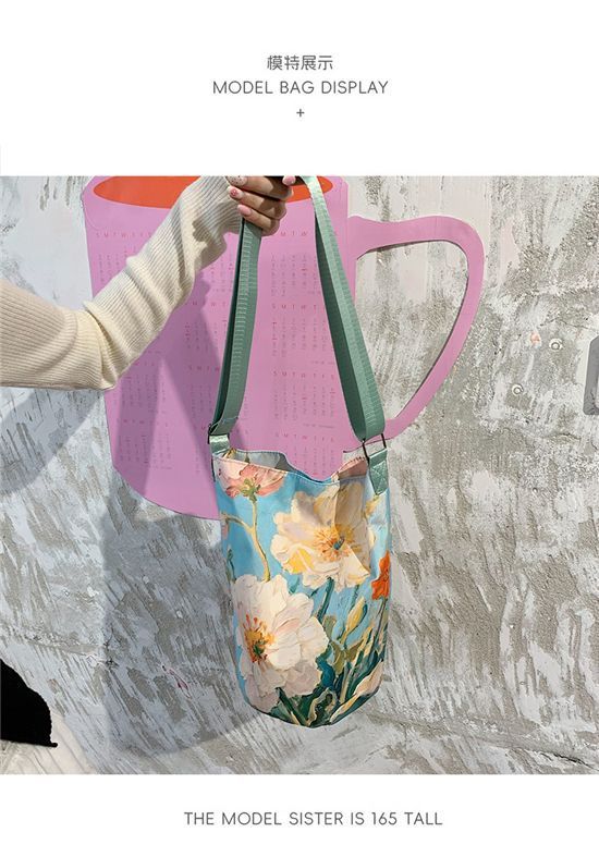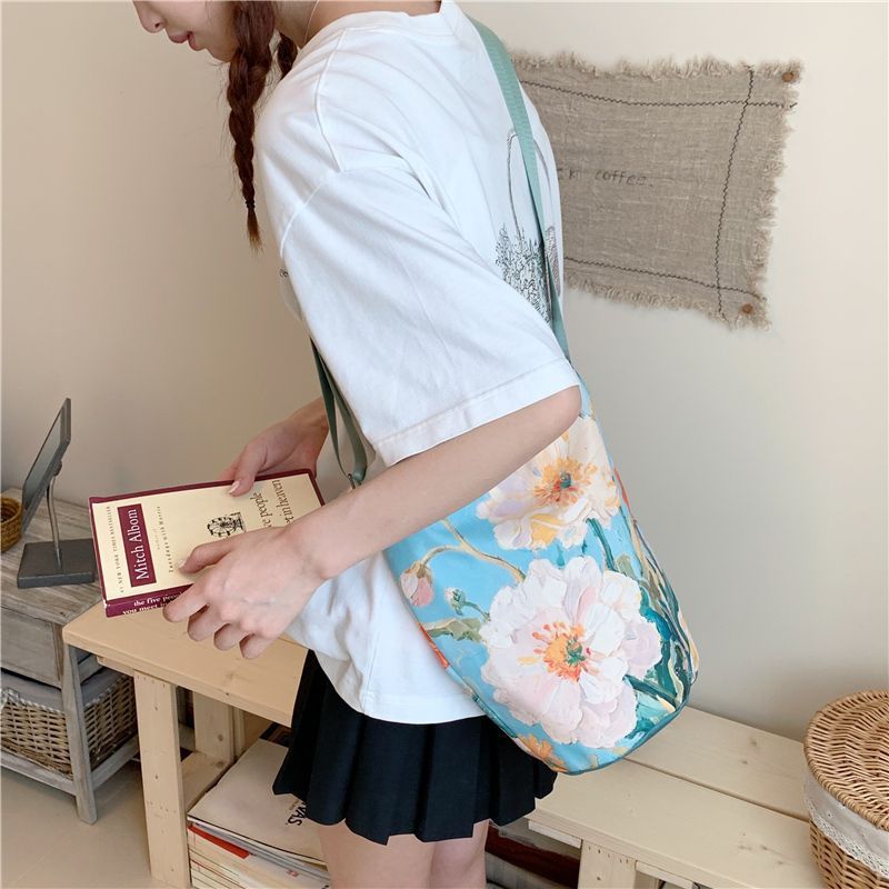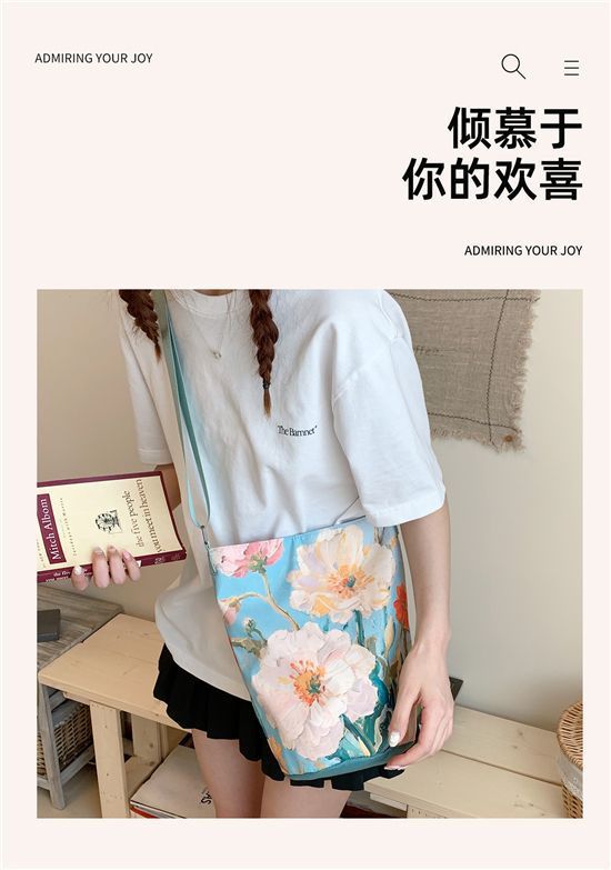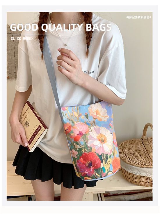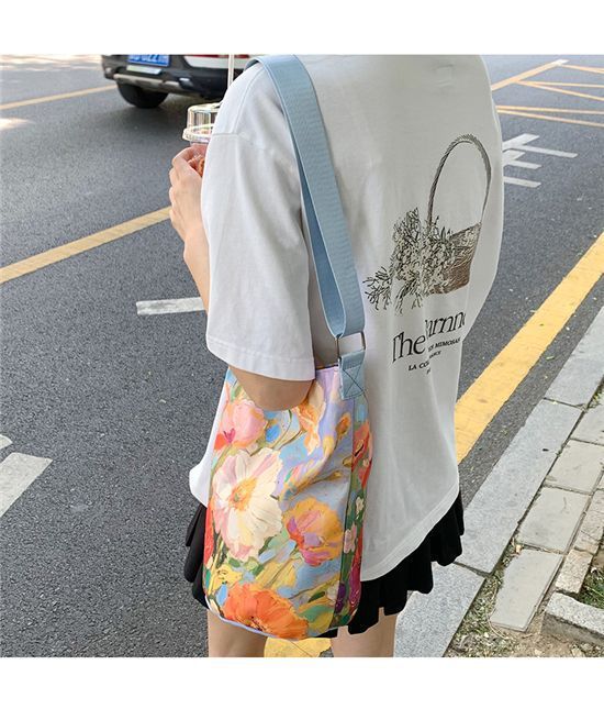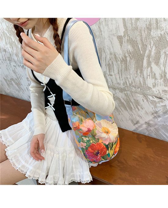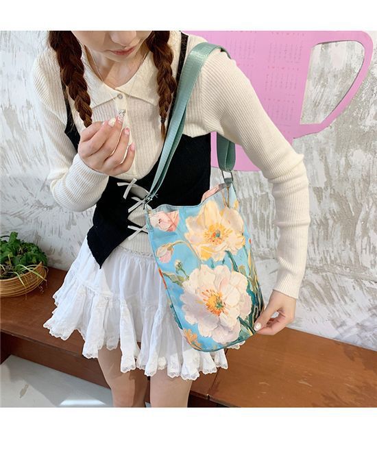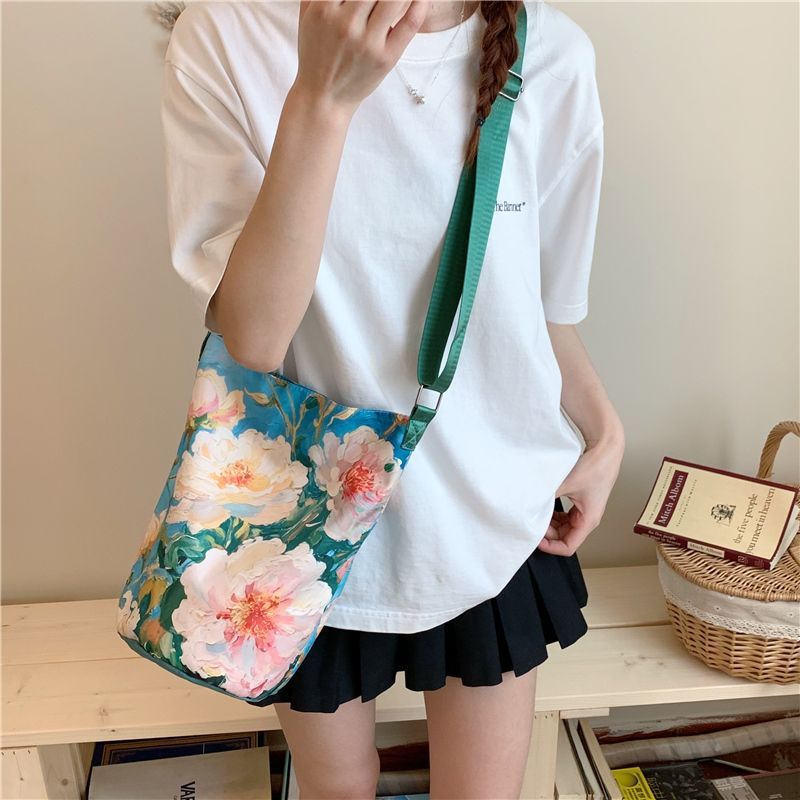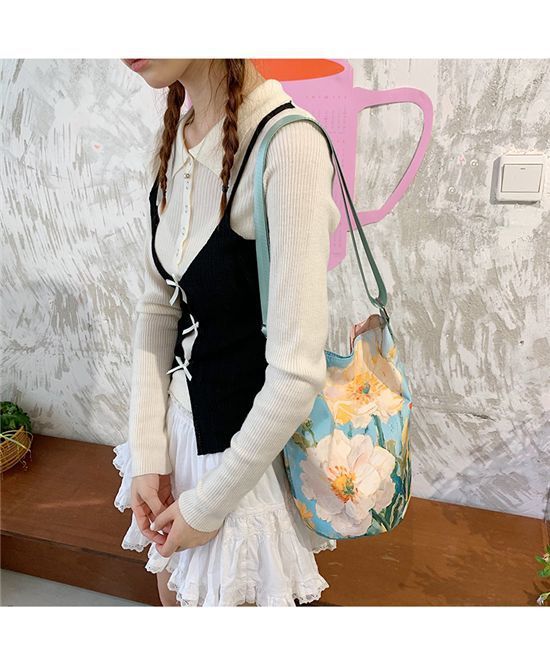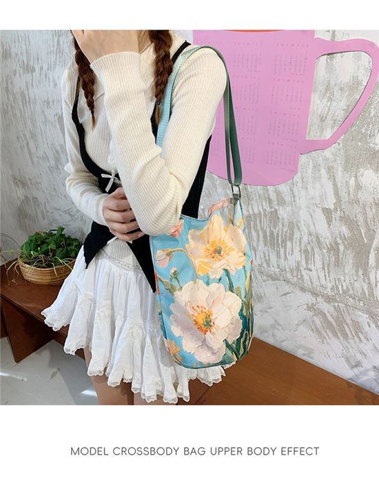 New2025Floral Oil Painting Niche Large Capacity Versatile Commuter Bucket High-end Bag Women's Shoulder Bag Hot Item