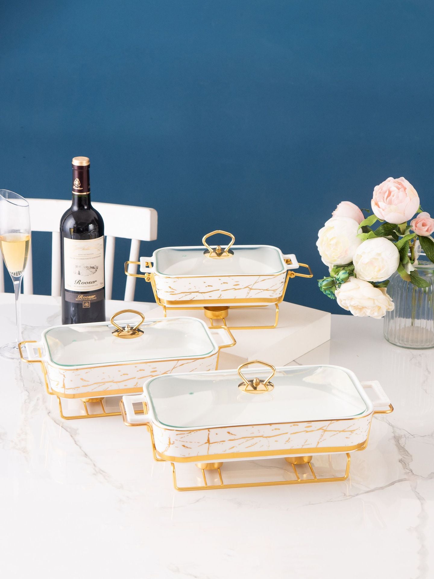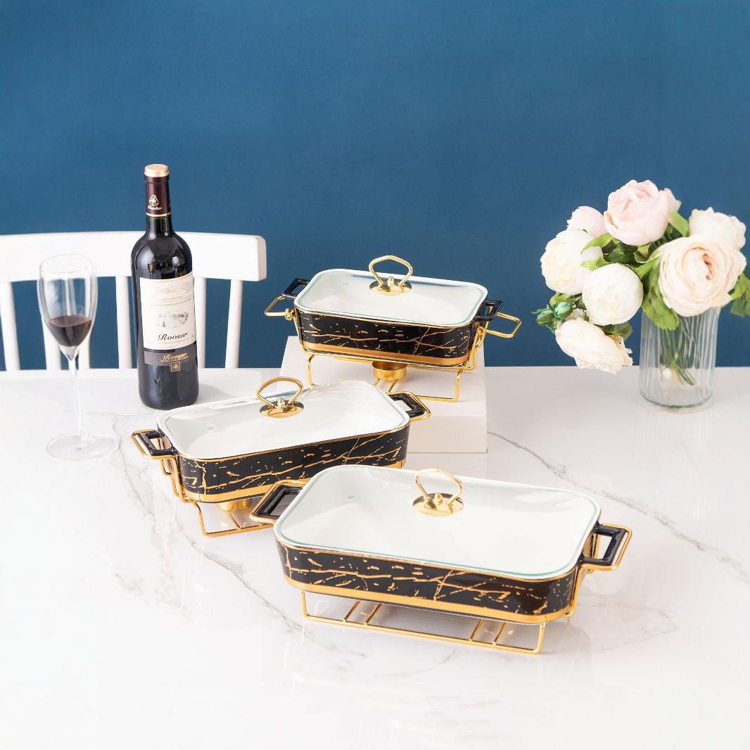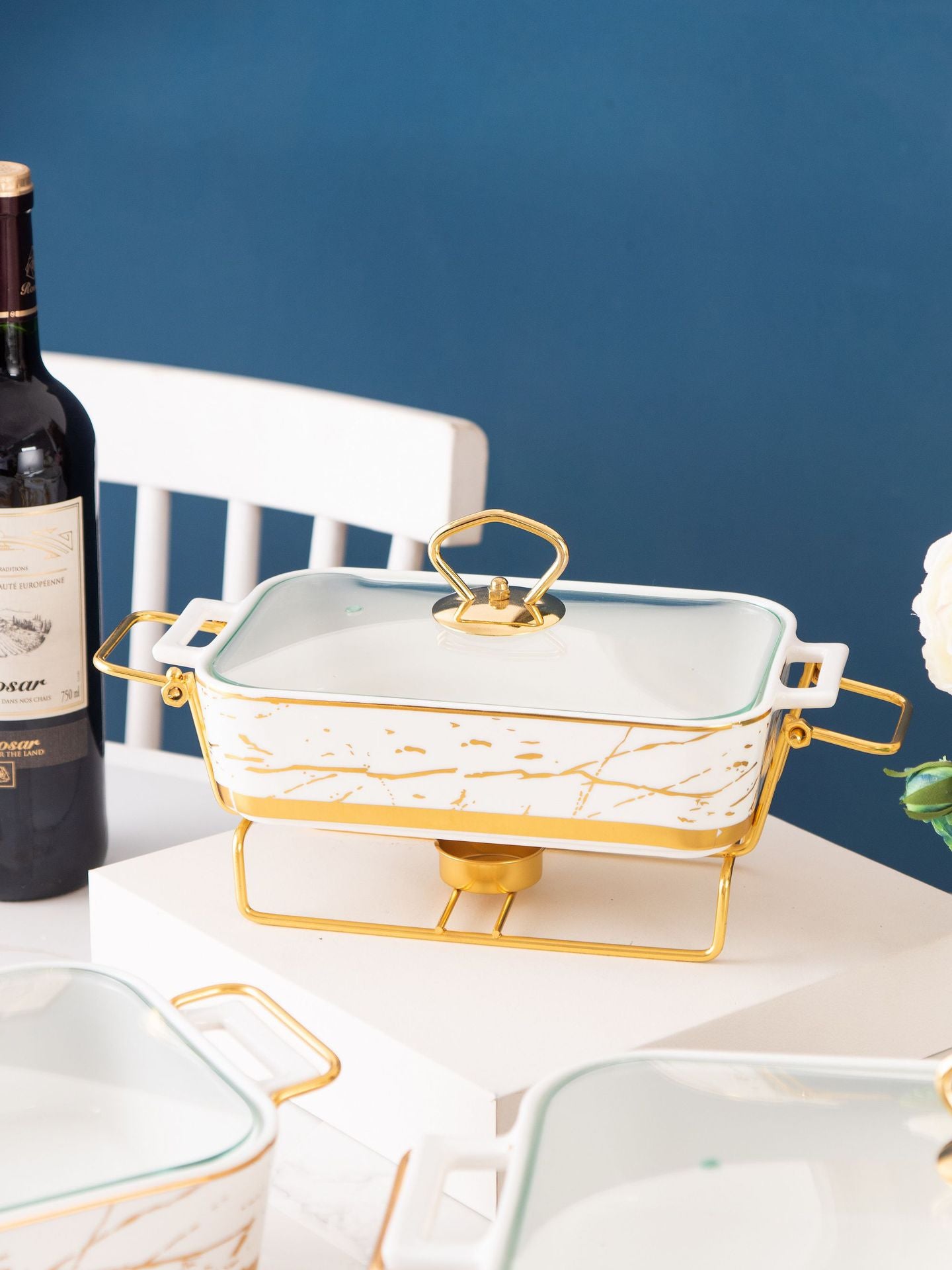 Nordic Rectangular Double Ear Ceramic Pot Baking Pan Luxury Hotel Tableware Candle Heating Creative Household Dry Pot Soup Pot