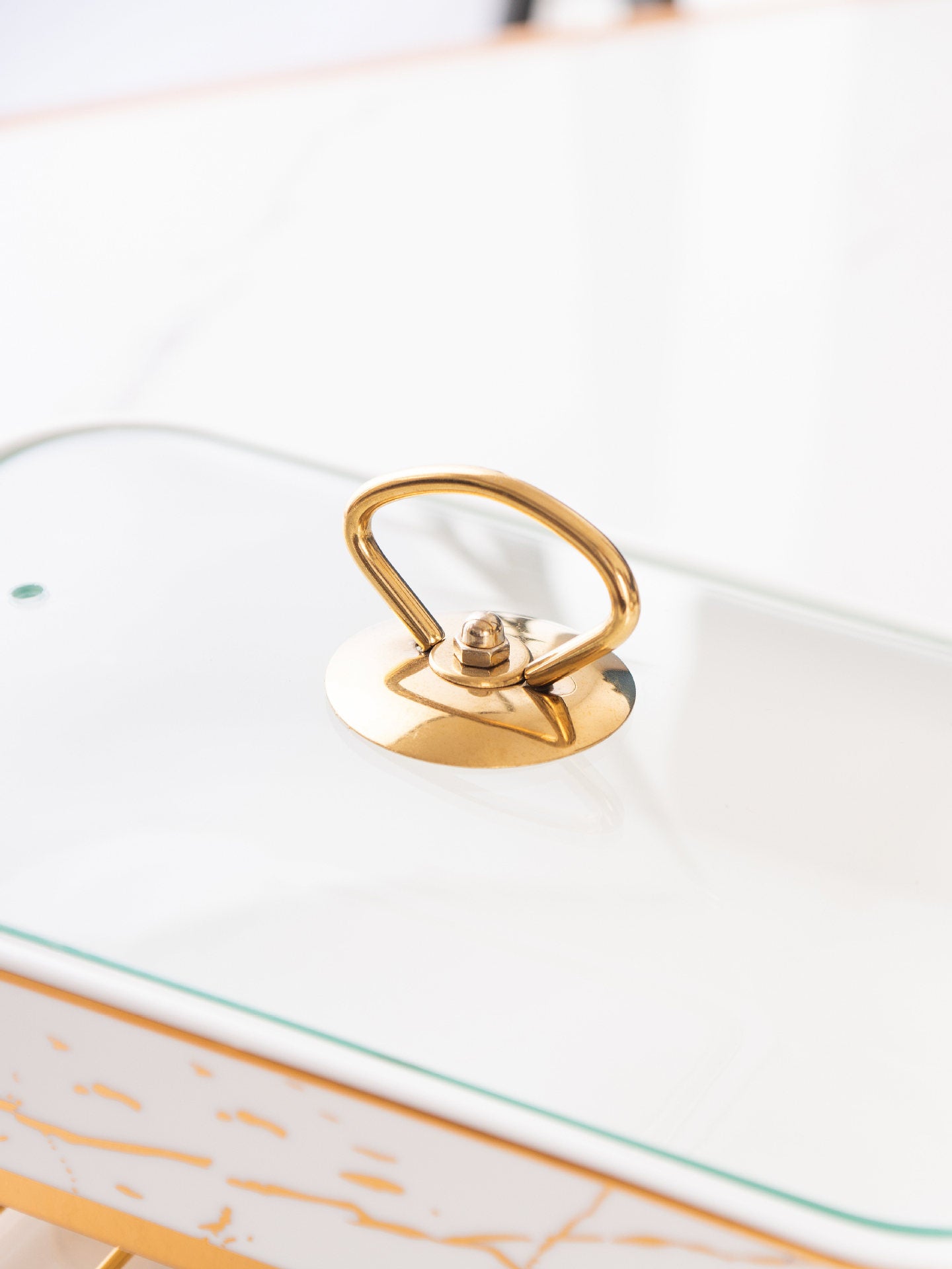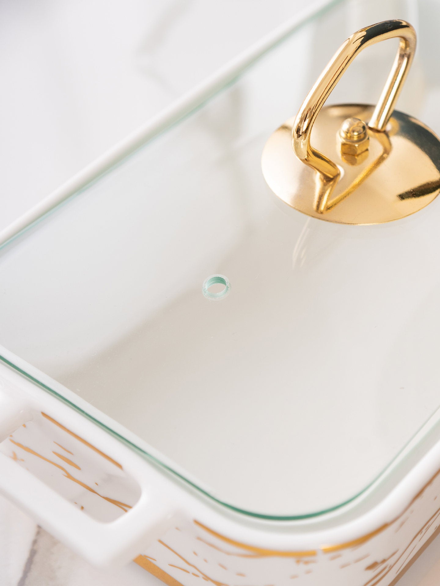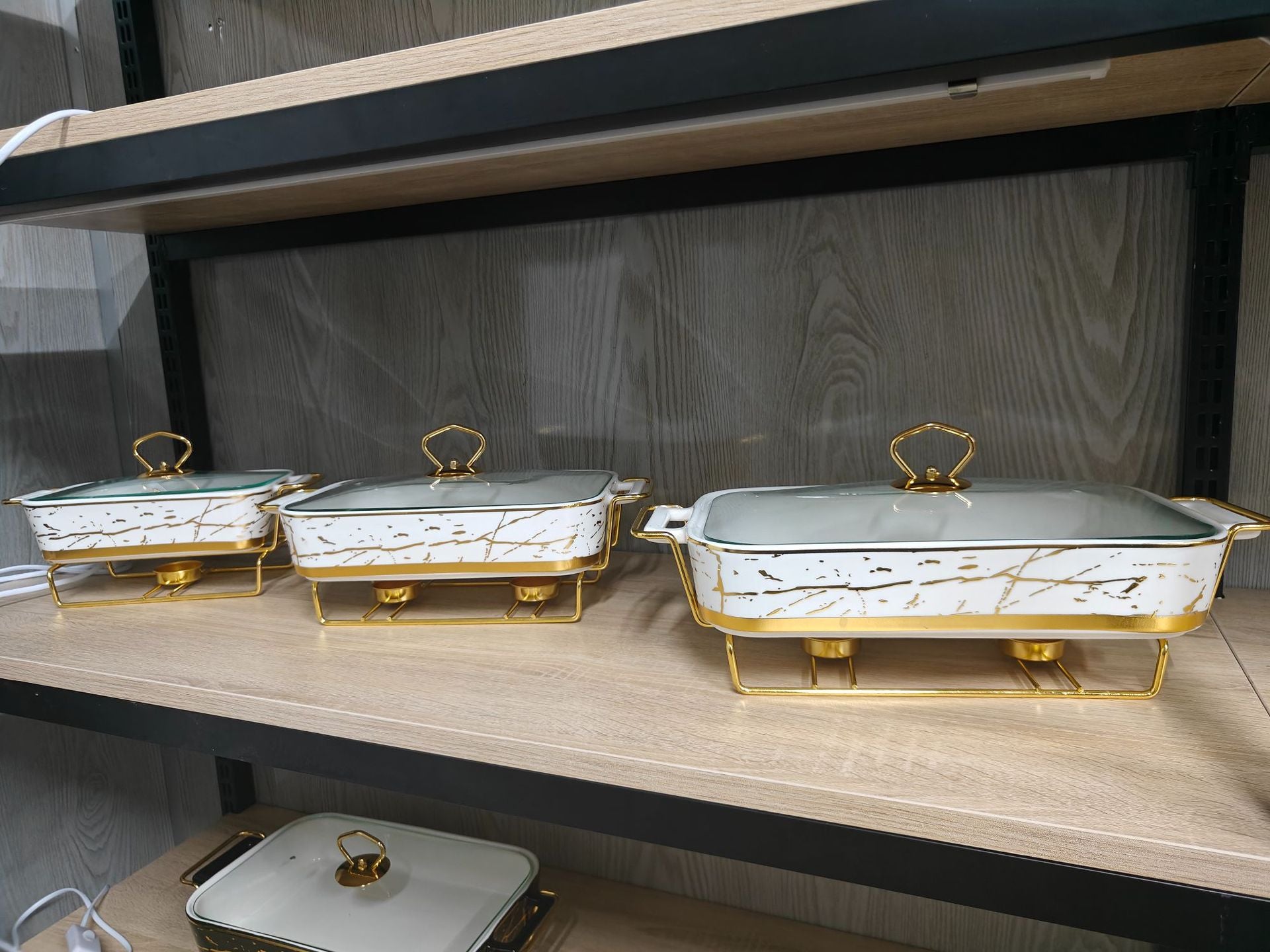 Nordic Rectangular Double Ear Ceramic Pot Baking Pan Luxury Hotel Tableware Candle Heating Creative Household Dry Pot Soup Pot