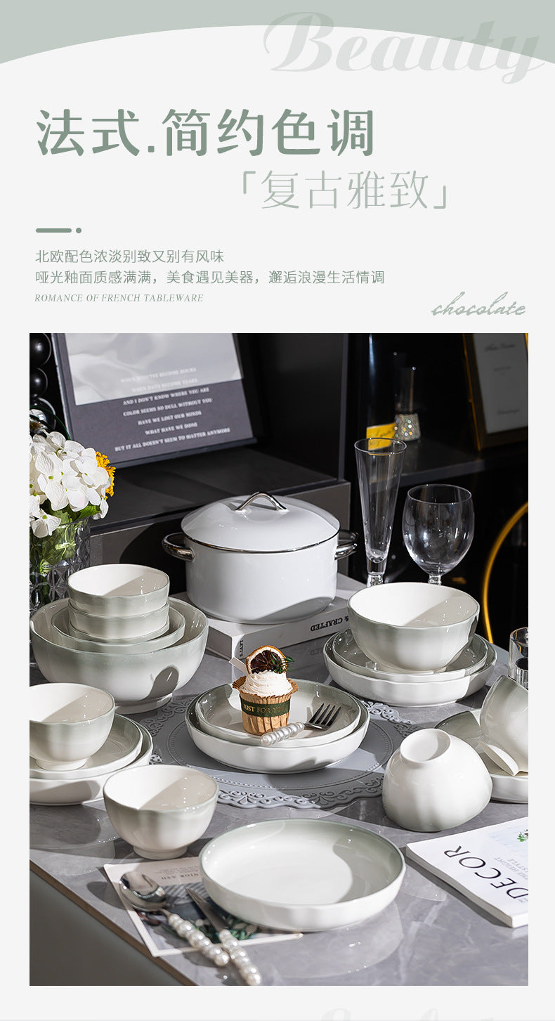 Nordic Style Gradient Color Bowl and Plate Set for Home Use, Thickened Lace Ceramic Tableware, Bowl and Plate Combination, Underglaze Color Bowl Set