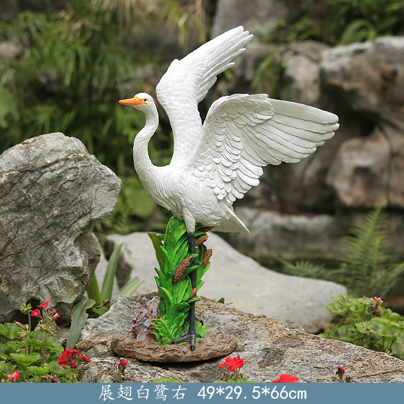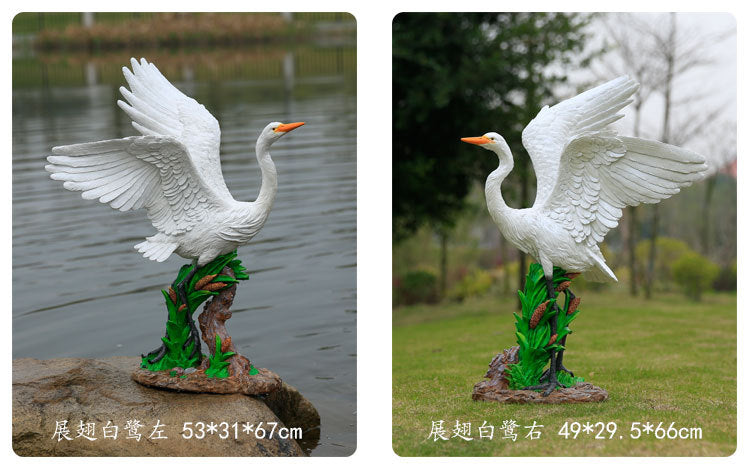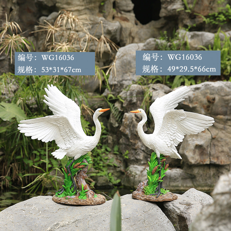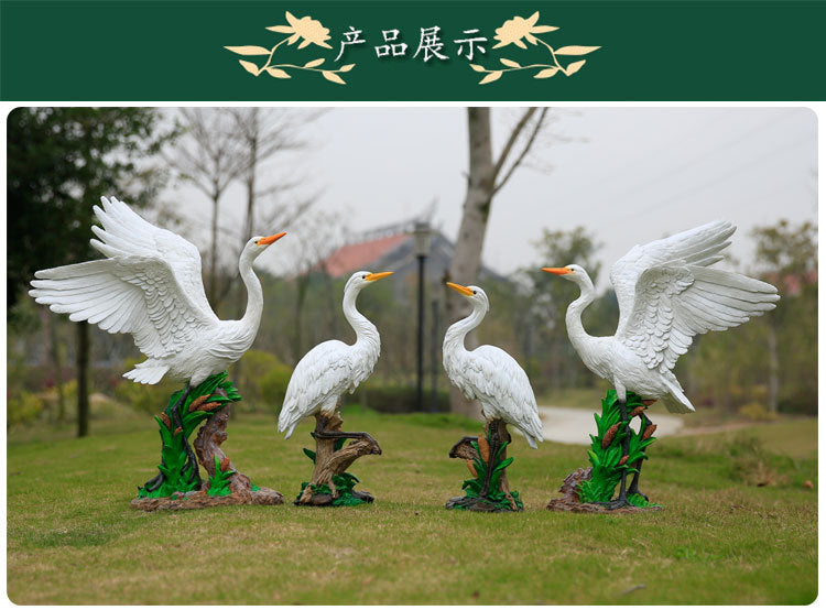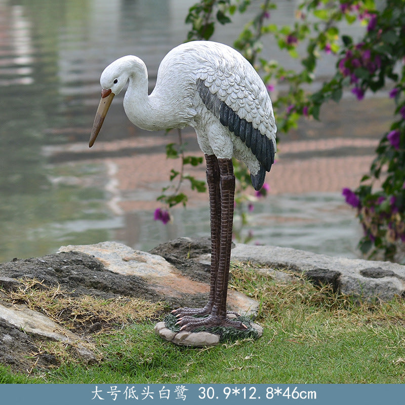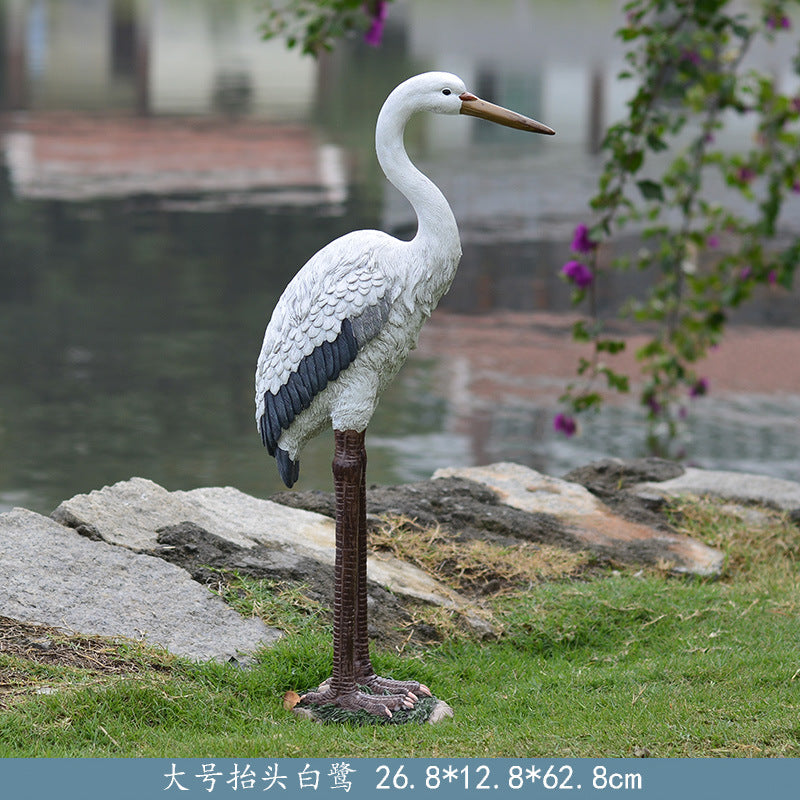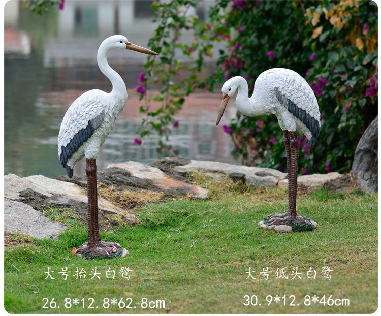 Outdoor Garden Imitation White Egret Fiberglass Ornament Home Courtyard Pool Rockery Resin Sculpture Floor Decoration