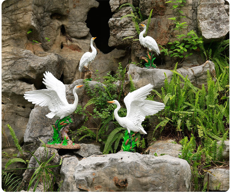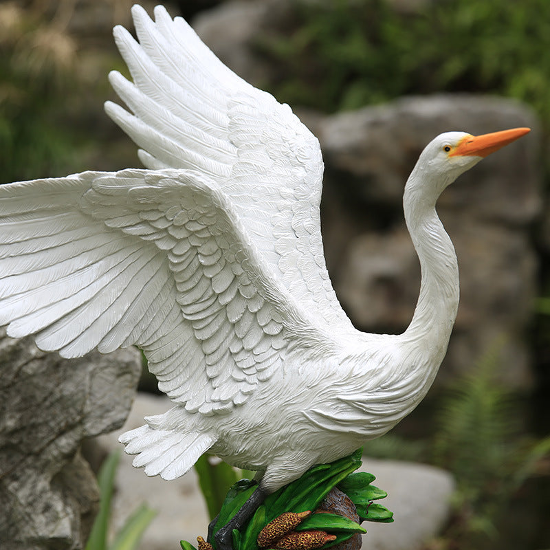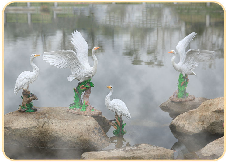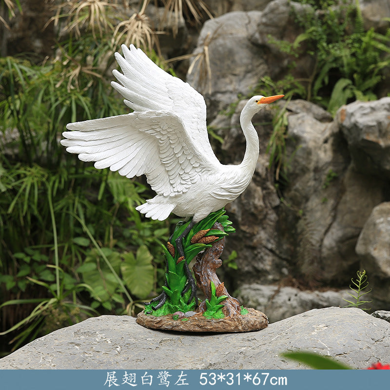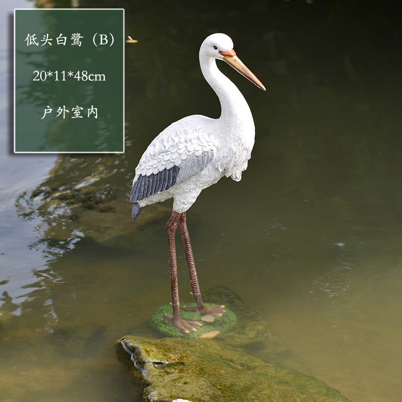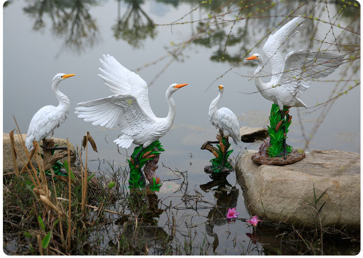 Outdoor Garden Imitation White Egret Fiberglass Ornament Home Courtyard Pool Rockery Resin Sculpture Floor Decoration