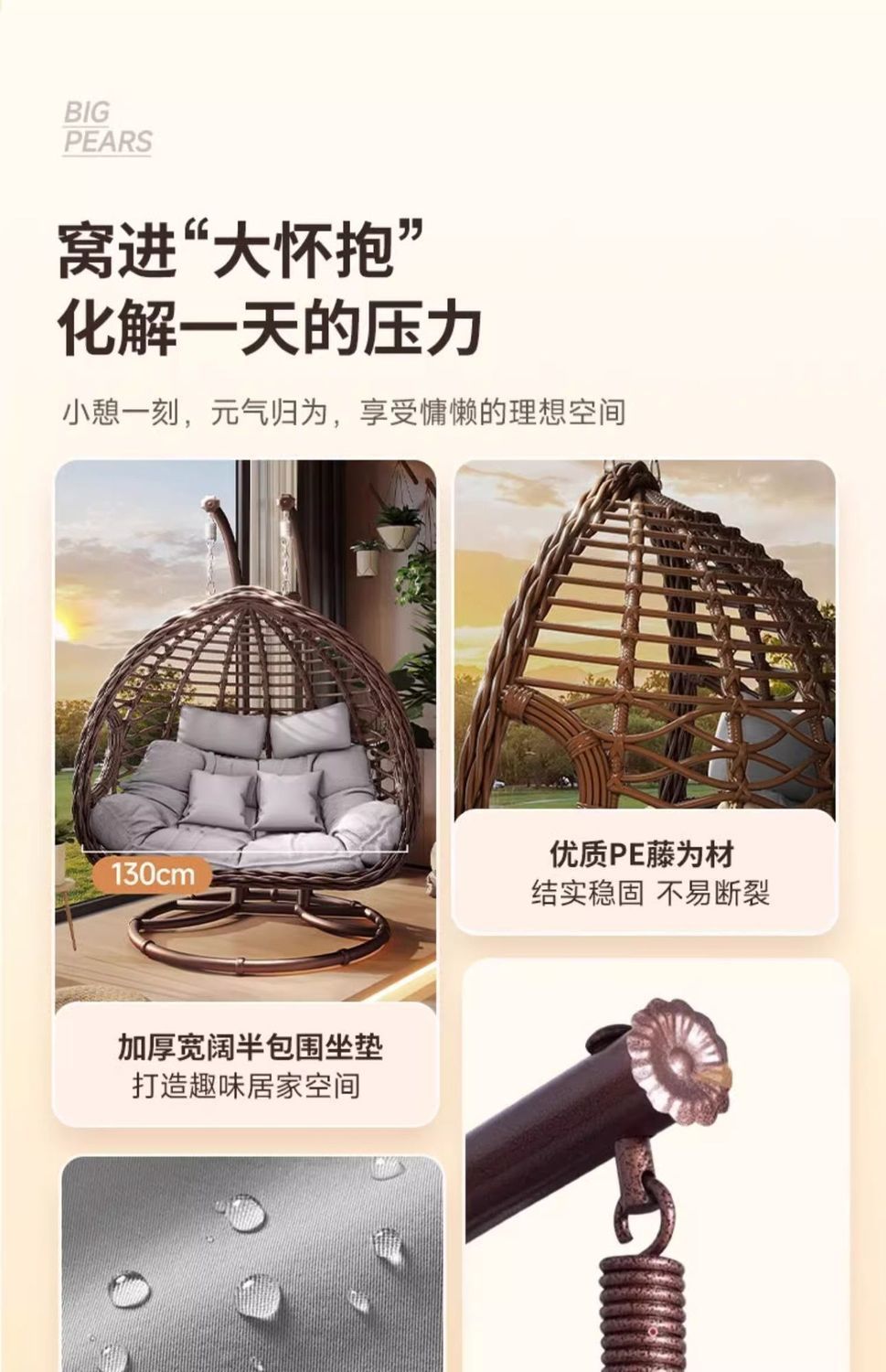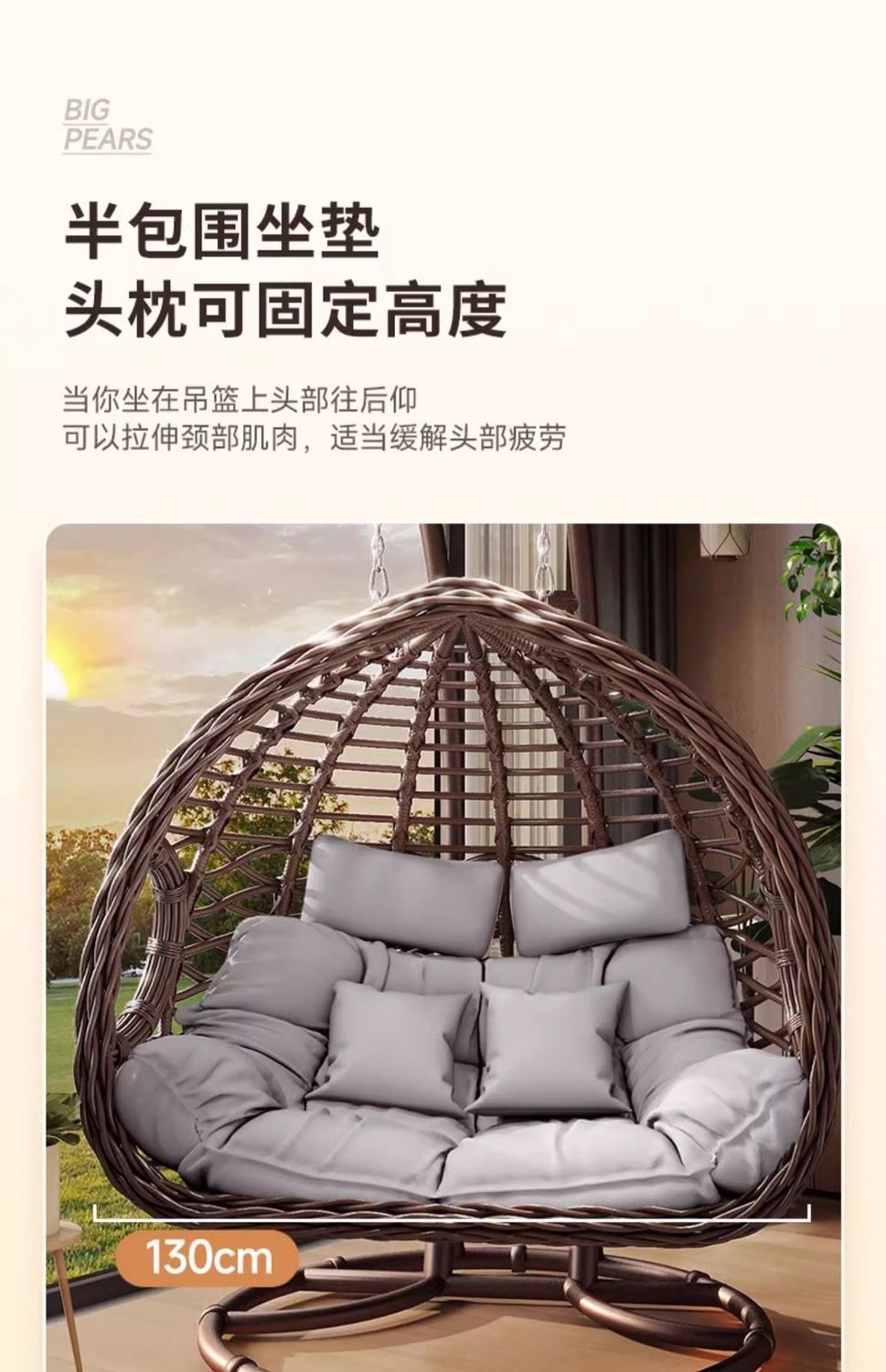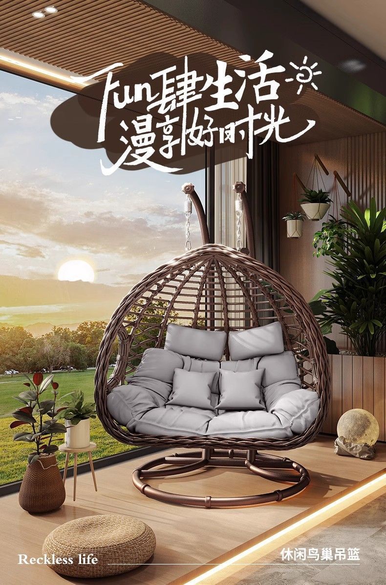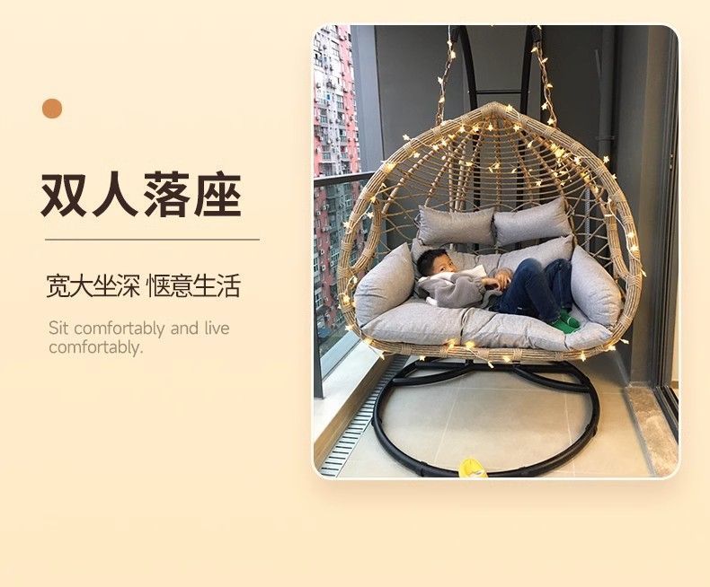 Outdoor Hanging Basket Chair Swing Courtyard Double Hanging Chair Home Balcony Indoor Internet Celebrity Bird's Nest Hammock Rattan Chair Rocking Chair