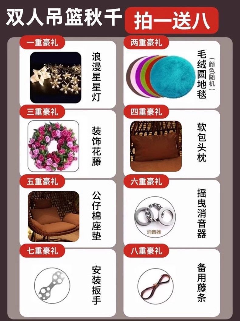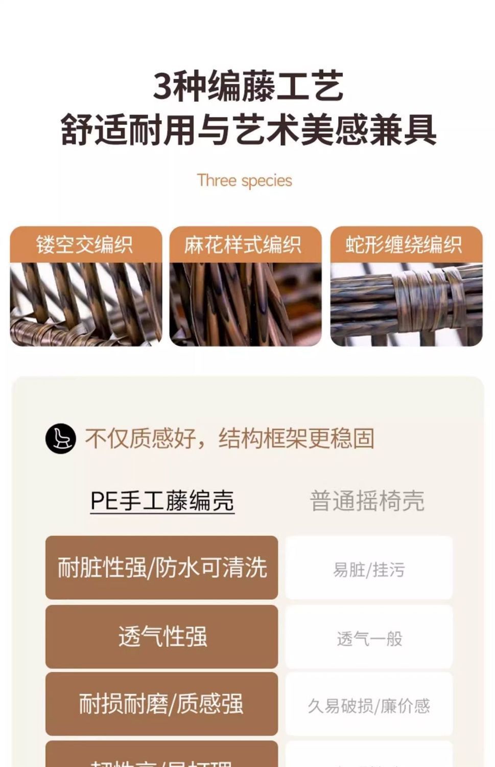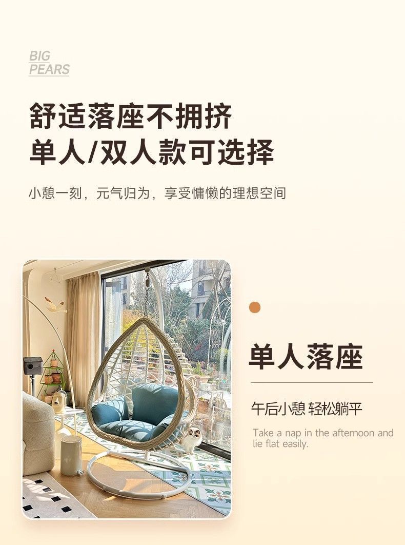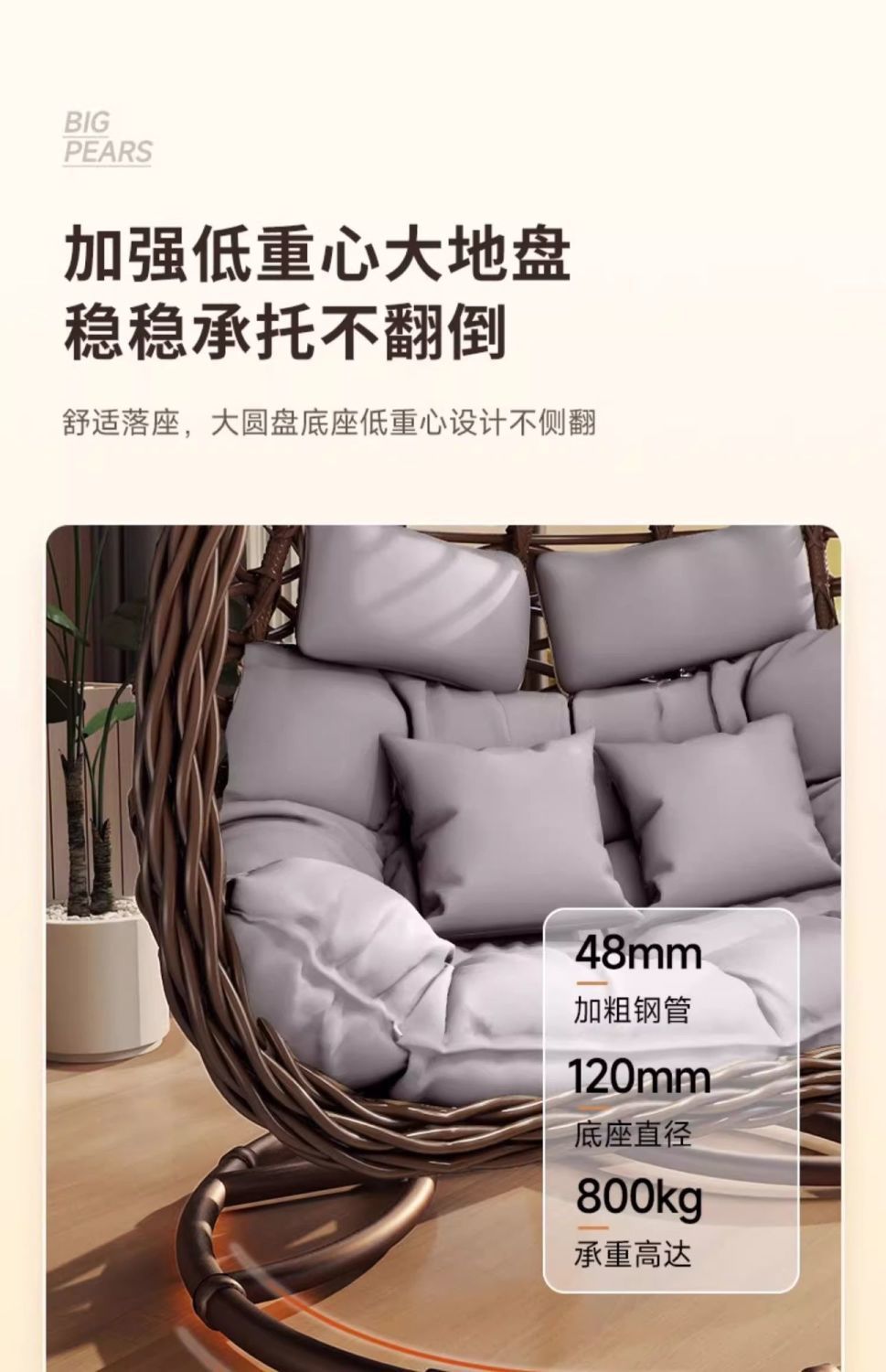 Outdoor Hanging Basket Chair Swing Courtyard Double Hanging Chair Home Balcony Indoor Internet Celebrity Bird's Nest Hammock Rattan Chair Rocking Chair