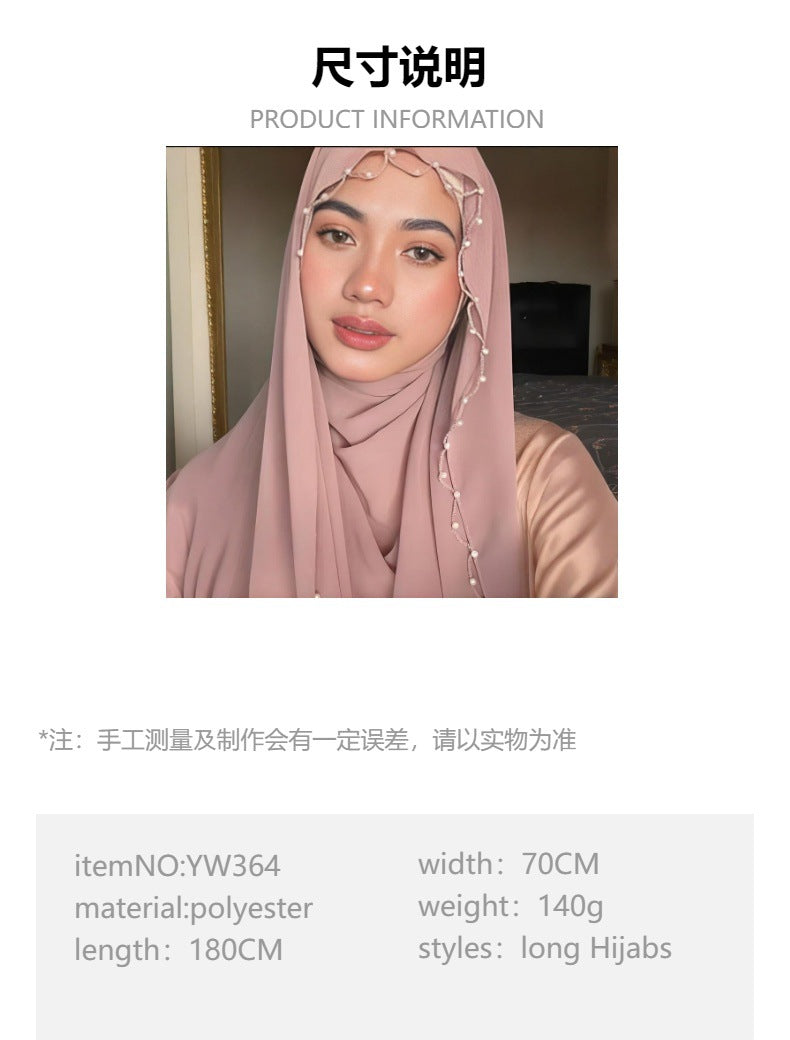 Pearl Chain Beaded Shawl Chiffon Hijab Scarf Women Glitter