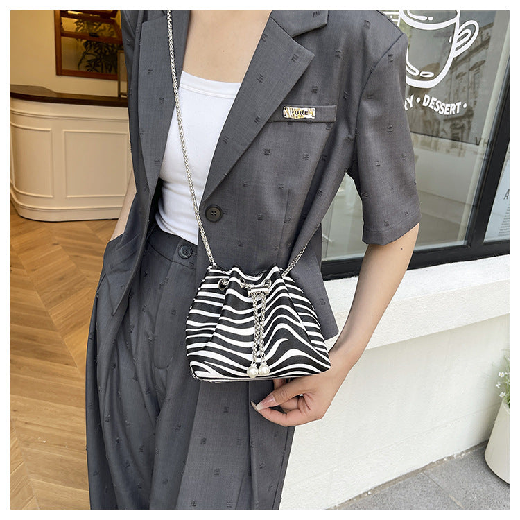 Personalized Chain Large Capacity Stylish Fashion Leopard Print Drawstring Winter2024New Zebra Pattern Shoulder Bucket Bag