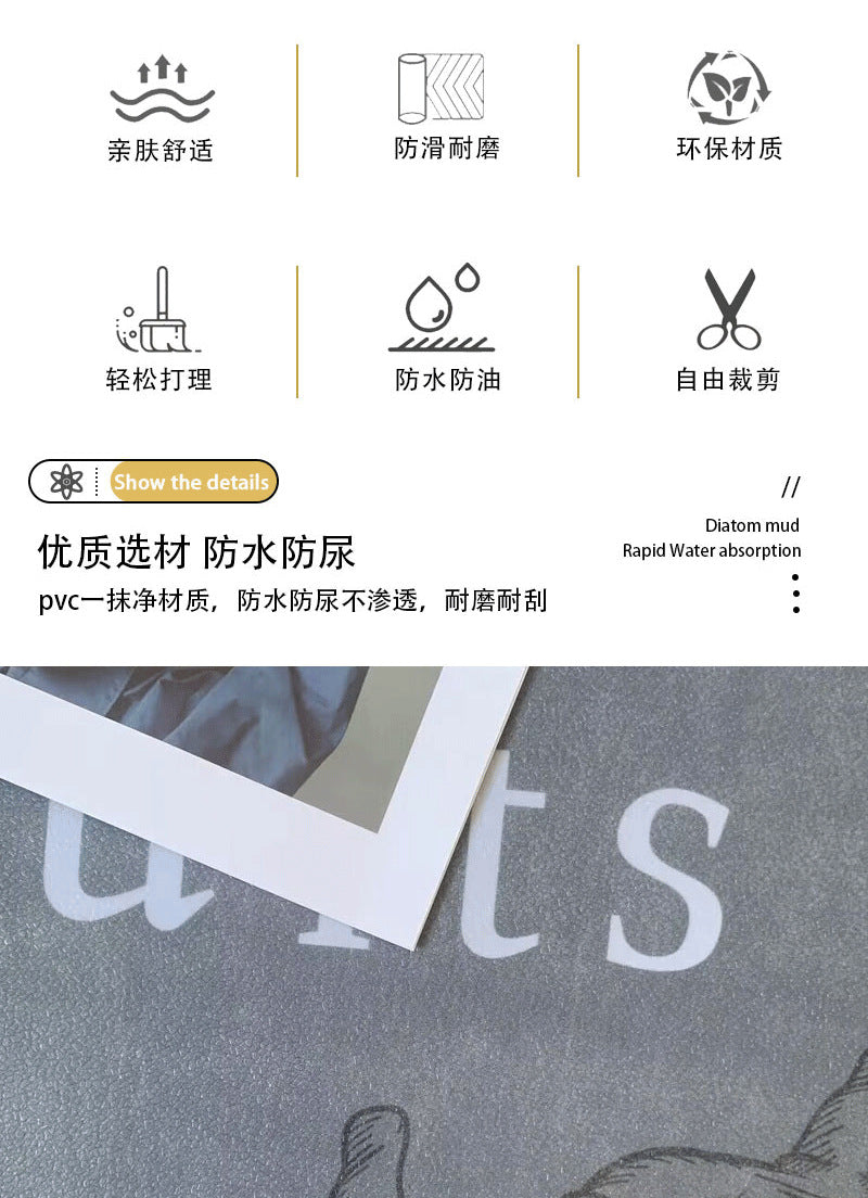 Pet wash-free floor mat waterproof and urine-proof pvc Dog Anti-Slip Mat Cooling Dog Fence Dog Cat Leather Floor Mat