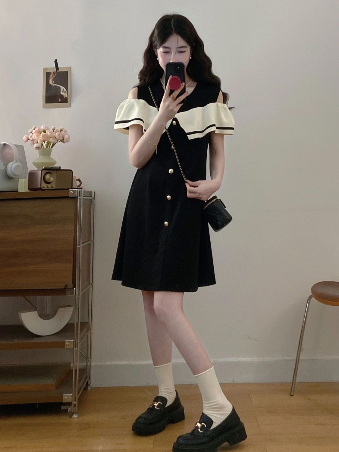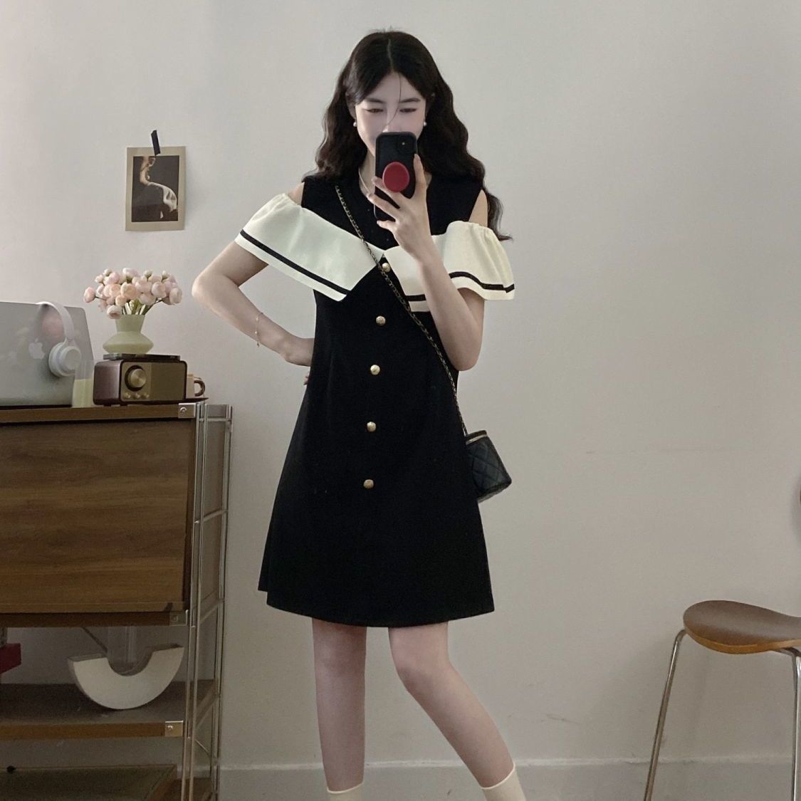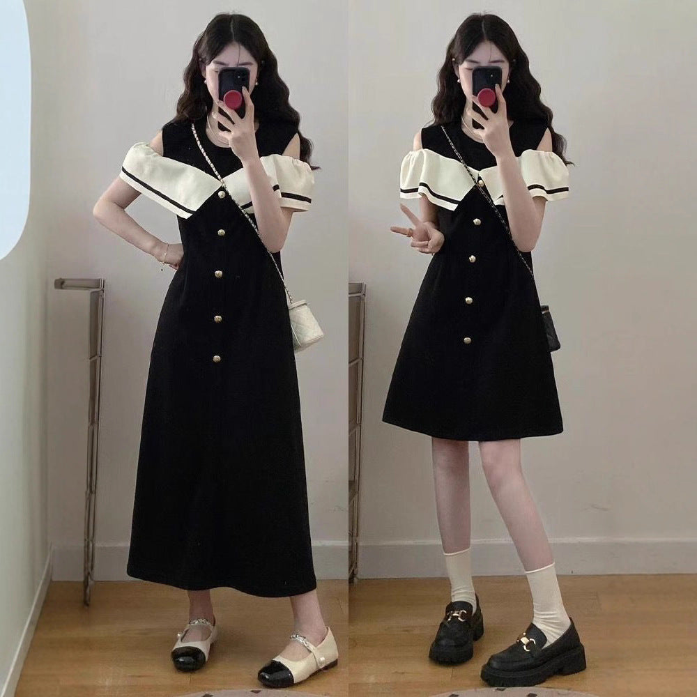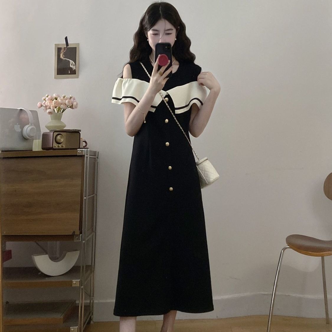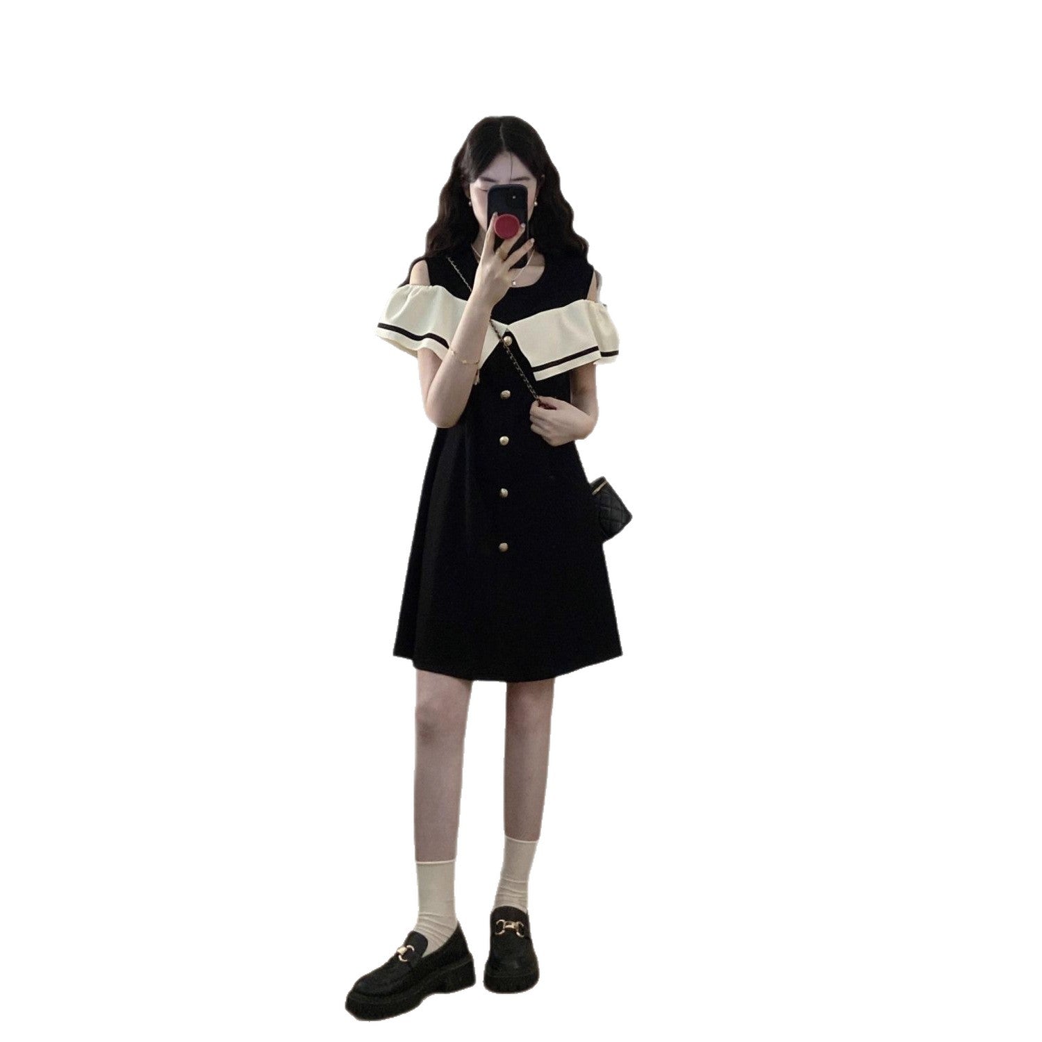 Plus Size Fat mm Korean Style Elegant Ruffled Off-Shoulder Short Sleeve Dress Women's Summer Fashionable Youthful Mid-Length Dress