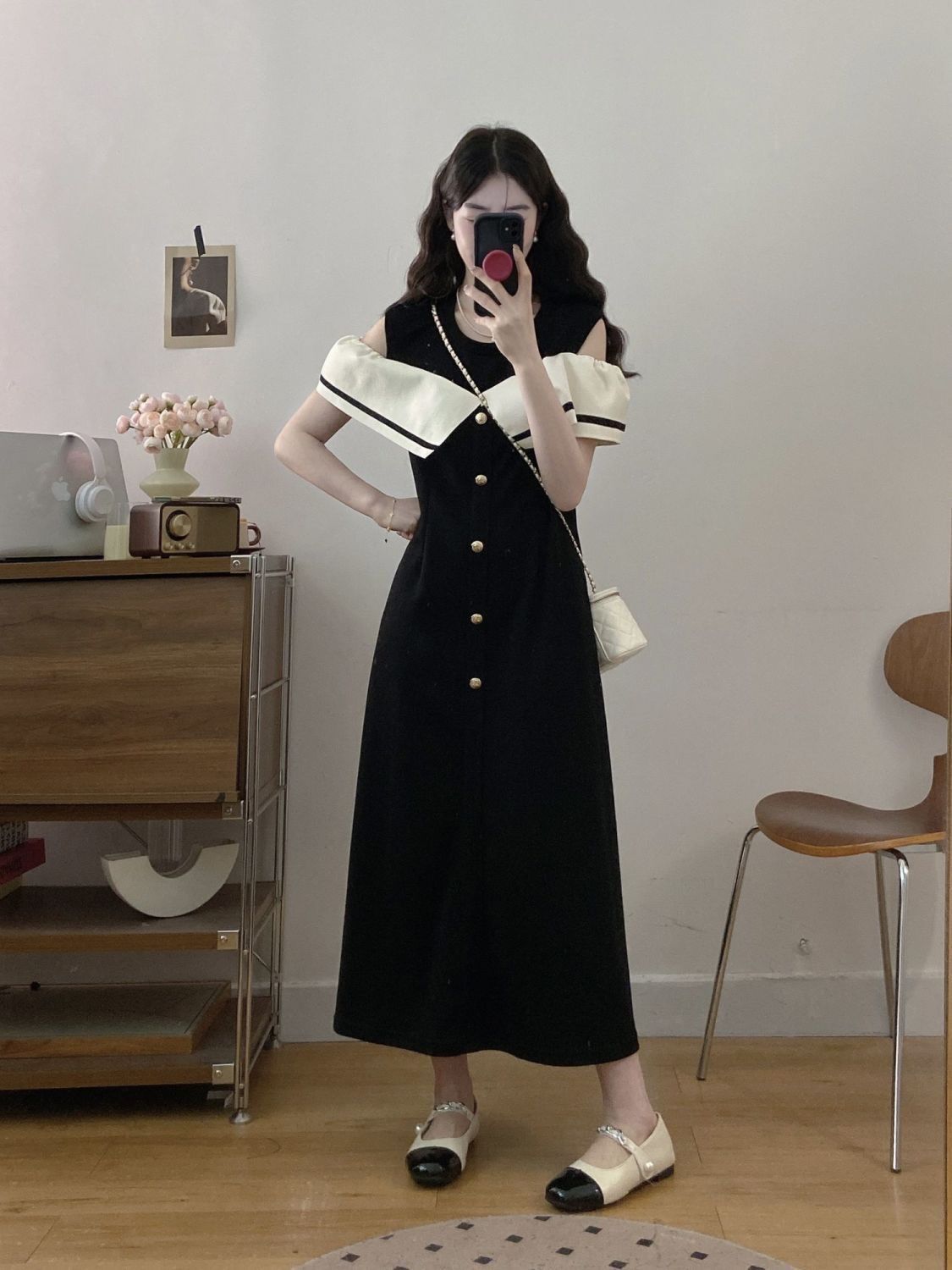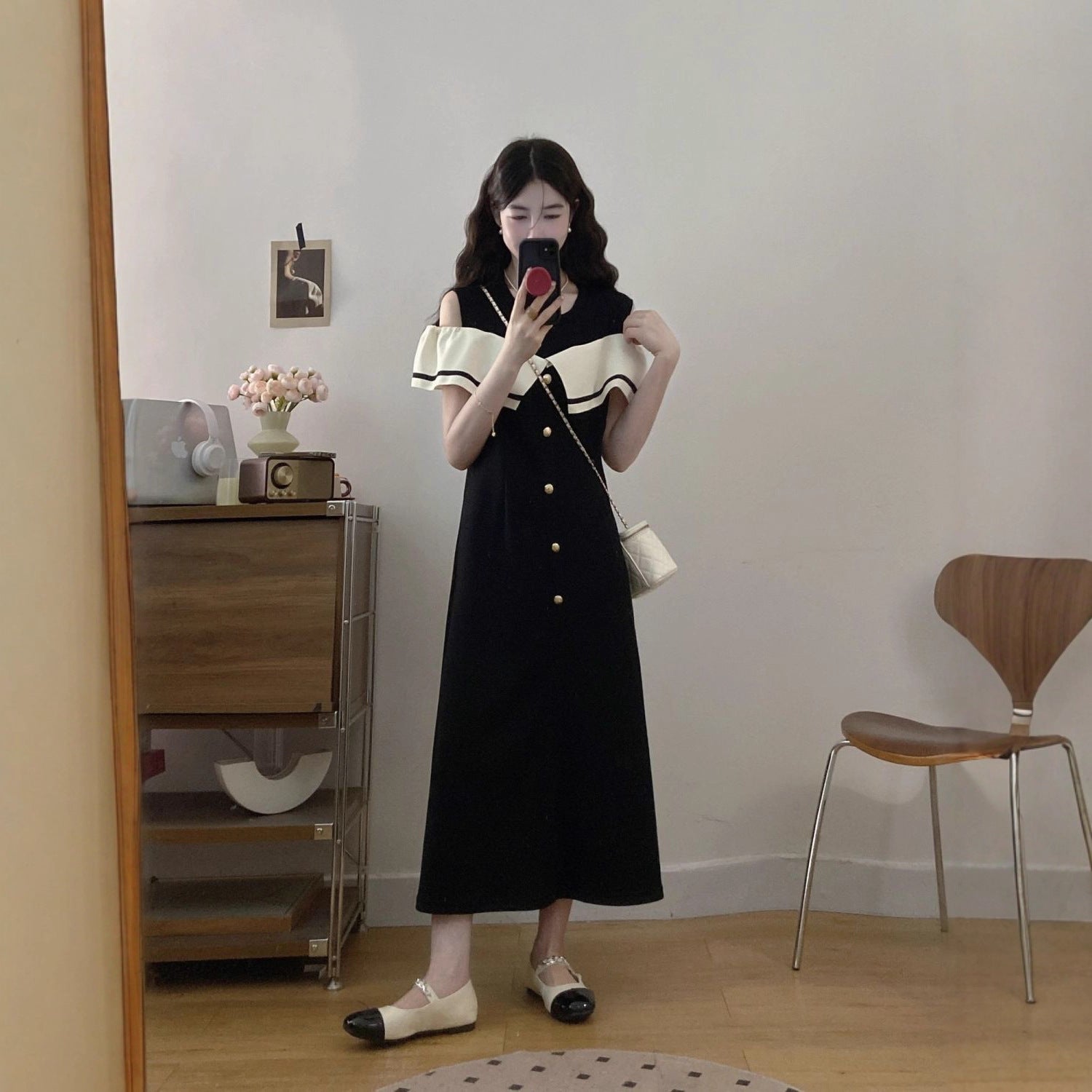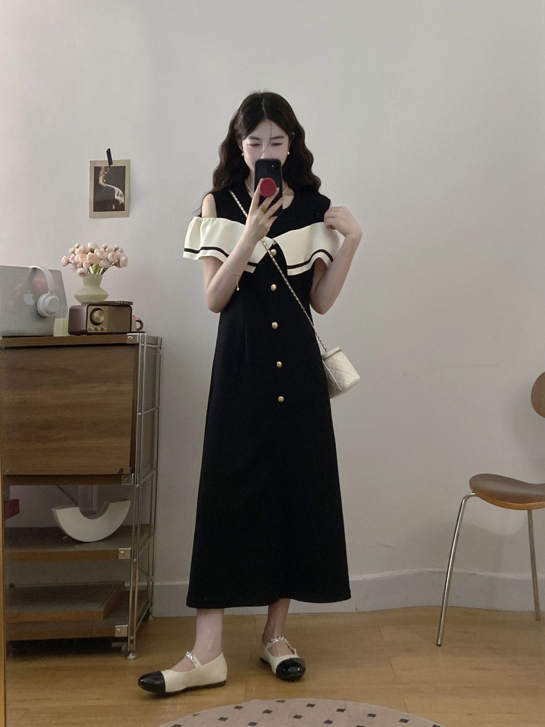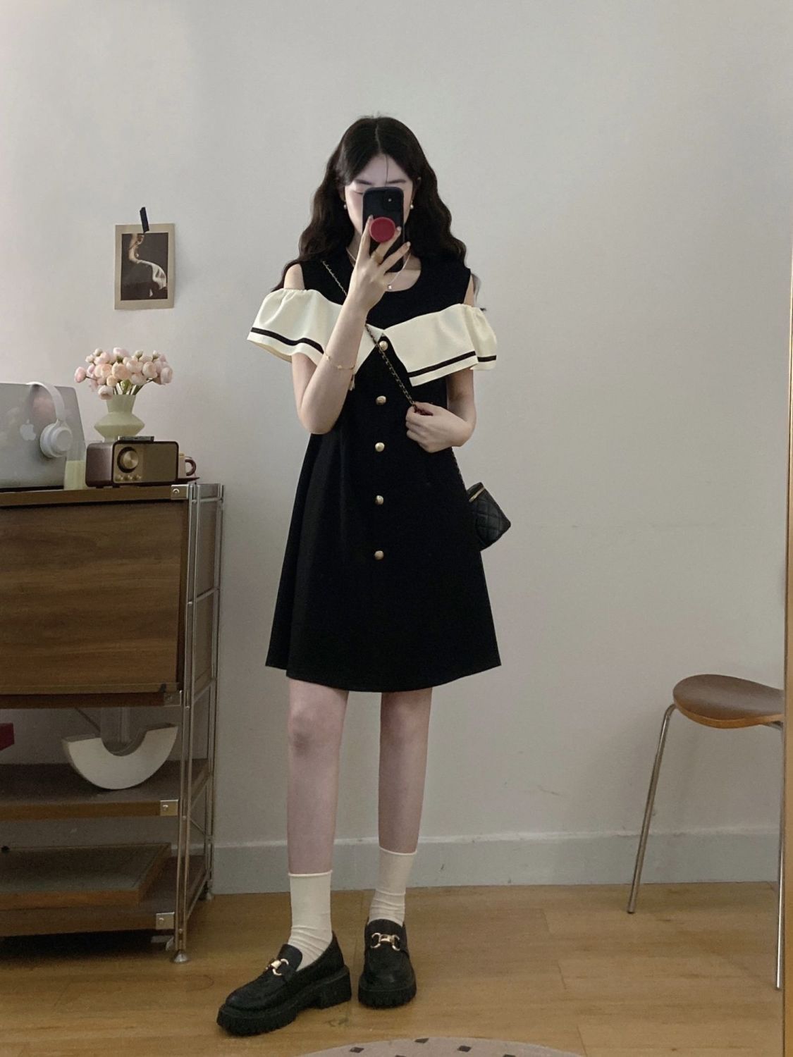 Plus Size Fat mm Korean Style Elegant Ruffled Off-Shoulder Short Sleeve Dress Women's Summer Fashionable Youthful Mid-Length Dress