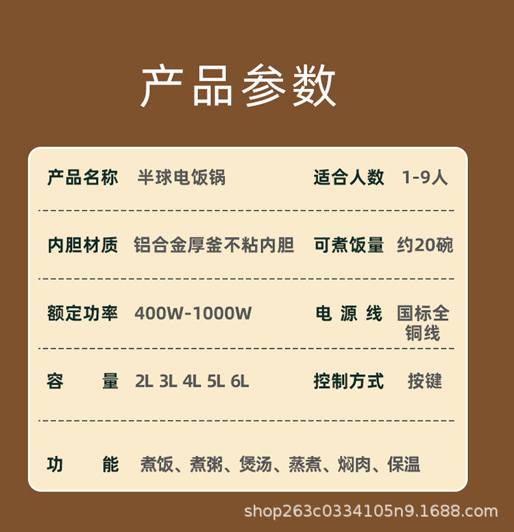 Positive Hemisphere Rice Cooker2-5L Home Use Xishi Pot Old Style Simple Small Size1-3People4Non-Stick Rice Cooker with Steam Cooking Function