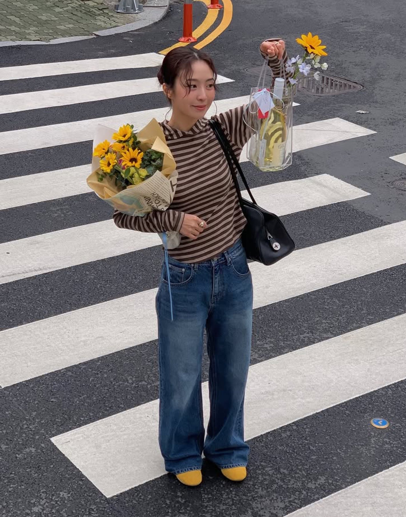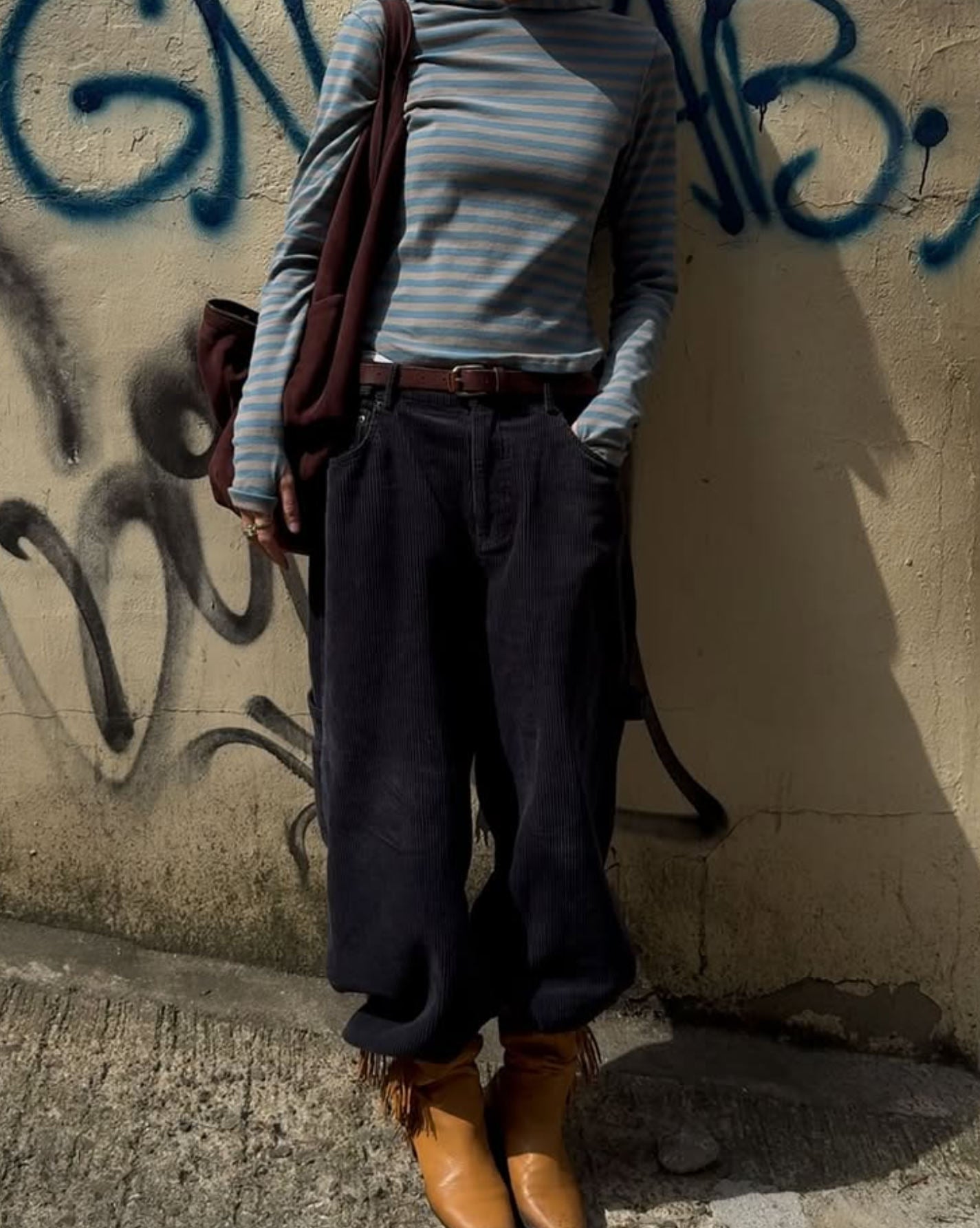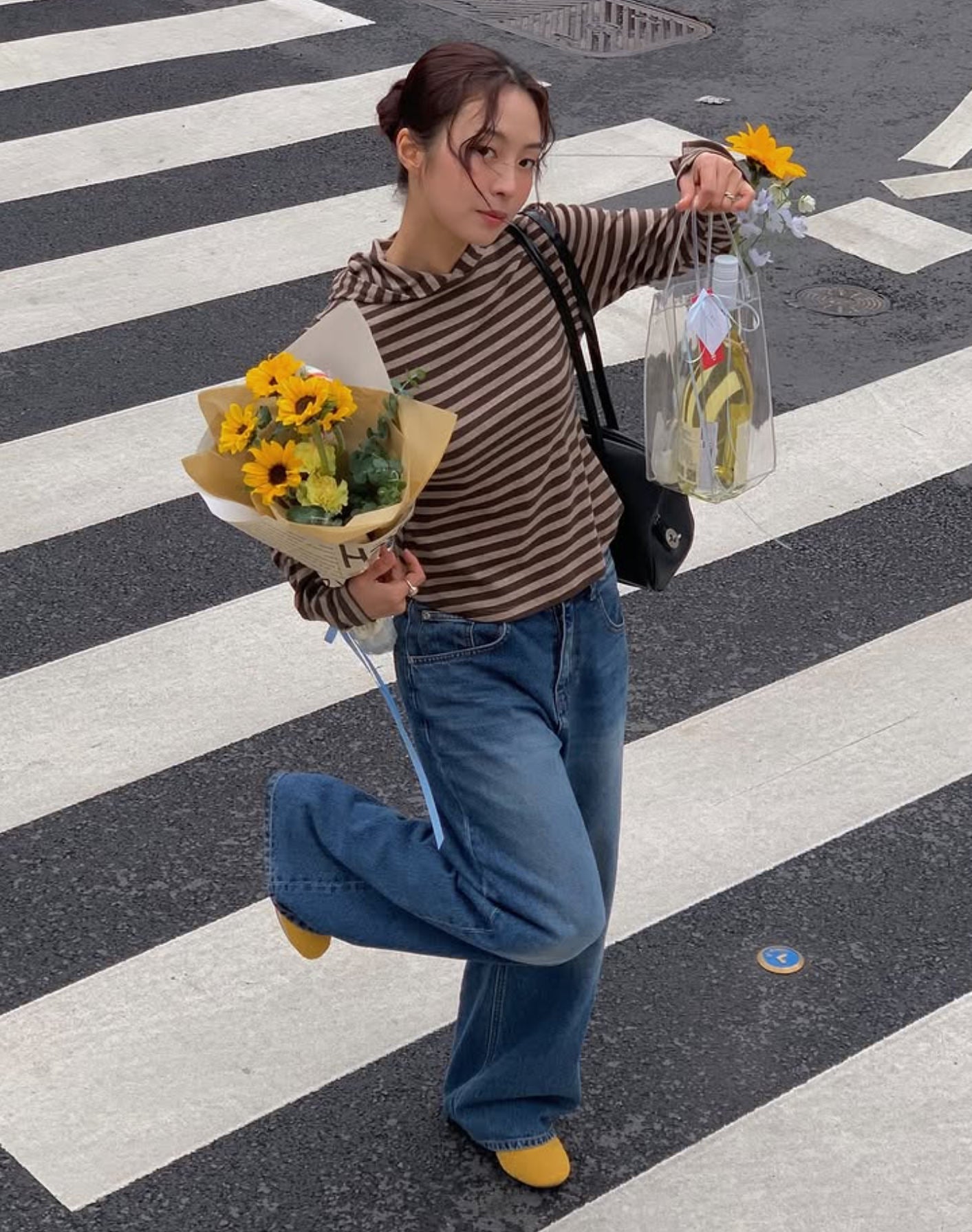 Pre-Sale】2025New Autumn Korean Dongdaemun Tian Xiwei Same Style Striped Hooded Sweatshirt TS16771