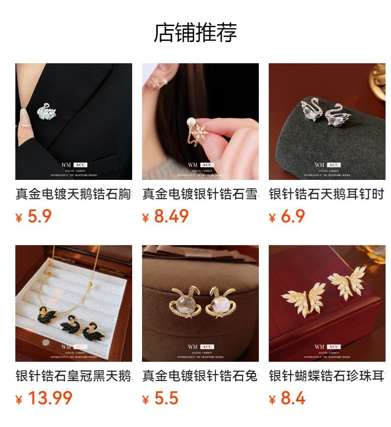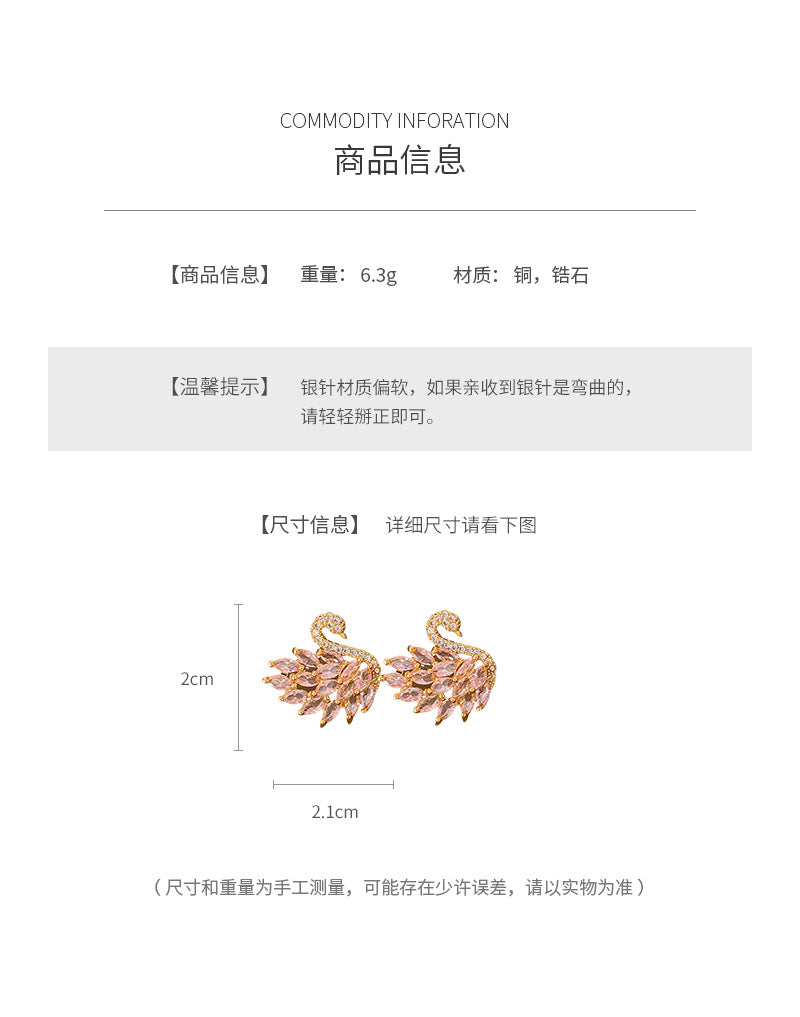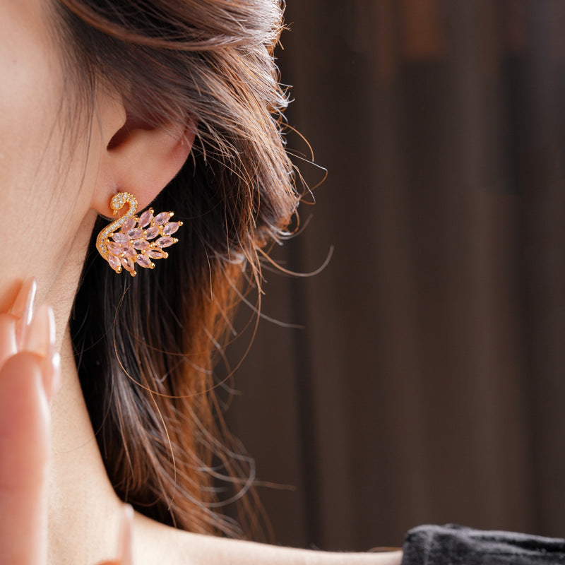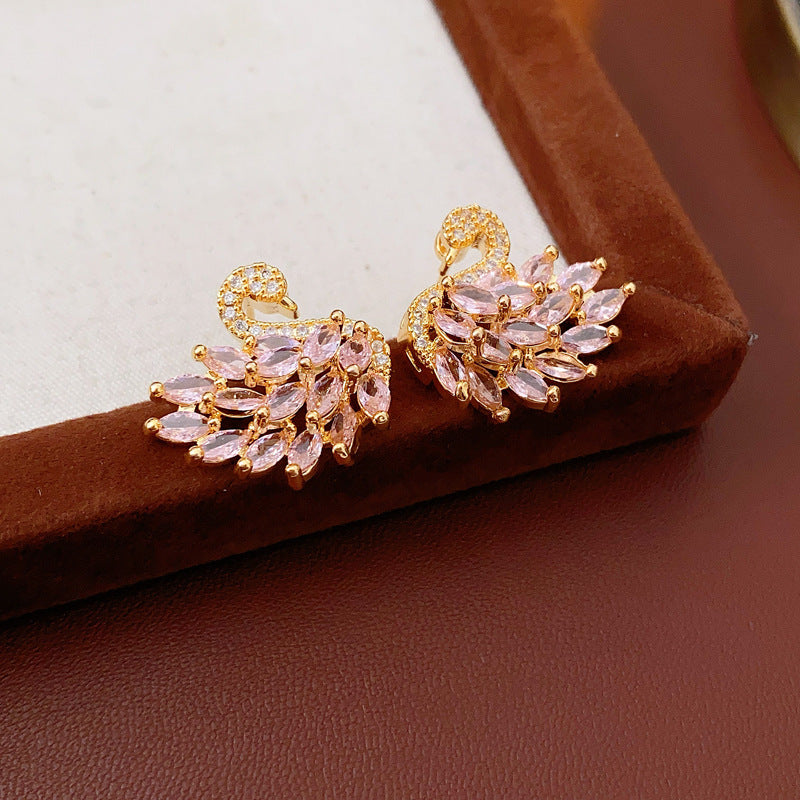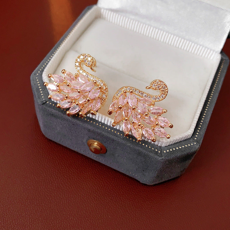 Real Gold Plated Silver Needle Zircon Swan Earrings Niche Light Luxury Exquisite ins Earrings with a high-end feel versatile for women
