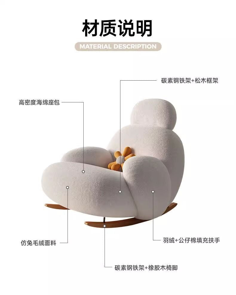 Rest Area Lazy Sofa Chair Can Be Used for Two or One Person Nordic Style ins Comfortable Rocking Chair for Living Room, Balcony, Bedroom, Home Use