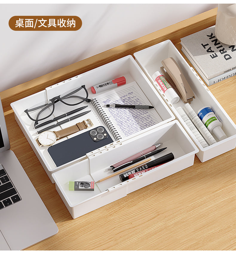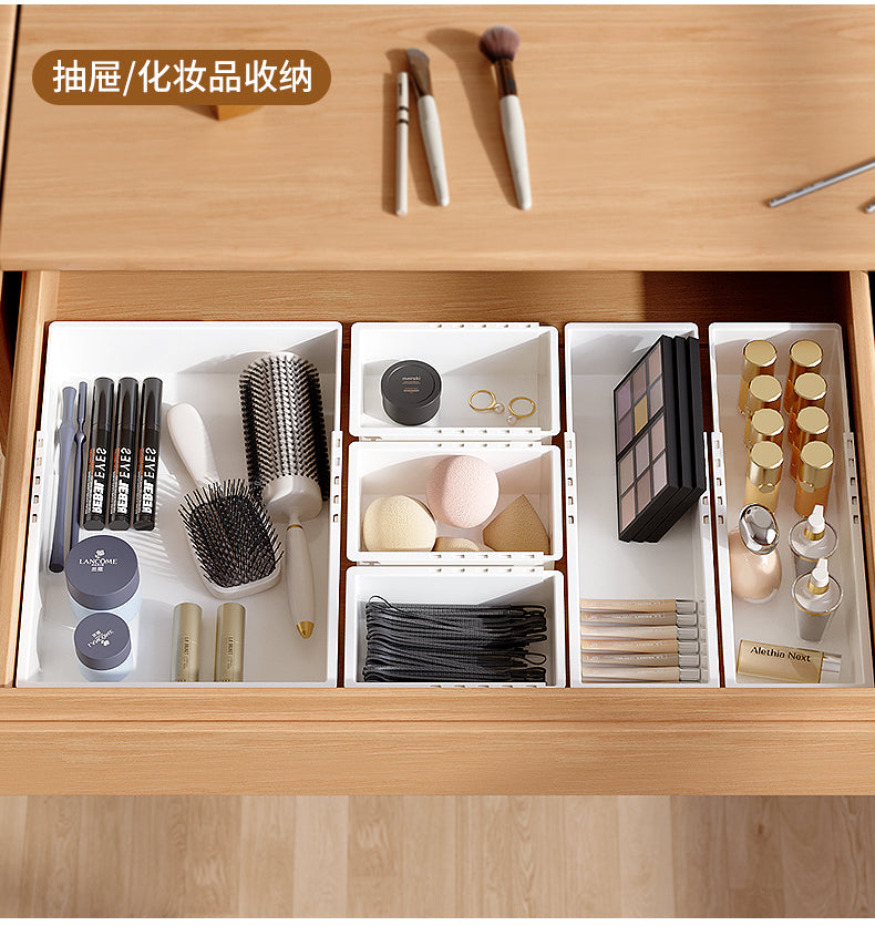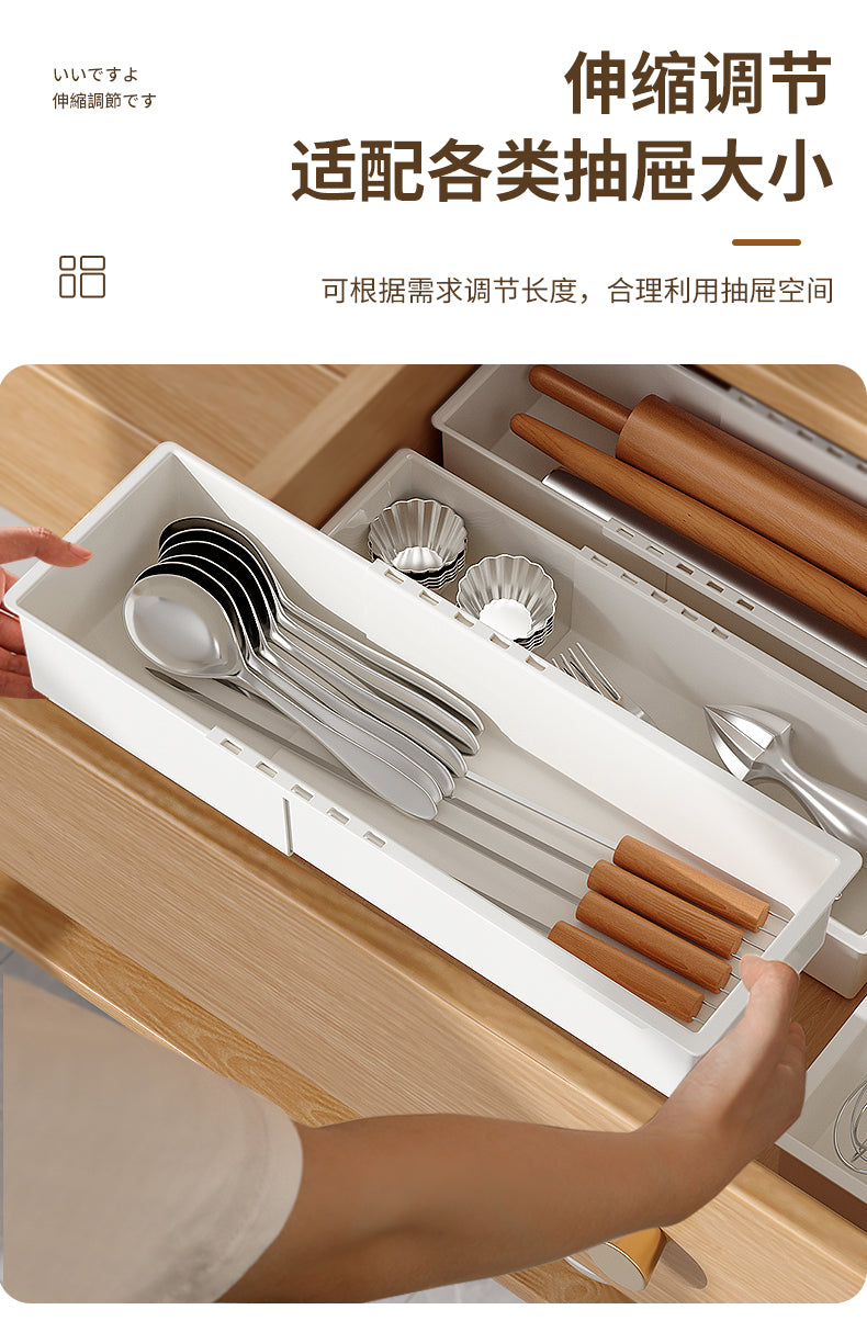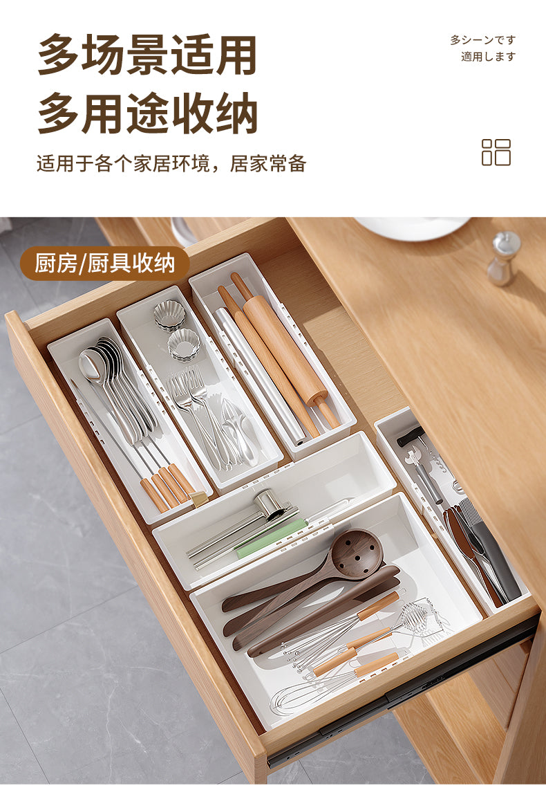 Retractable Storage Box Separated Drawer Rectangular Built-in Kitchen Tableware Desktop Cosmetics Compartment Storage Board