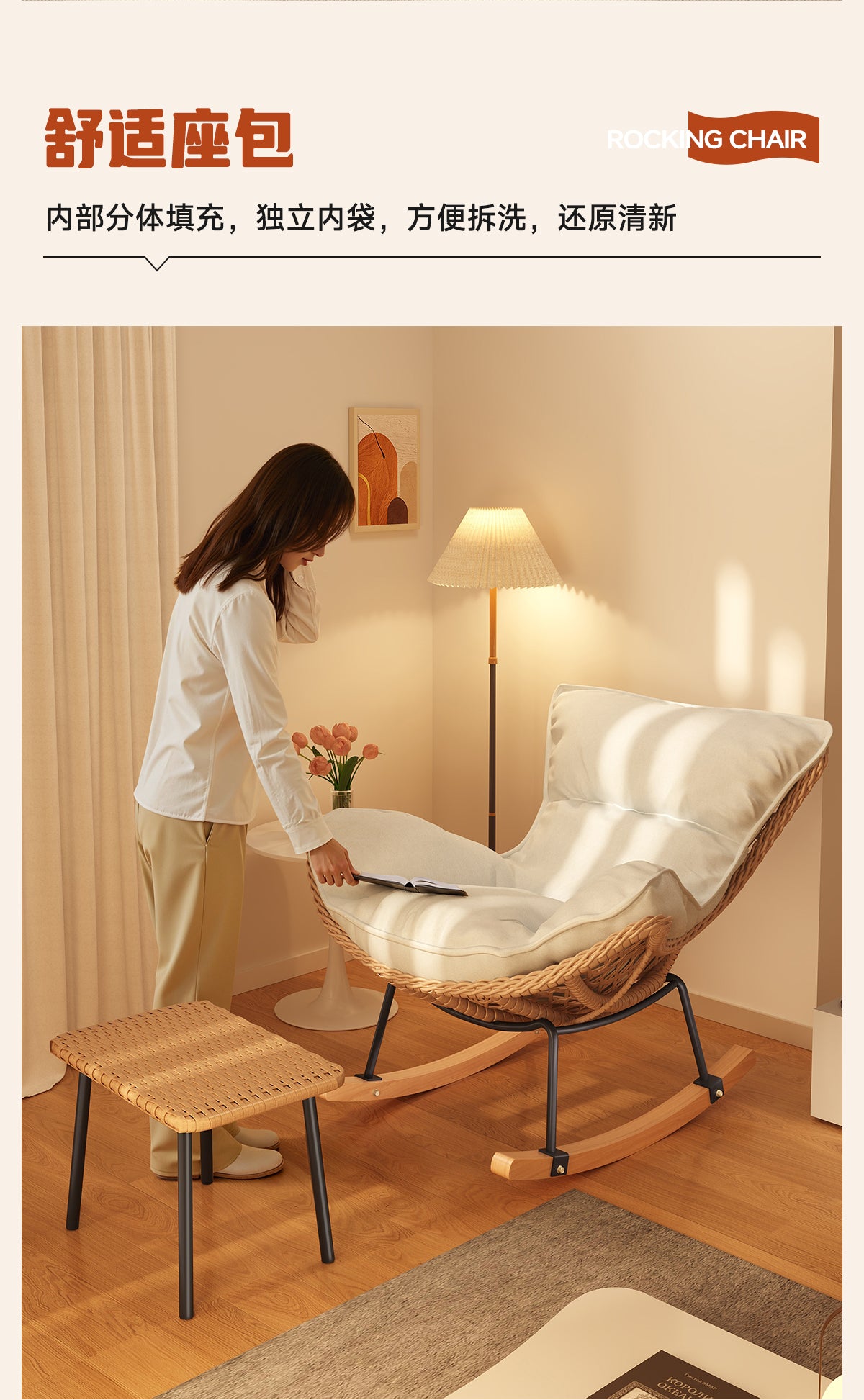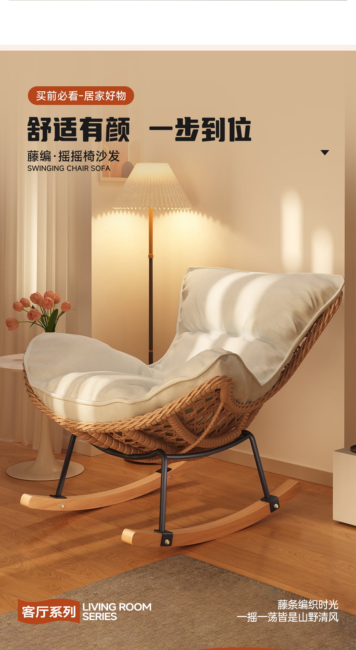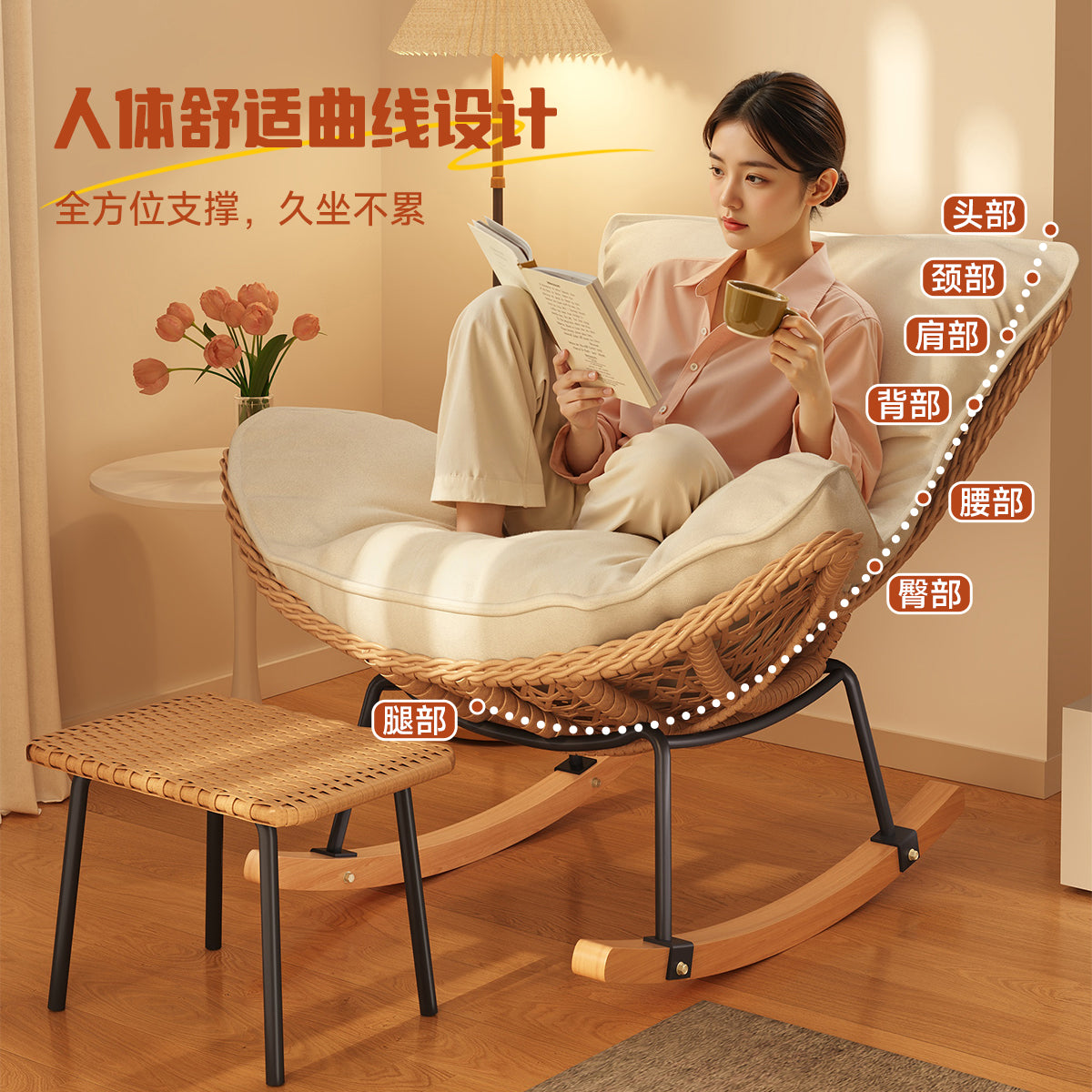 Rocking Chair Recliner Adult Sleepable Single Rattan Balcony Lazy Chair Bedroom Leisure Home Lazy Sofa
