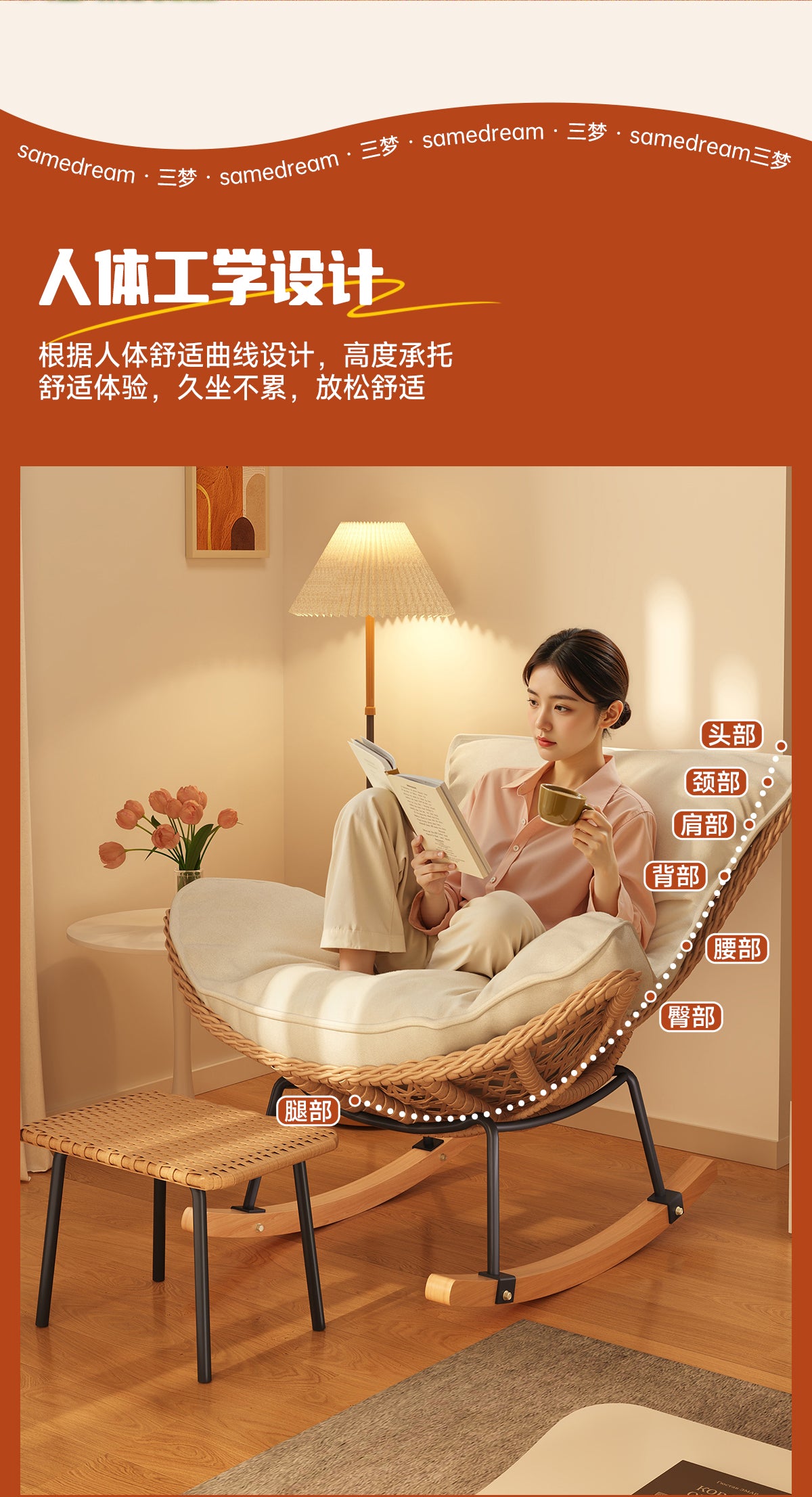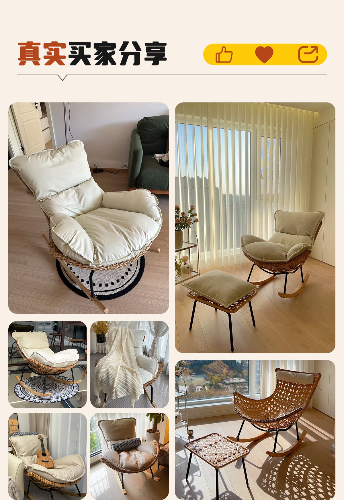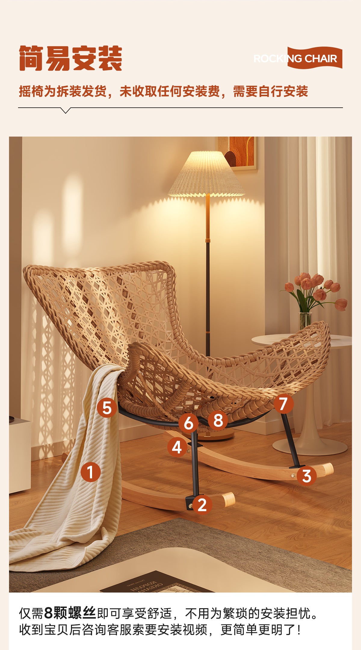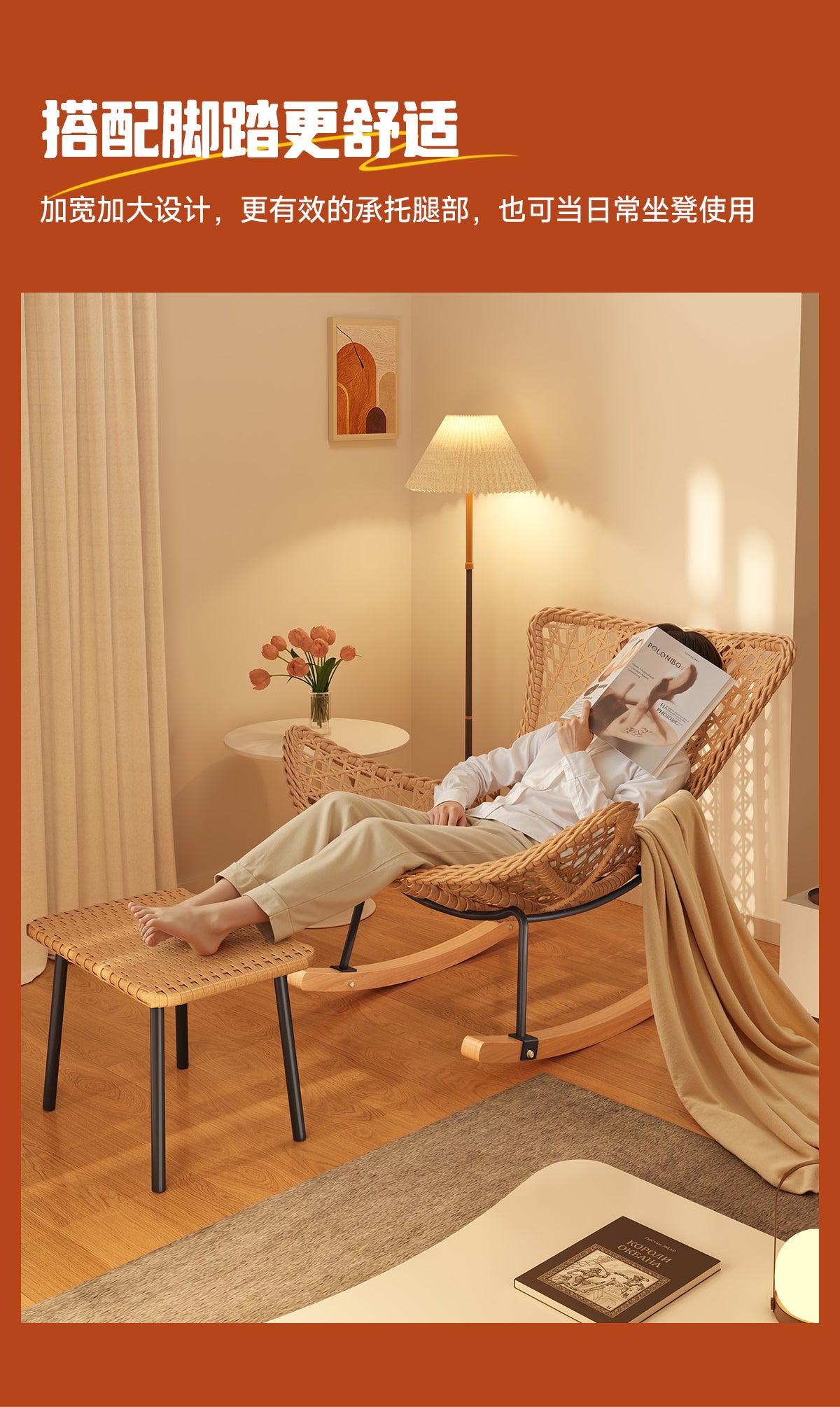 Rocking Chair Recliner Adult Sleepable Single Rattan Balcony Lazy Chair Bedroom Leisure Home Lazy Sofa