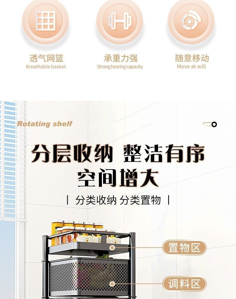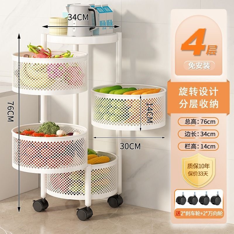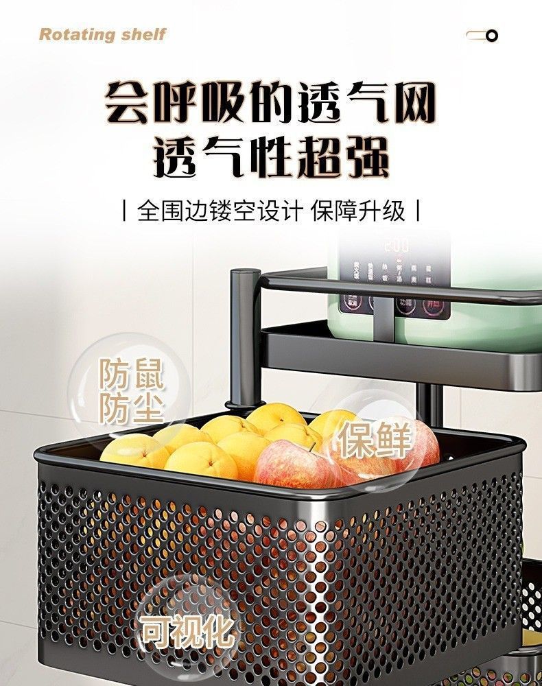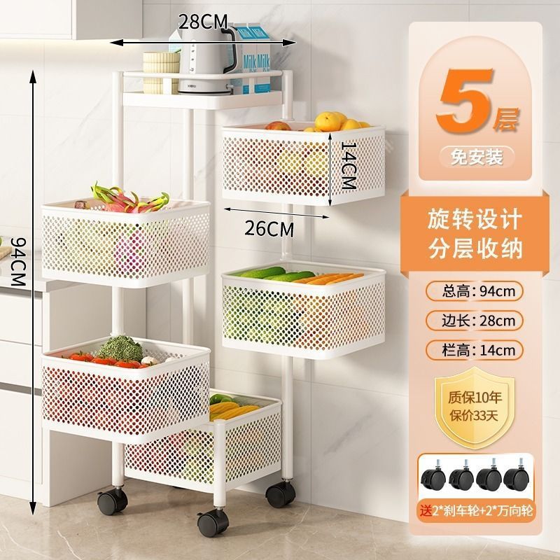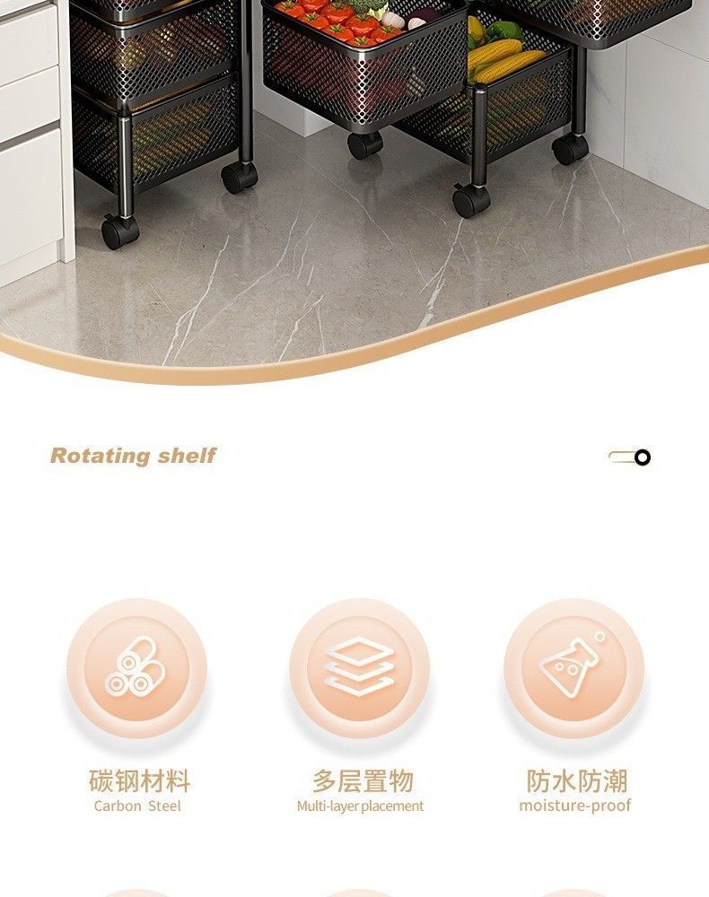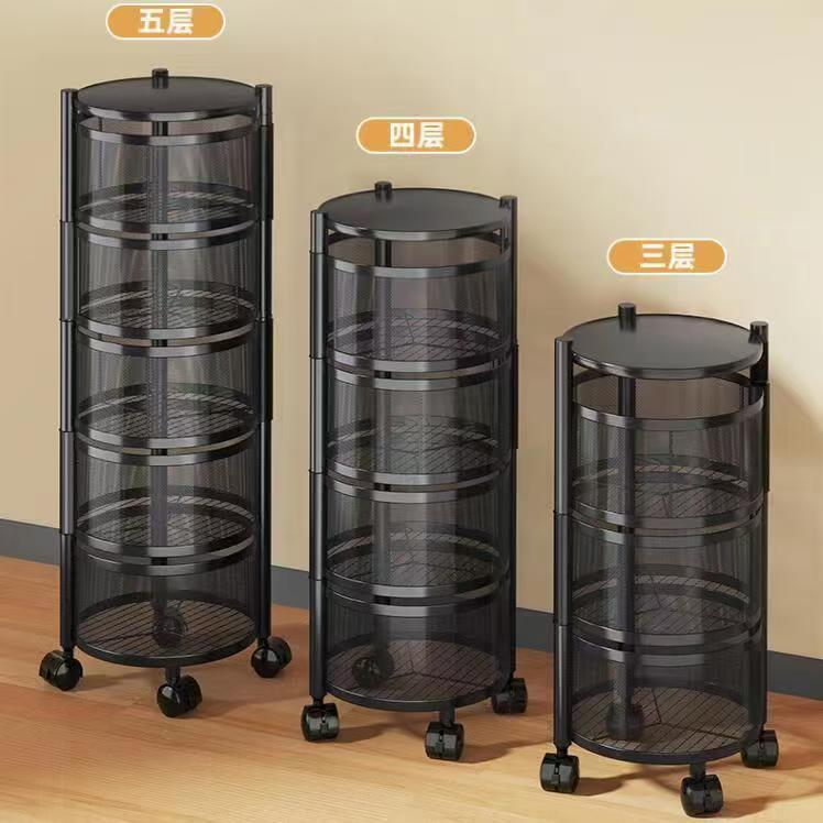 Rotatable Multi-layer Floor-standing Bedroom Trolley Kitchen Storage Rack Multifunctional Organizer Household Snack Rack Bedside Rack