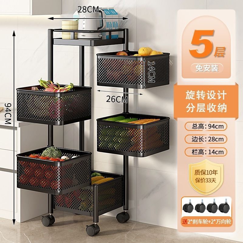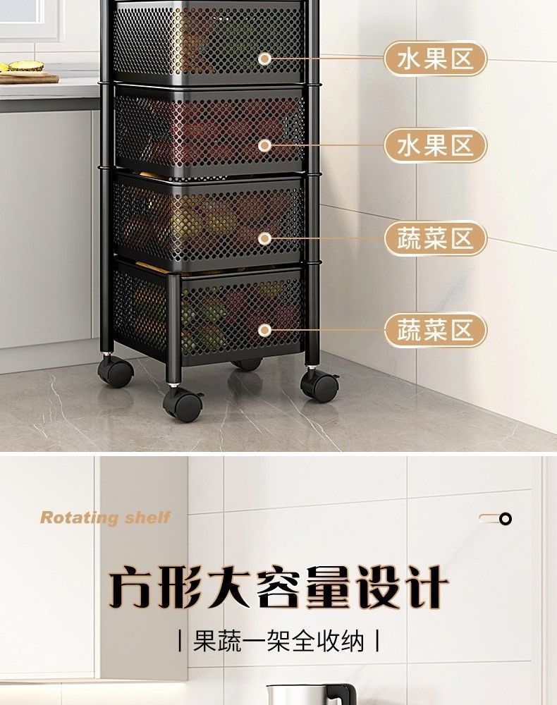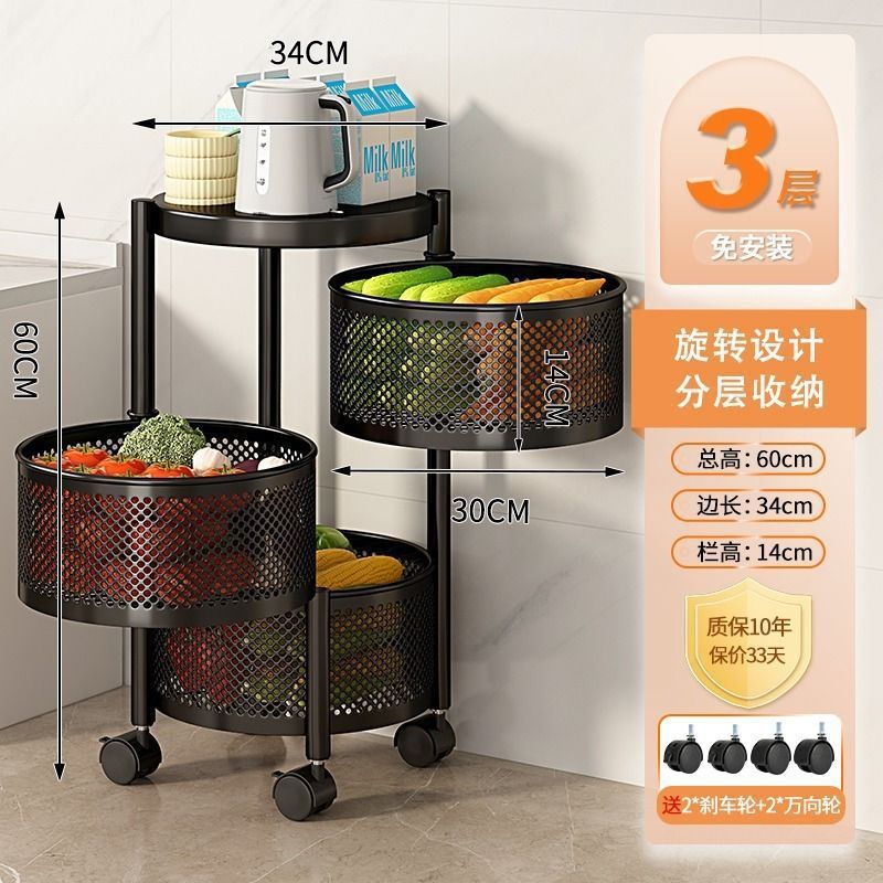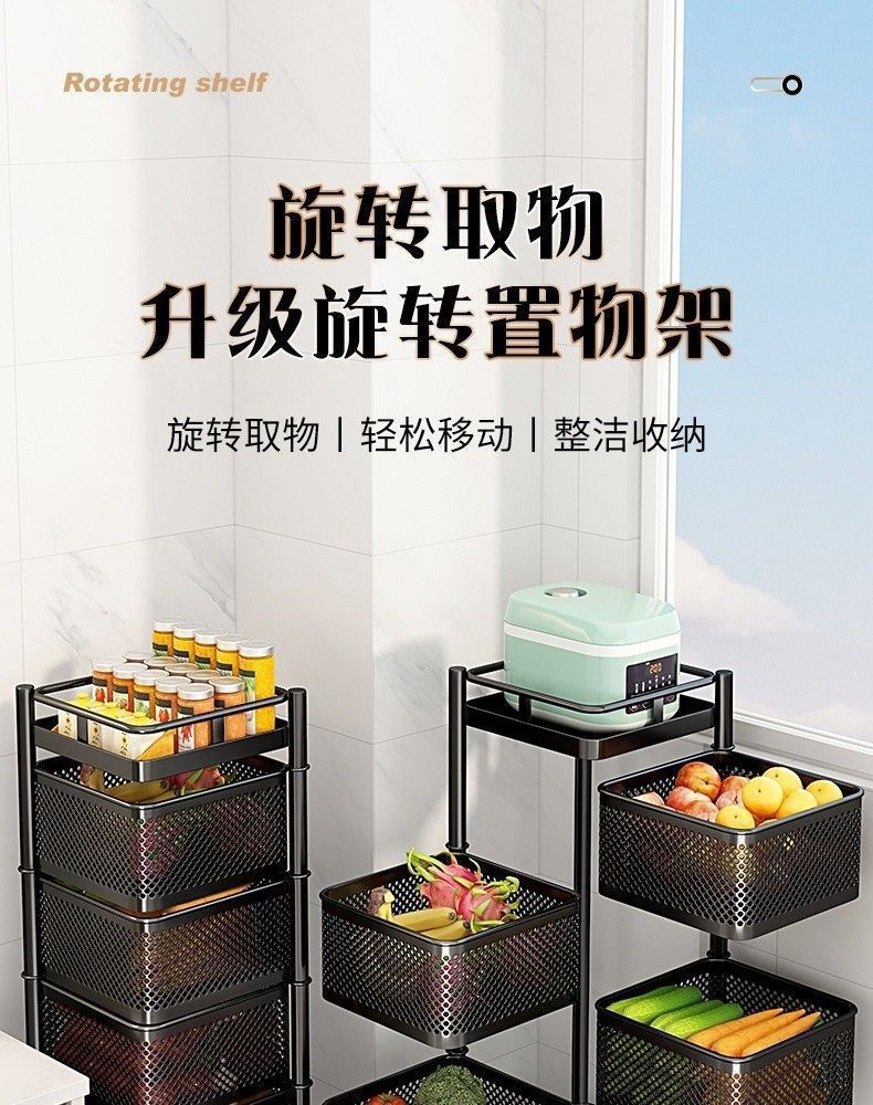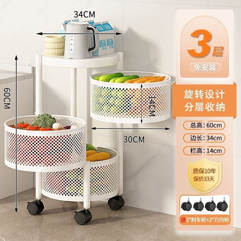Rotatable Multi-layer Floor-standing Bedroom Trolley Kitchen Storage Rack Multifunctional Organizer Household Snack Rack Bedside Rack