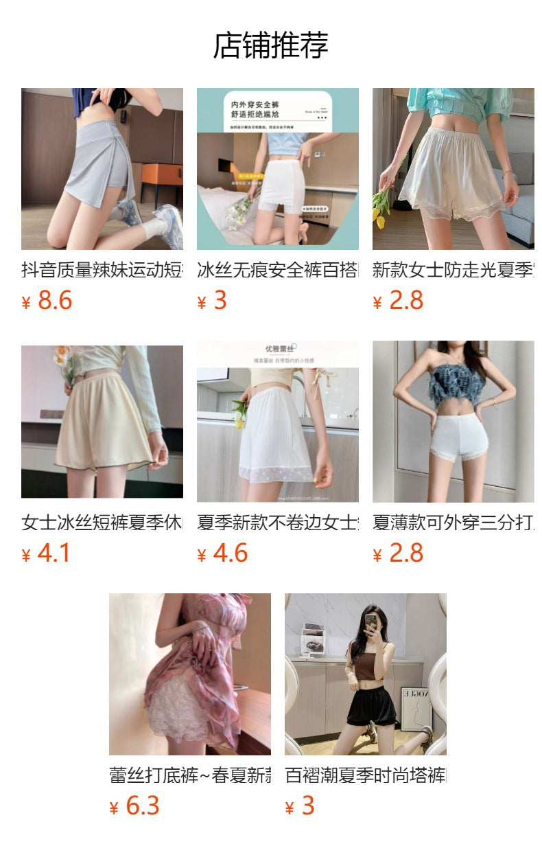 Safety Shorts Ice Silk Women Seamless Underwear Summer New Lace Anti-Exposure Thin Wave Three-Quarter Leggings Wholesale