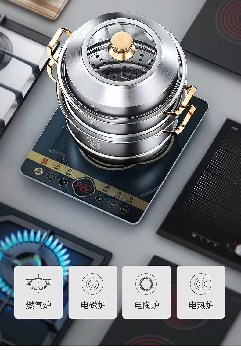 【Same Low Price】Steamer316Stainless Steel Household Food Grade304Thickened Soup Pot for Steaming Buns, Double Layer, Three or Four Layers, Compatible with Induction Cookers