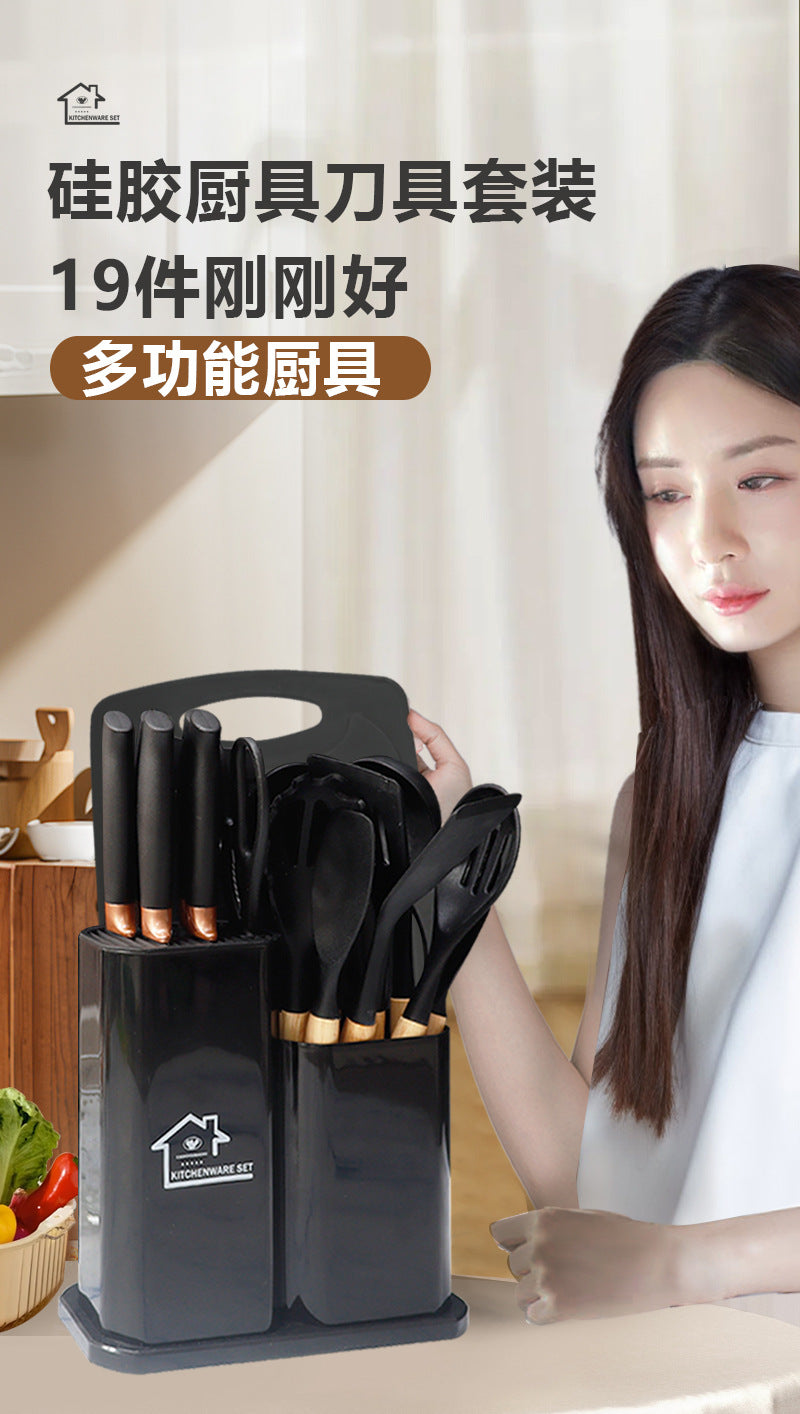Silicone Spatula Soup Spoon19Set of Non-Stick Pans Silicone Spatula Household Food-Grade Silicone Kitchen Utensils Knife Set Wholesale